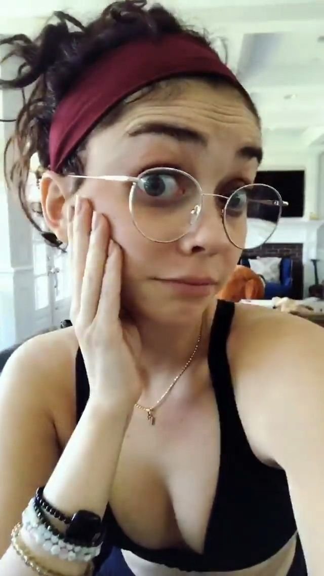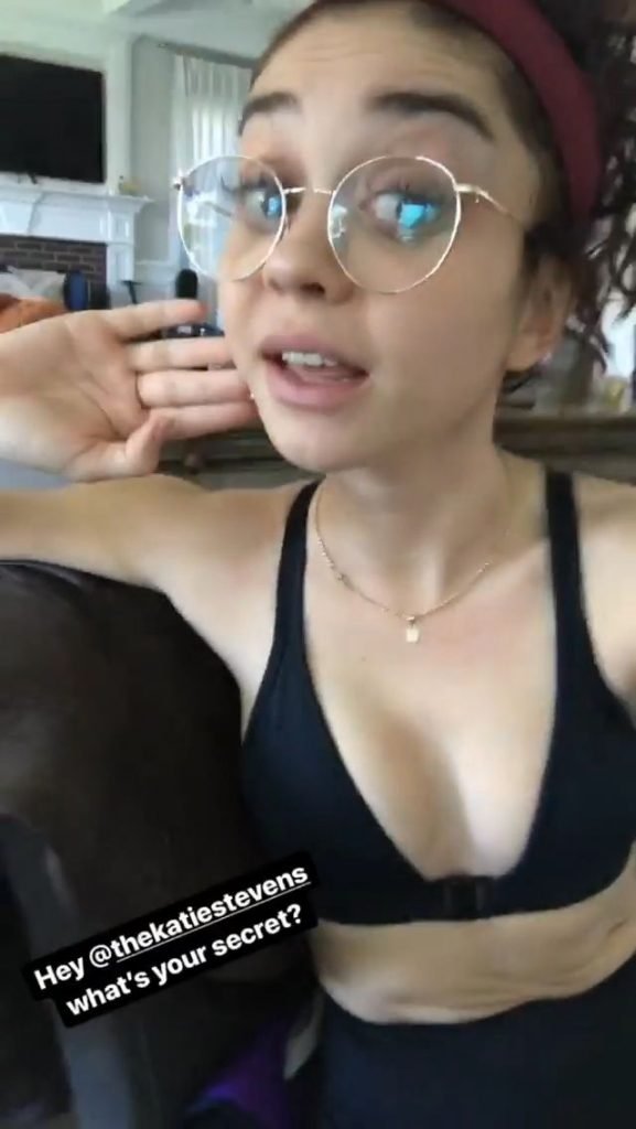 Actriz Sarah Hyland muestra su profundo escote en Instagram, 02/04/2018.