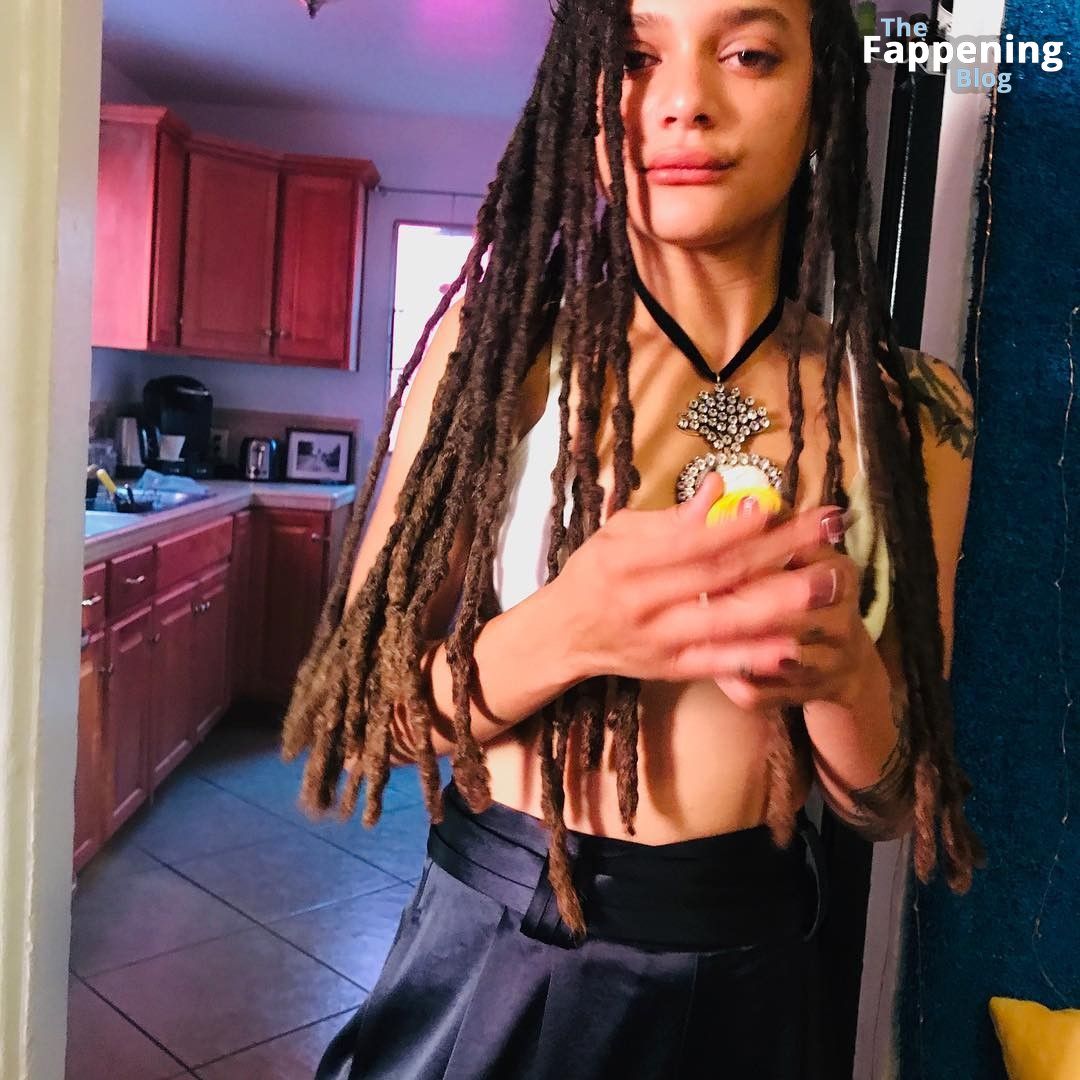 Y no olvidemos que Sasha Lane tiene una apariencia inusual que es realmente cautivadora. Mira la forma de sus labios, que mueve tan adorablemente cuando hace muecas. Y por supuesto, esta chica siempre atrae la atención de los paparazzi al aparecer en eventos.She likes to dress sexy and show off her tits without lingerie in front of the cameras.