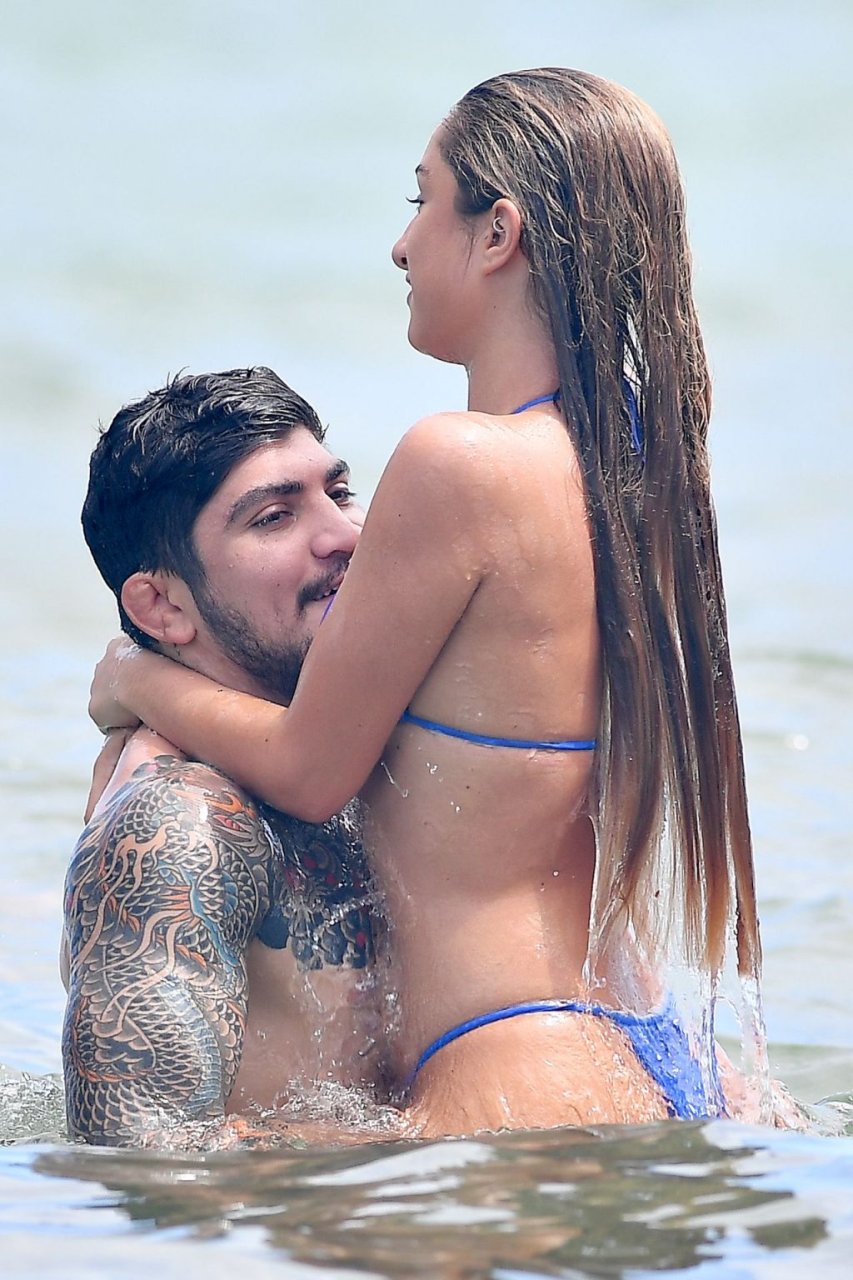 Dillon Danis y su novia modelo Savannah Montano pasan el día en Miami Beach, Florida, 11/07/2019. Dos días después de haberse peleado en un club de la ciudad de Nueva York, el peleador de UFC Dillon se relaja en la playa con su novia.