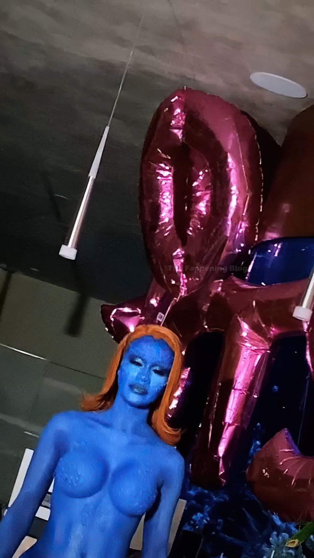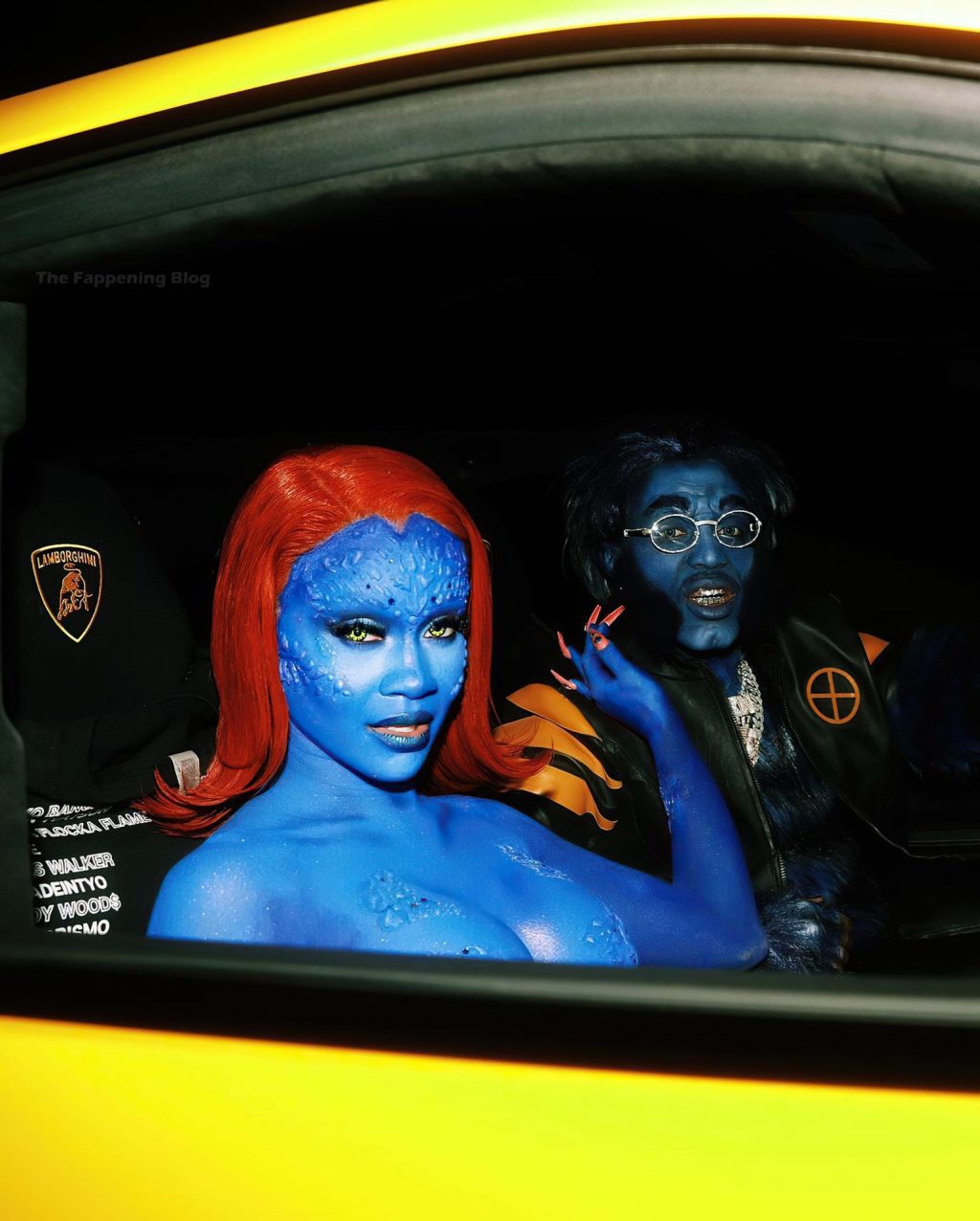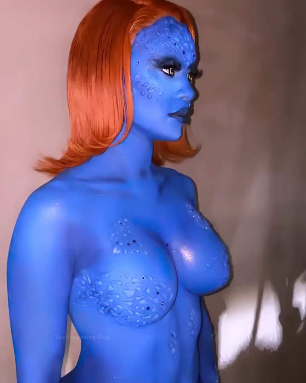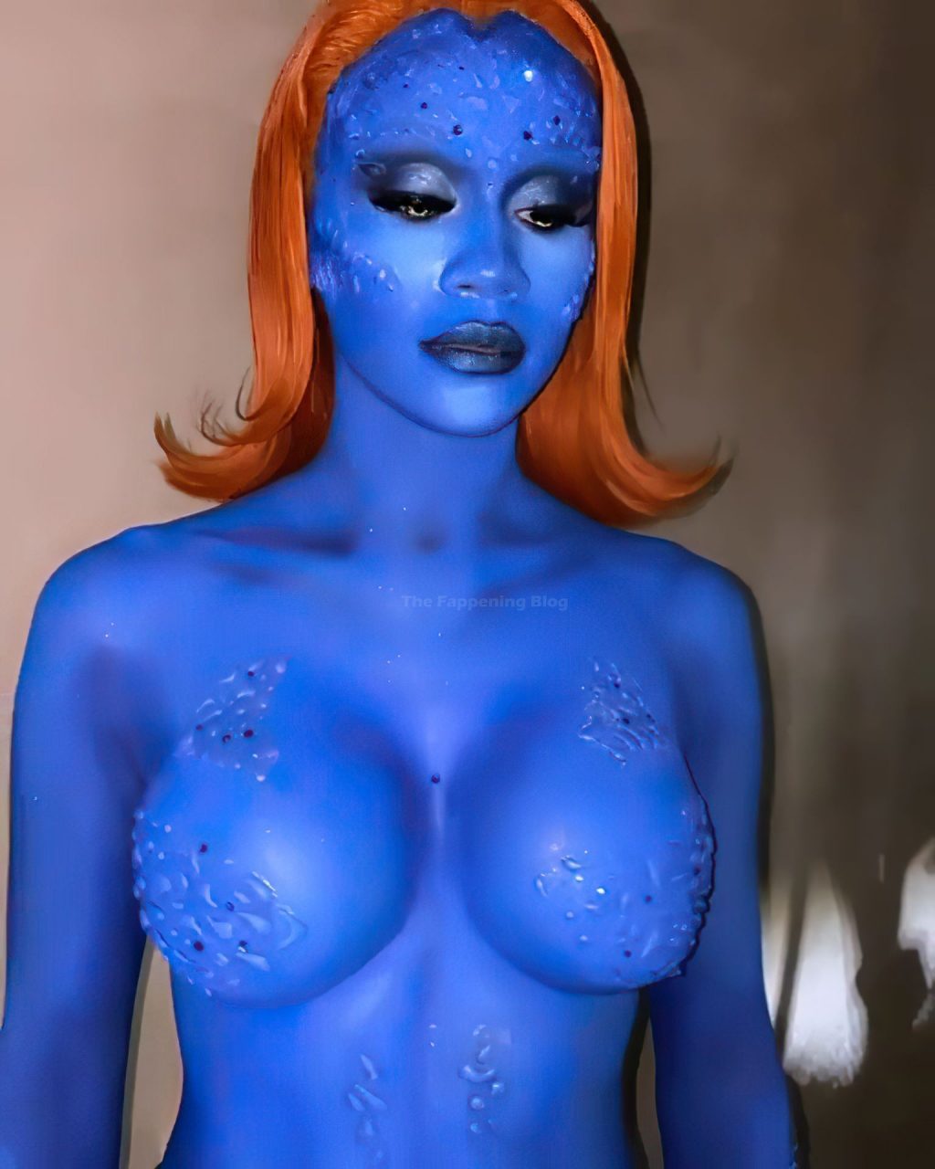 La rapera Saweetie se desnuda como Mystique de “X-Men” en la fiesta de Halloween, mostrando sus tetas cubiertas con pintura azul – Instagram, 01/11/2020.