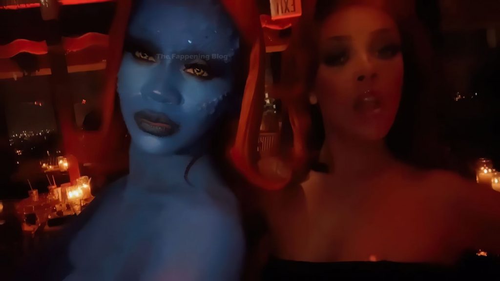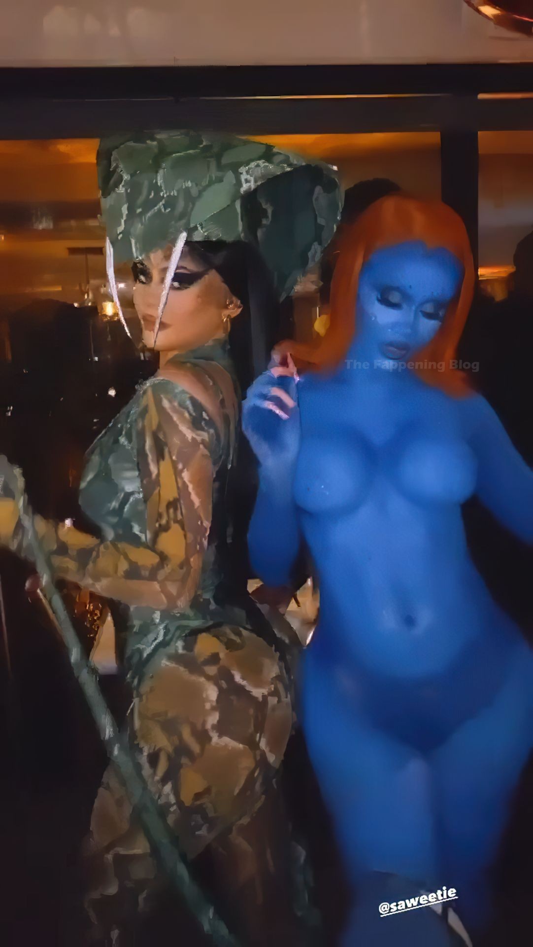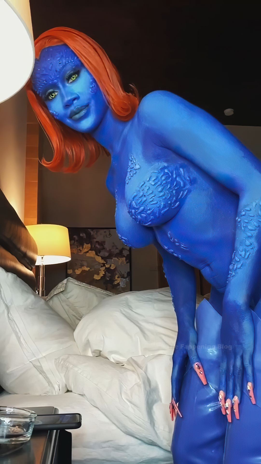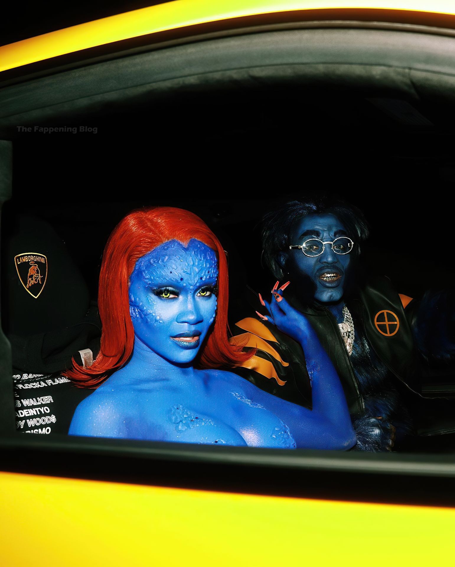 La rapera Saweetie se desnuda como Mystique de “X-Men” en la fiesta de Halloween, mostrando sus tetas cubiertas con pintura azul – Instagram, 01/11/2020.