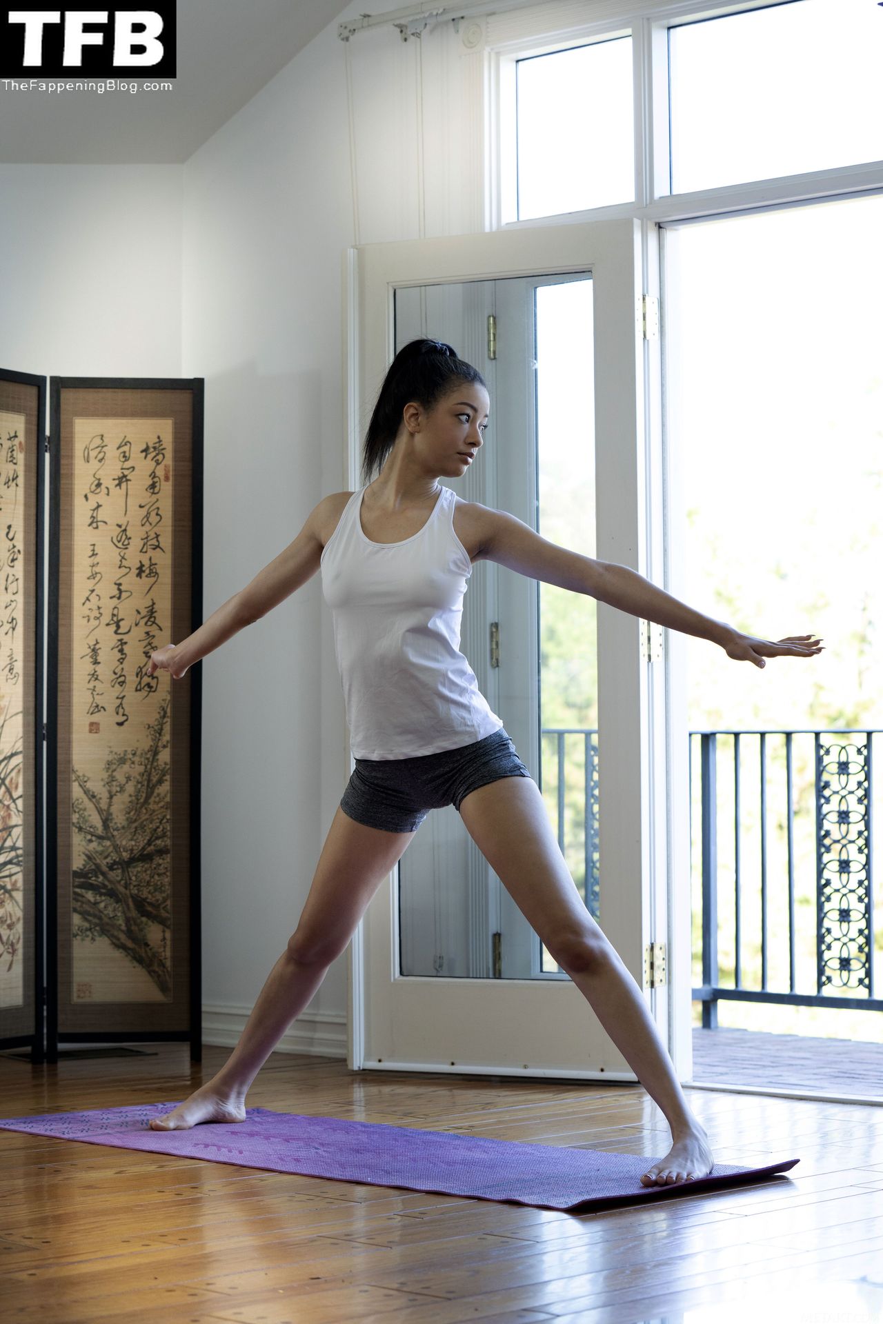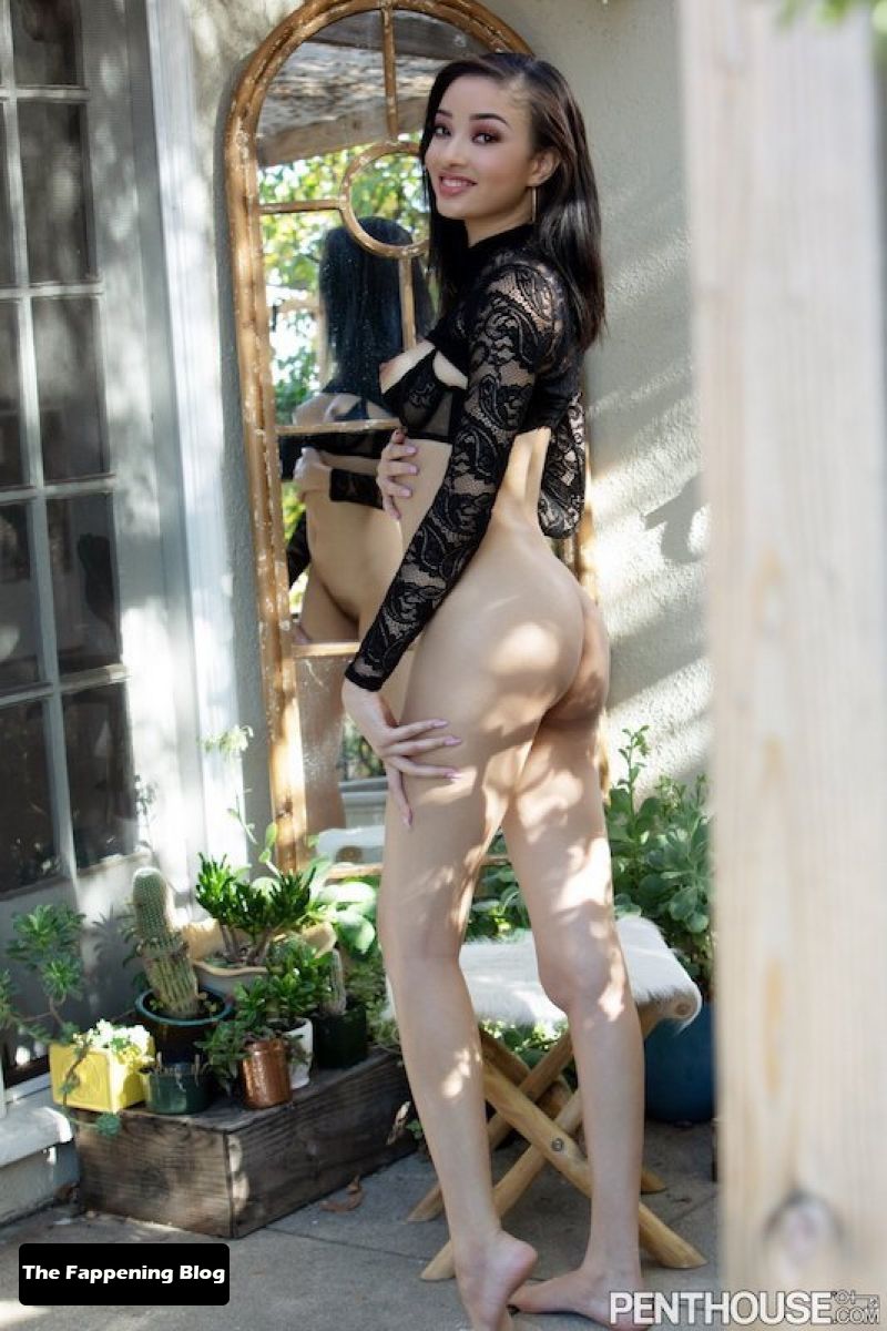 Mira las fotos desnudas de Scarlett Bloom de sus sesiones eróticas, mostrando la figura esbelta de la morena, sus hermosos pechos, piernas, trasero y su vagina sin depilar.