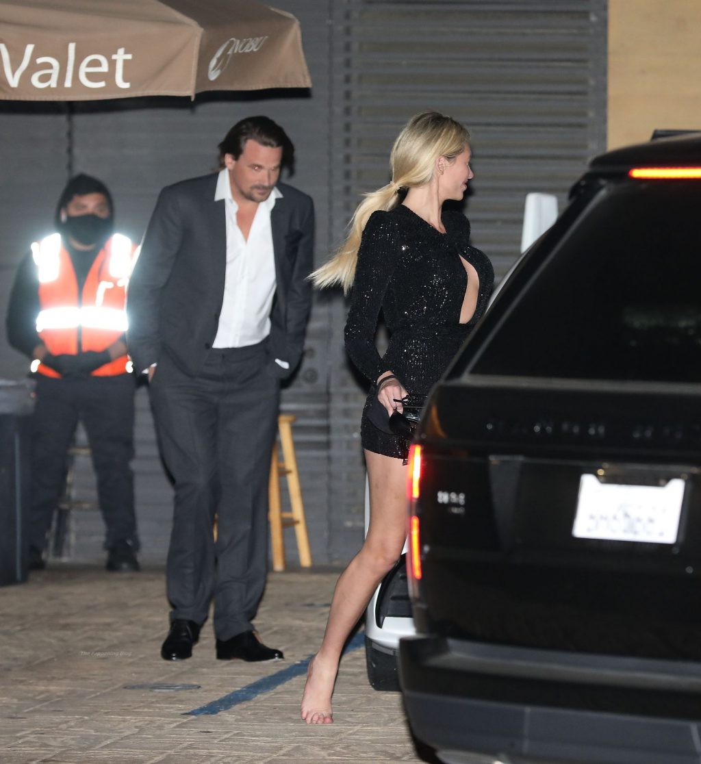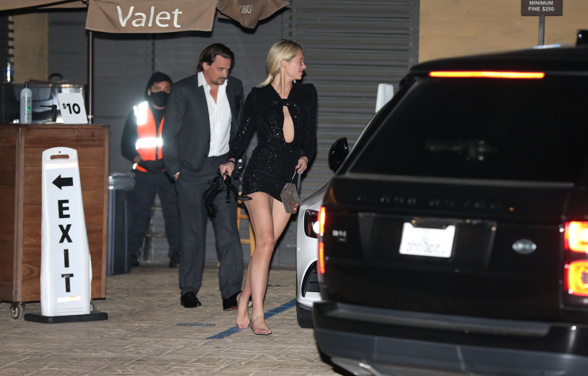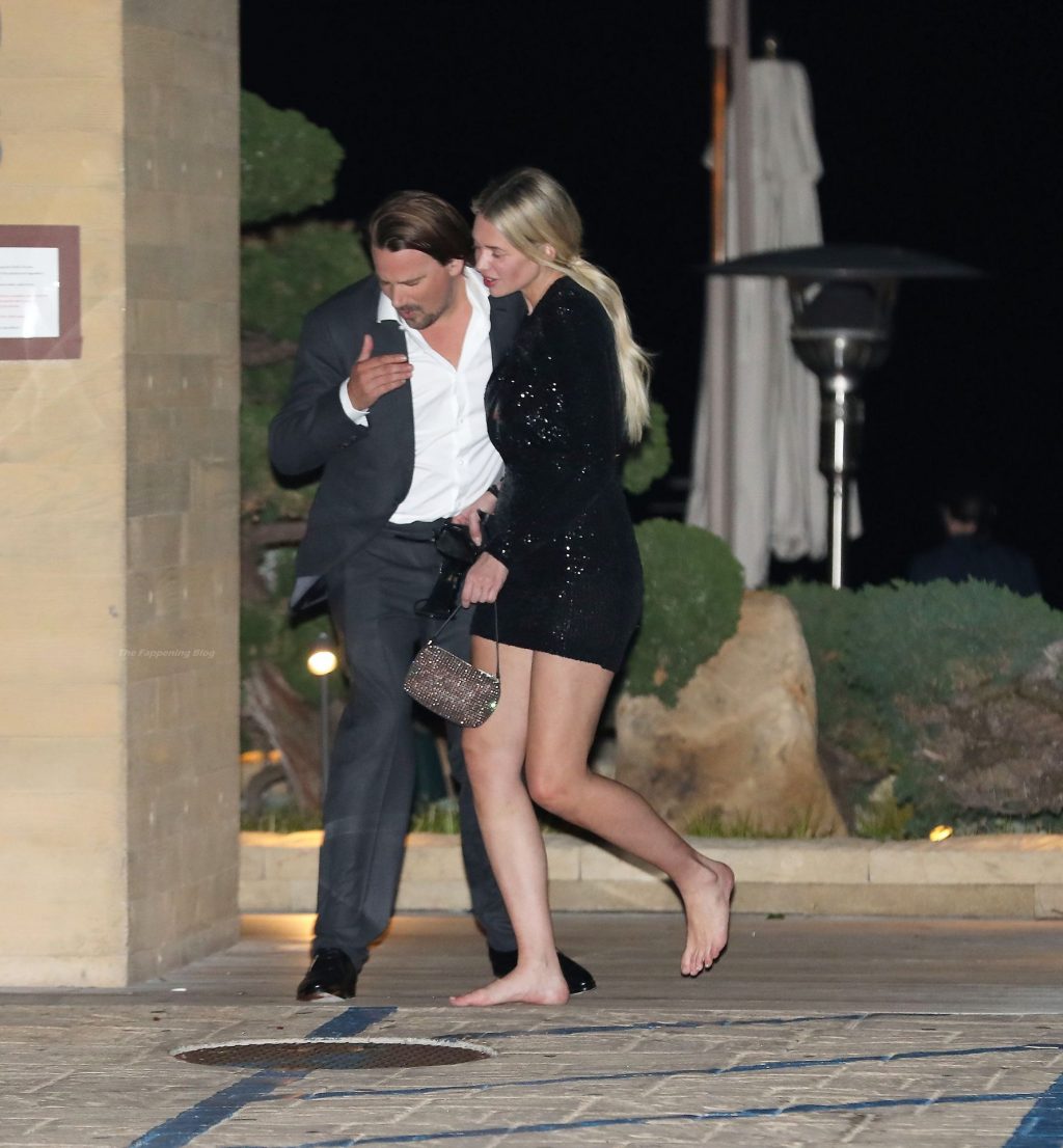 Sean lucía elegante con su traje a medida mientras su cita brillaba con un vestido negro escotado. Después de la cena, su cita sale del restaurante descalza mientras lleva sus tacones.