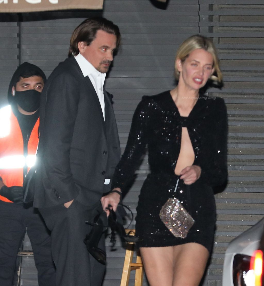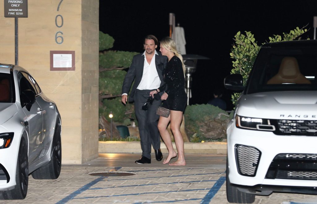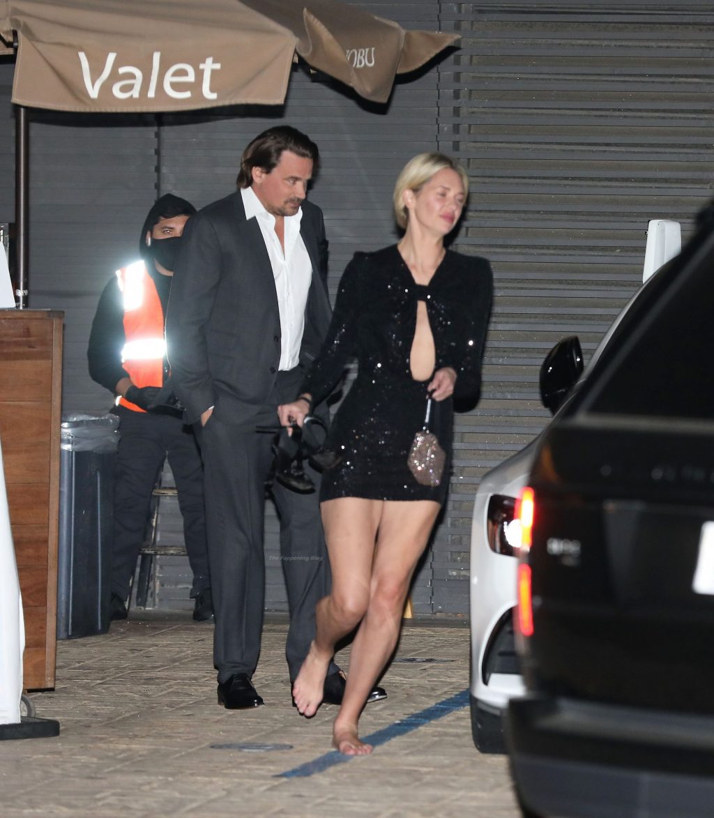 Sean lucía elegante con su traje a medida mientras su cita brillaba con un vestido negro escotado. Después de la cena, su cita sale del restaurante descalza mientras lleva sus tacones.