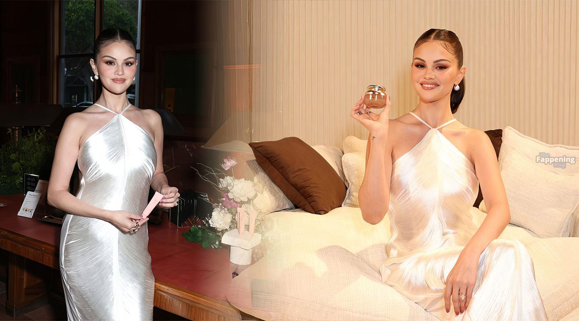 Selena Gomez luce sexy con un vestido plateado en el lanzamiento de Rare Beauty (19 fotos)