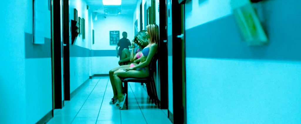 And now folks here’s the last scene! In this scene, Selena Gomez sits in a police station wearing blue bikini bottoms and an orange bikini top before sleeping in a prison cell alongside Vanessa Hudgens (who is in a purple bikini), Ashley Benson (pink bikini), and Rachel Korine (who is in a blue bikini).