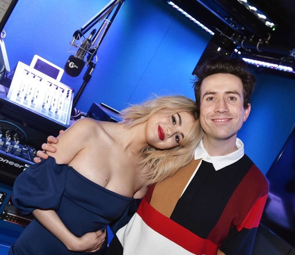 La cantante Selena Gomez (25) muestra su escote para The BBC Radio 1 Breakfast Show con Nick Grimshaw, 12/11/2017.