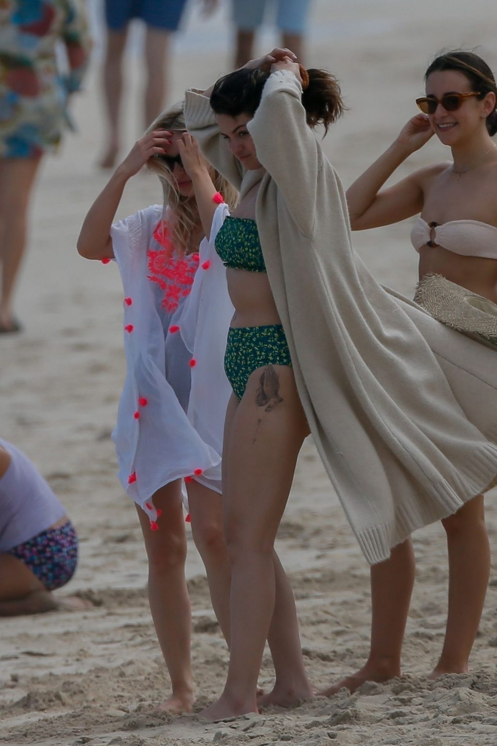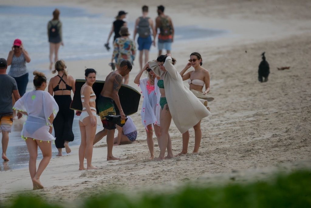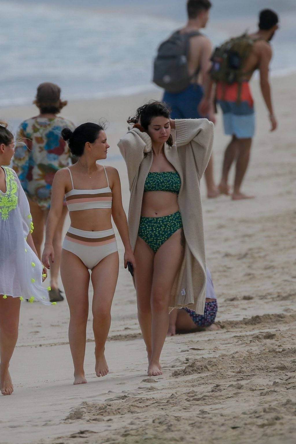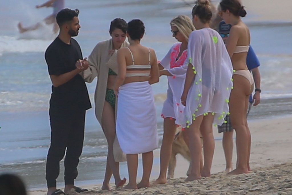 Selena Gomez camina por la playa en su bikini con sus amigas antes de ser picada por una Carabela Portuguesa mientras vacacionaba en Honolulu, HI, 01/01/2020.