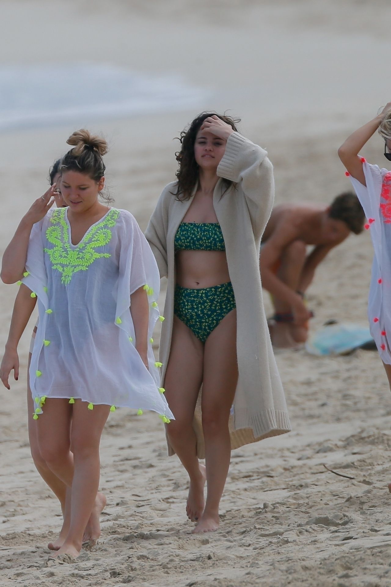 Selena Gomez camina por la playa en su bikini con sus amigas antes de ser picada por una Carabela Portuguesa mientras vacacionaba en Honolulu, HI, 01/01/2020.