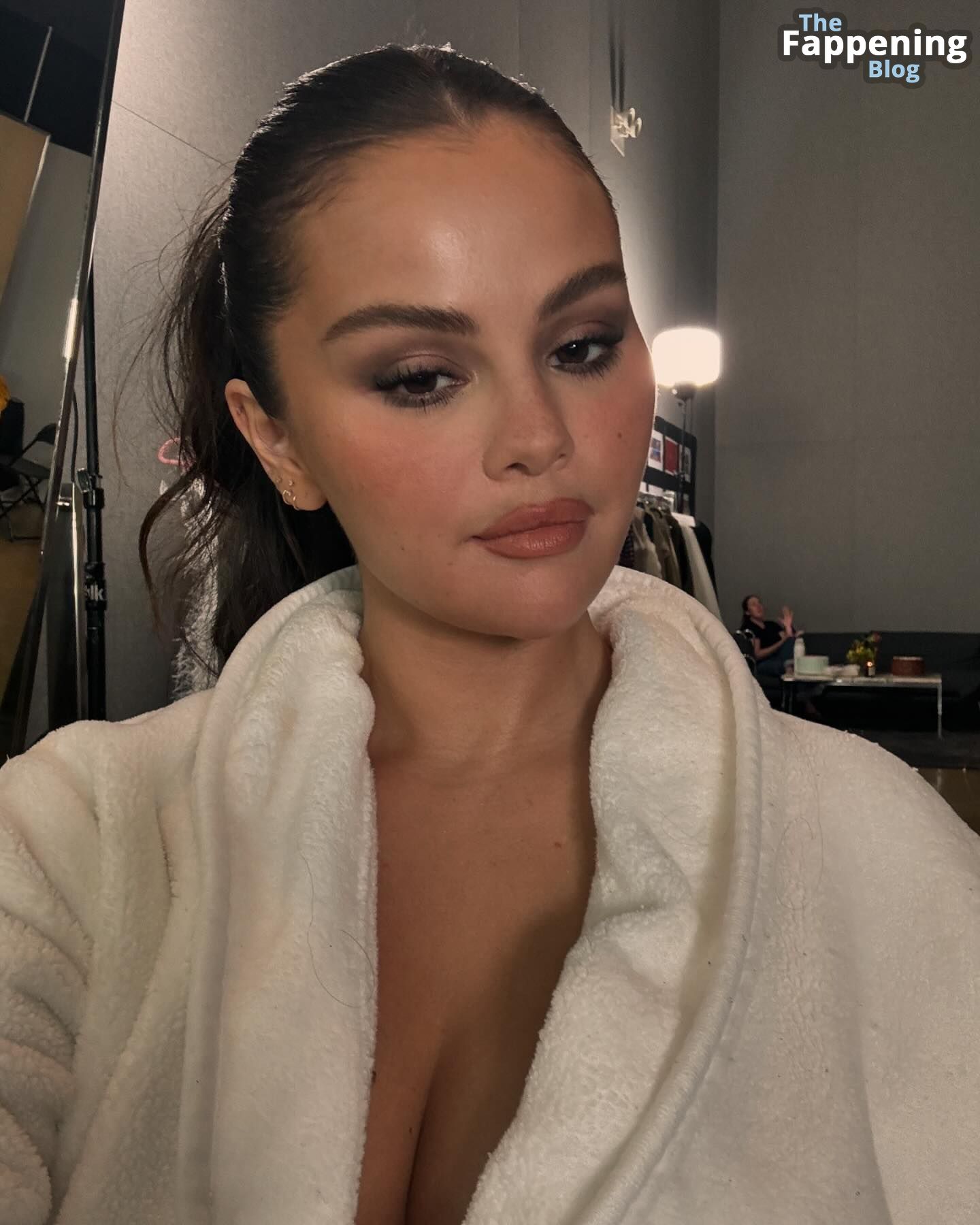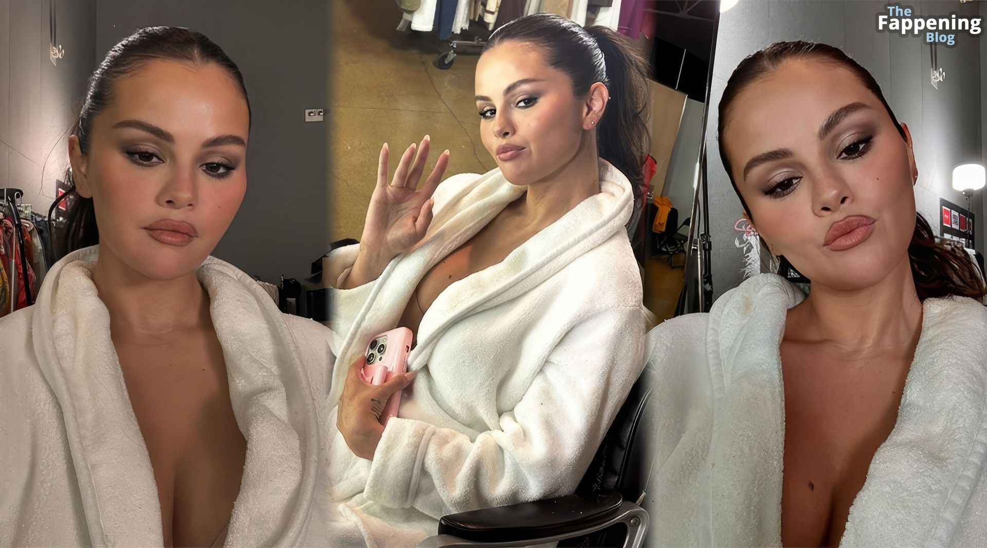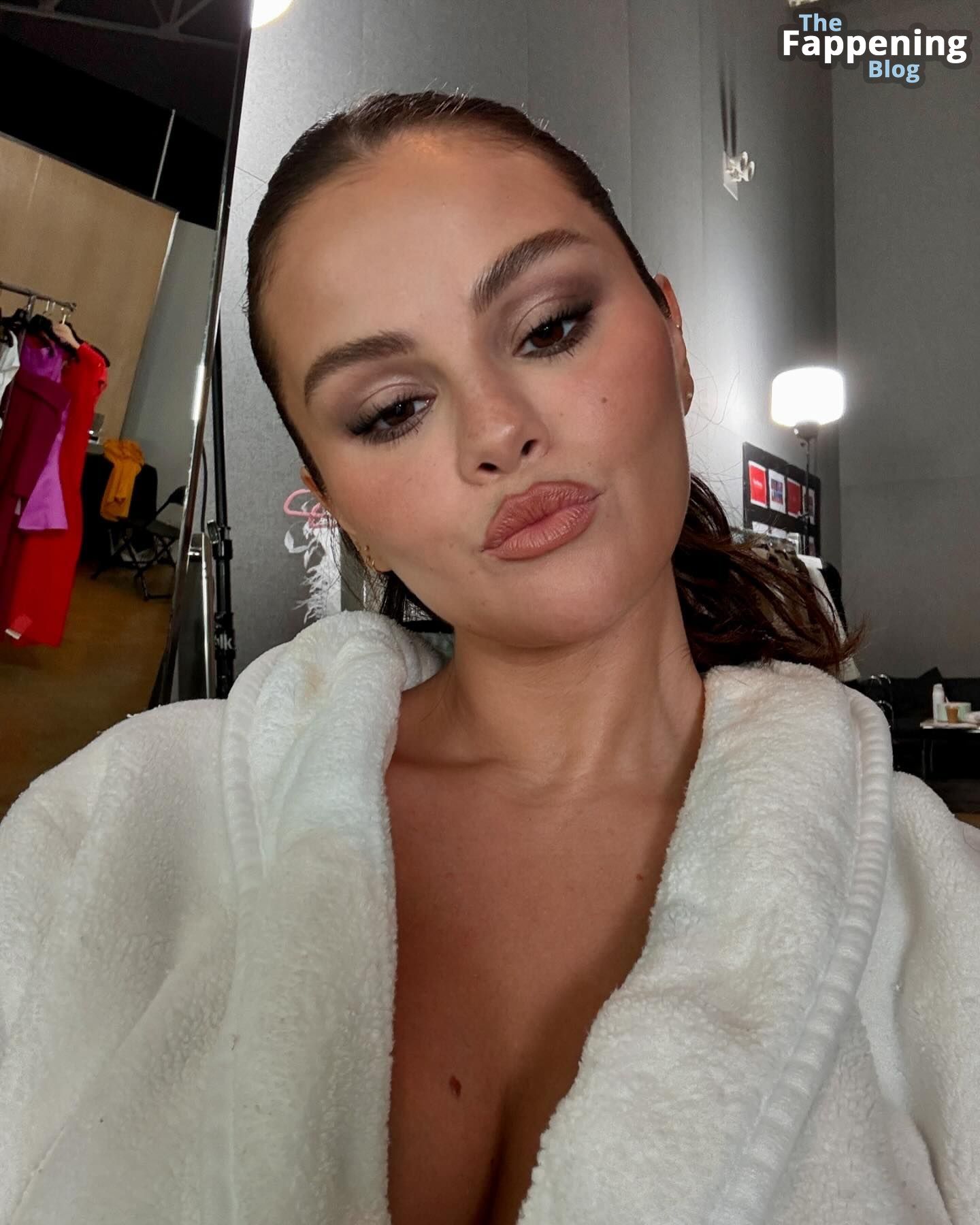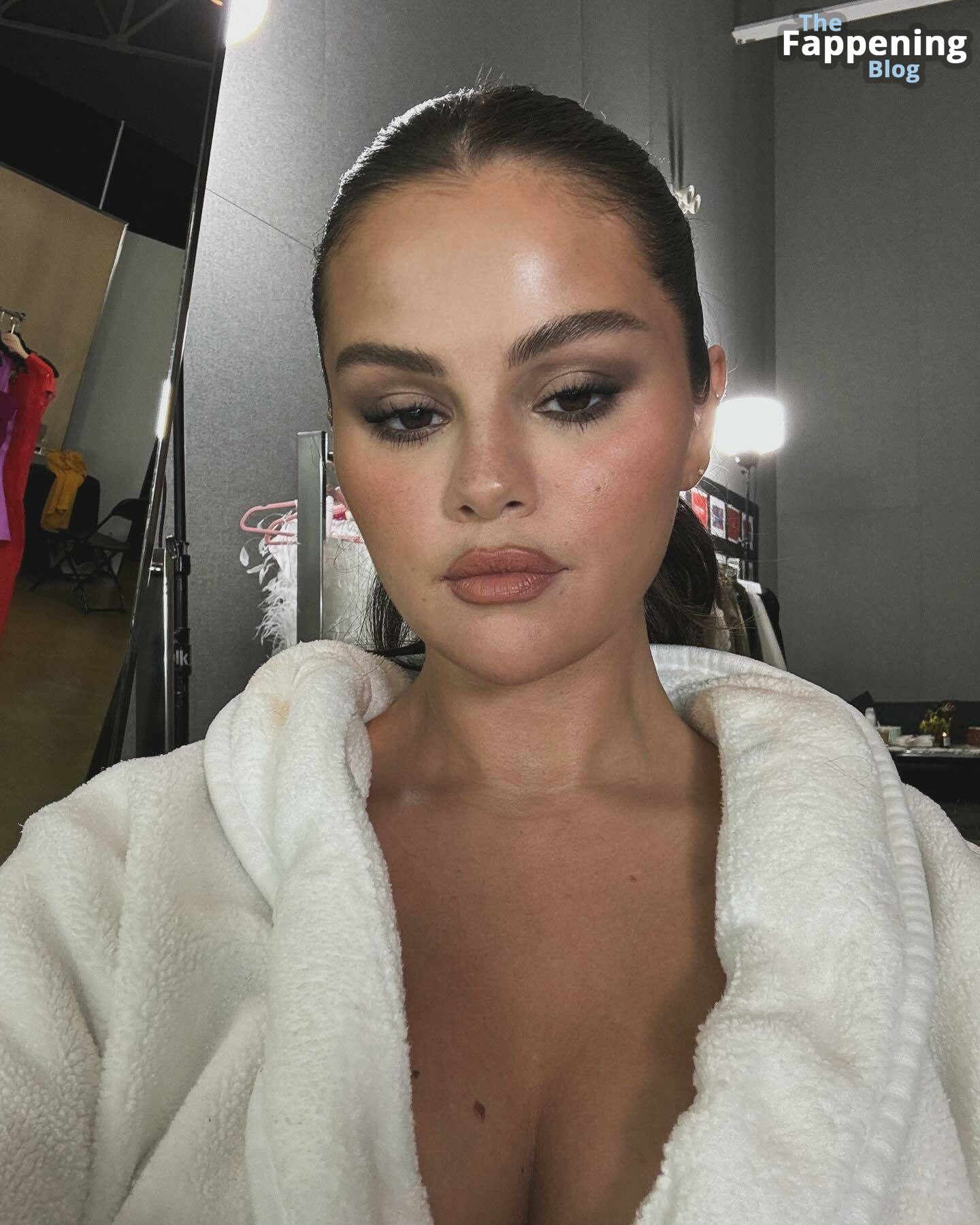 Selena Gomez se ve sexy en unas fotos nuevas, luciendo una bata blanca esponjosa y dándonos un poquito de algo para ver.