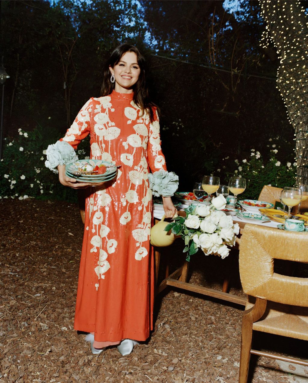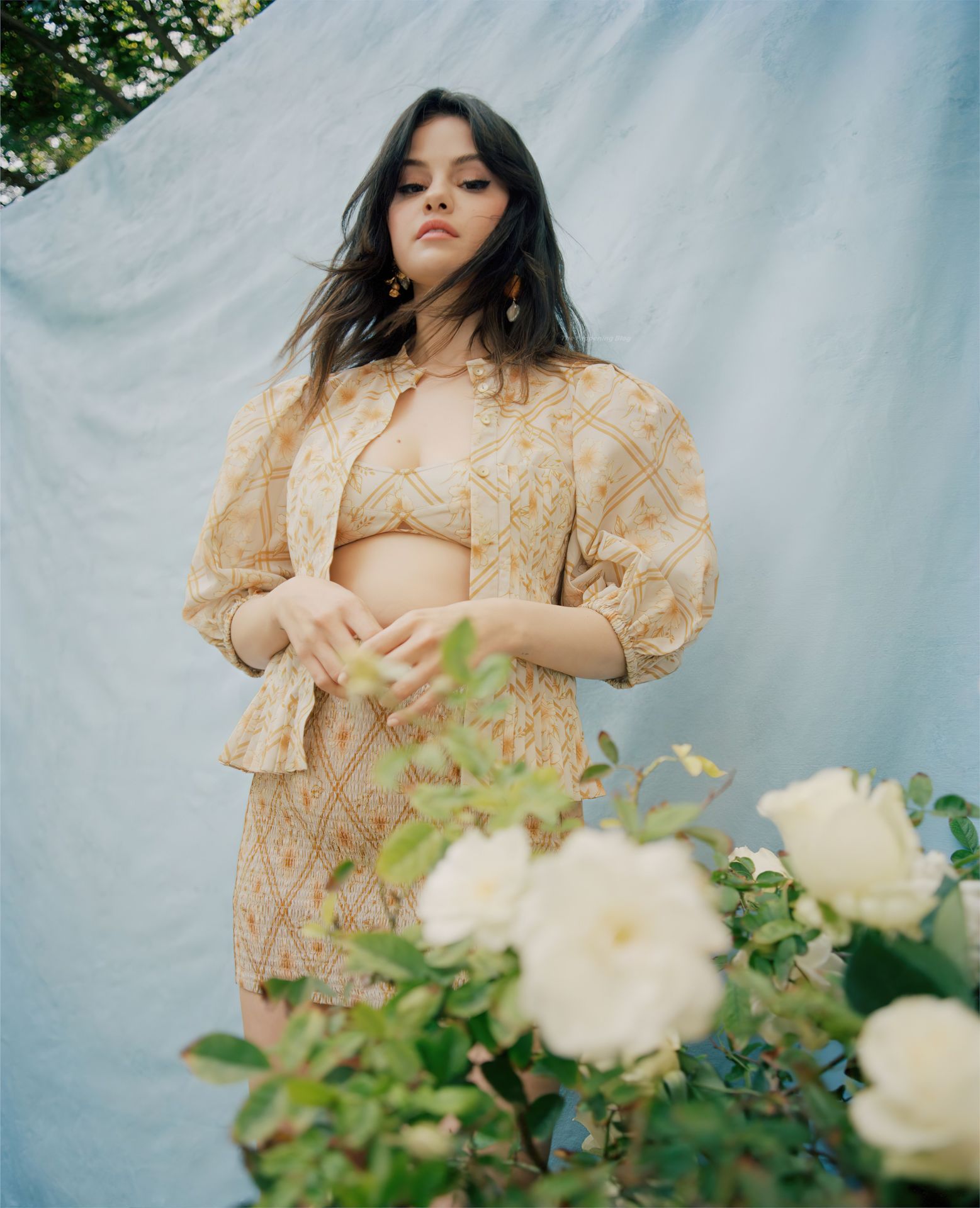 La cantante Selena Gomez deslumbra, posando junto a la piscina en una sesión fotográfica de Nadine Ijewere para la edición de abril de 2021 de la Revista Vogue.