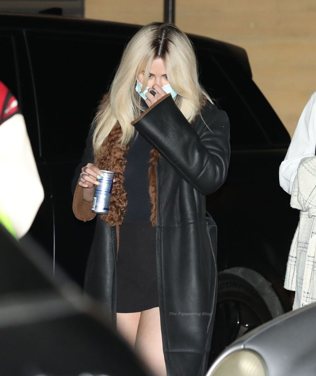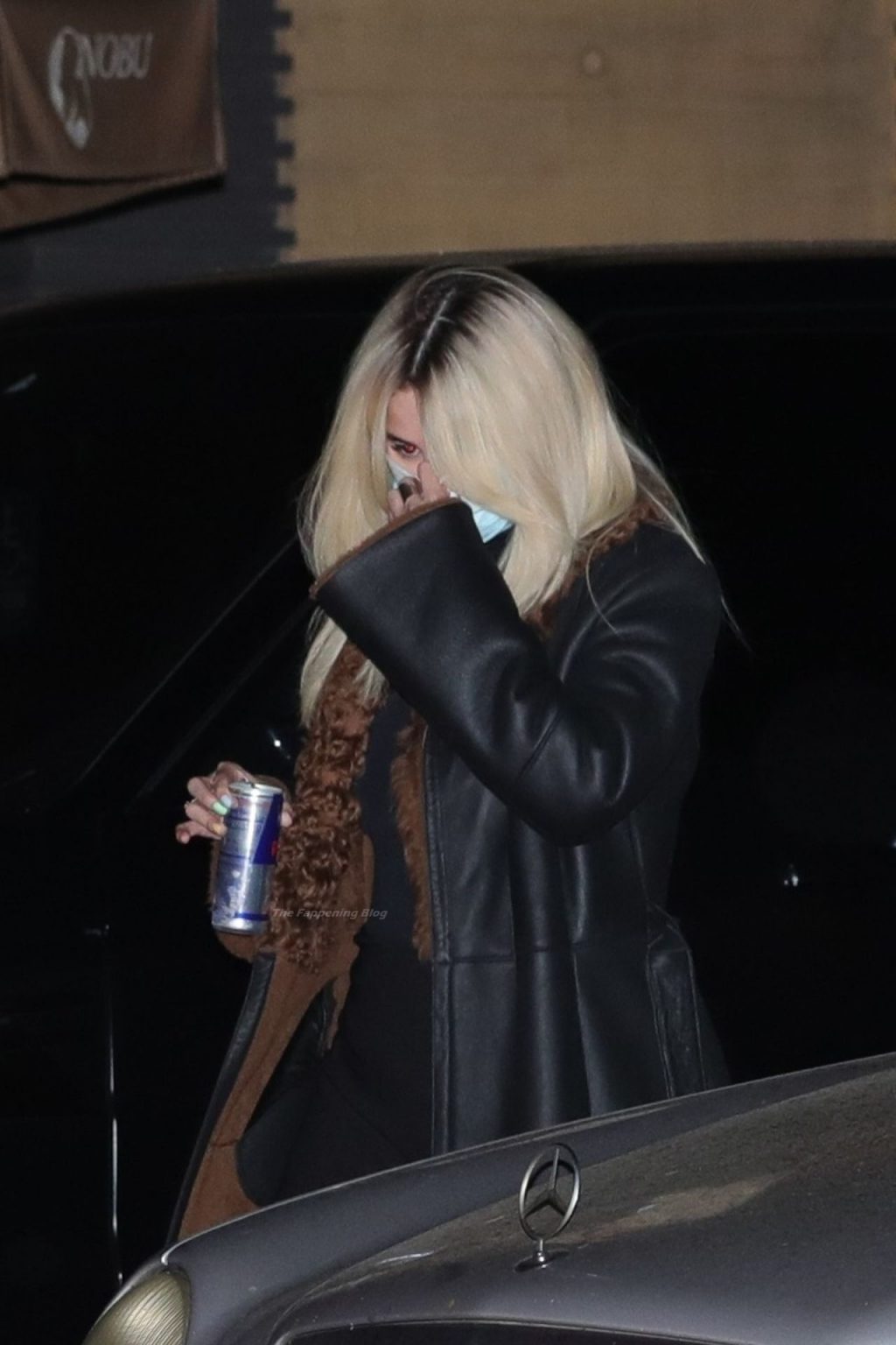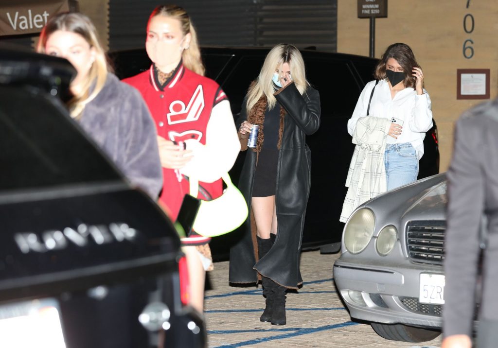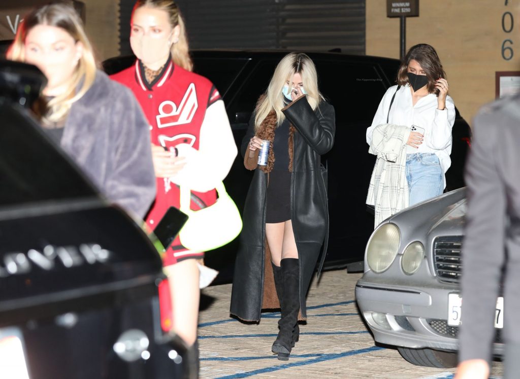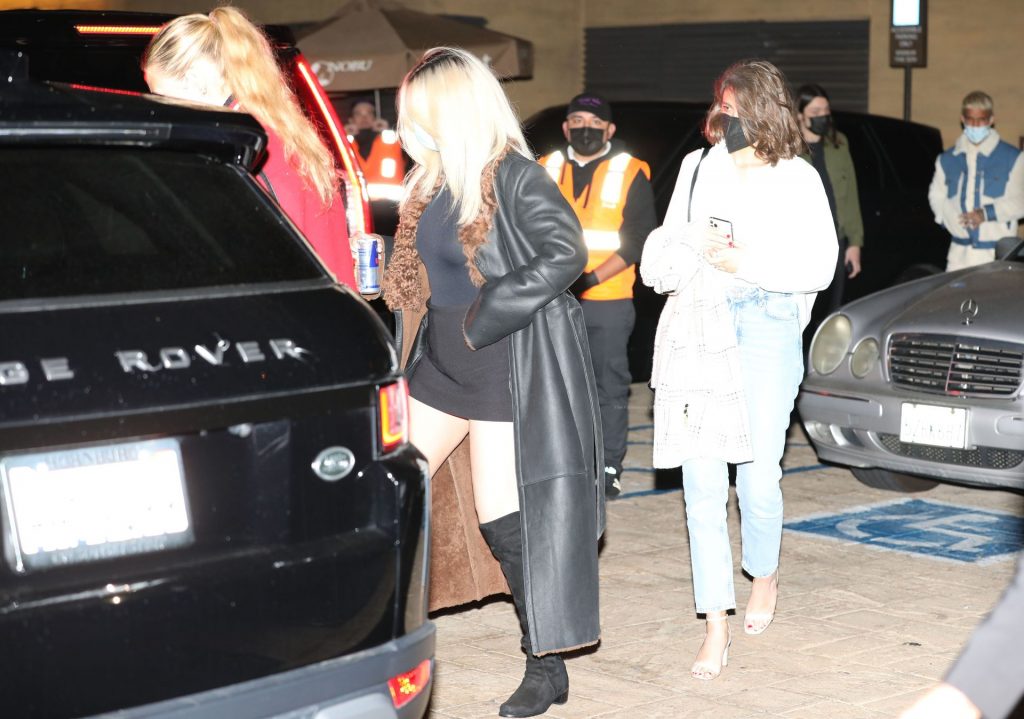 Llevando un mini vestido semi-transparente, la joven de 28 años mostró orgullosamente sus piernas mientras se dirigía a su vehículo después de su cena.