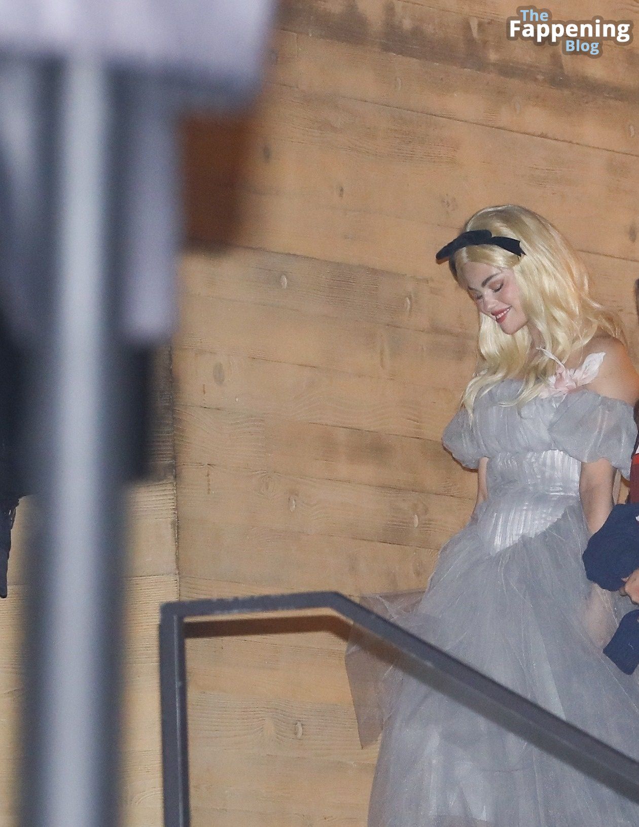 La estrella de The Fappening, cantante y actriz, luciendo un vestido de tul con volantes en capas y una peluca rubia con una cinta negra, fue vista saliendo de la cena en Nobu en Malibu con su hermana, viéndose absolutamente espectacular en su disfraz.