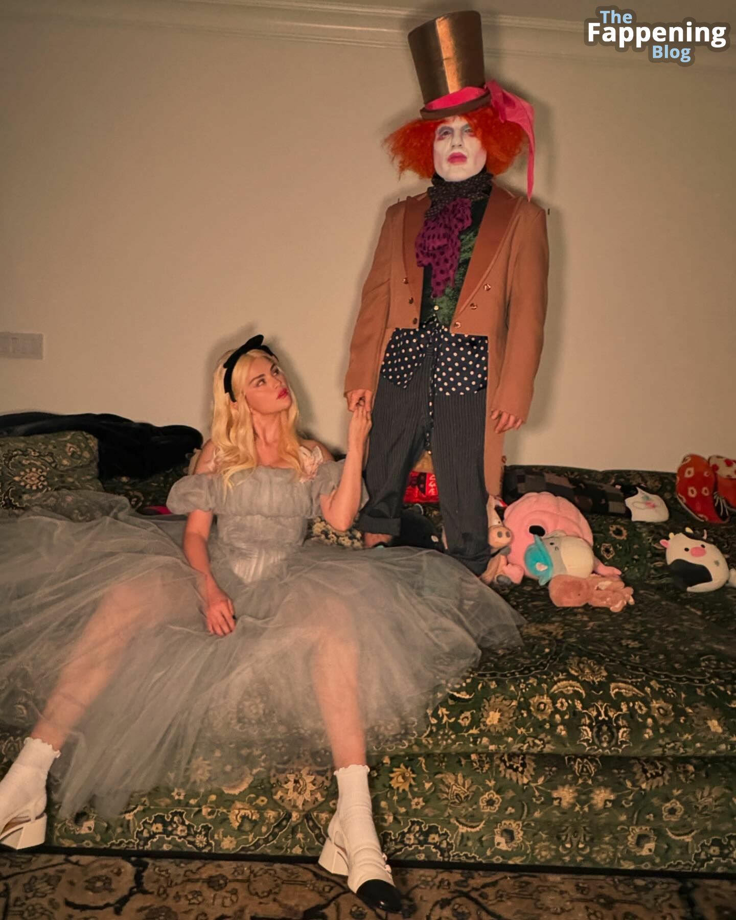 Selena Gomez luce impresionante con un atrevido conjunto de Alicia en el País de las Maravillas en Nobu, mostrando su generoso escote y subiendo la temperatura para Halloween.