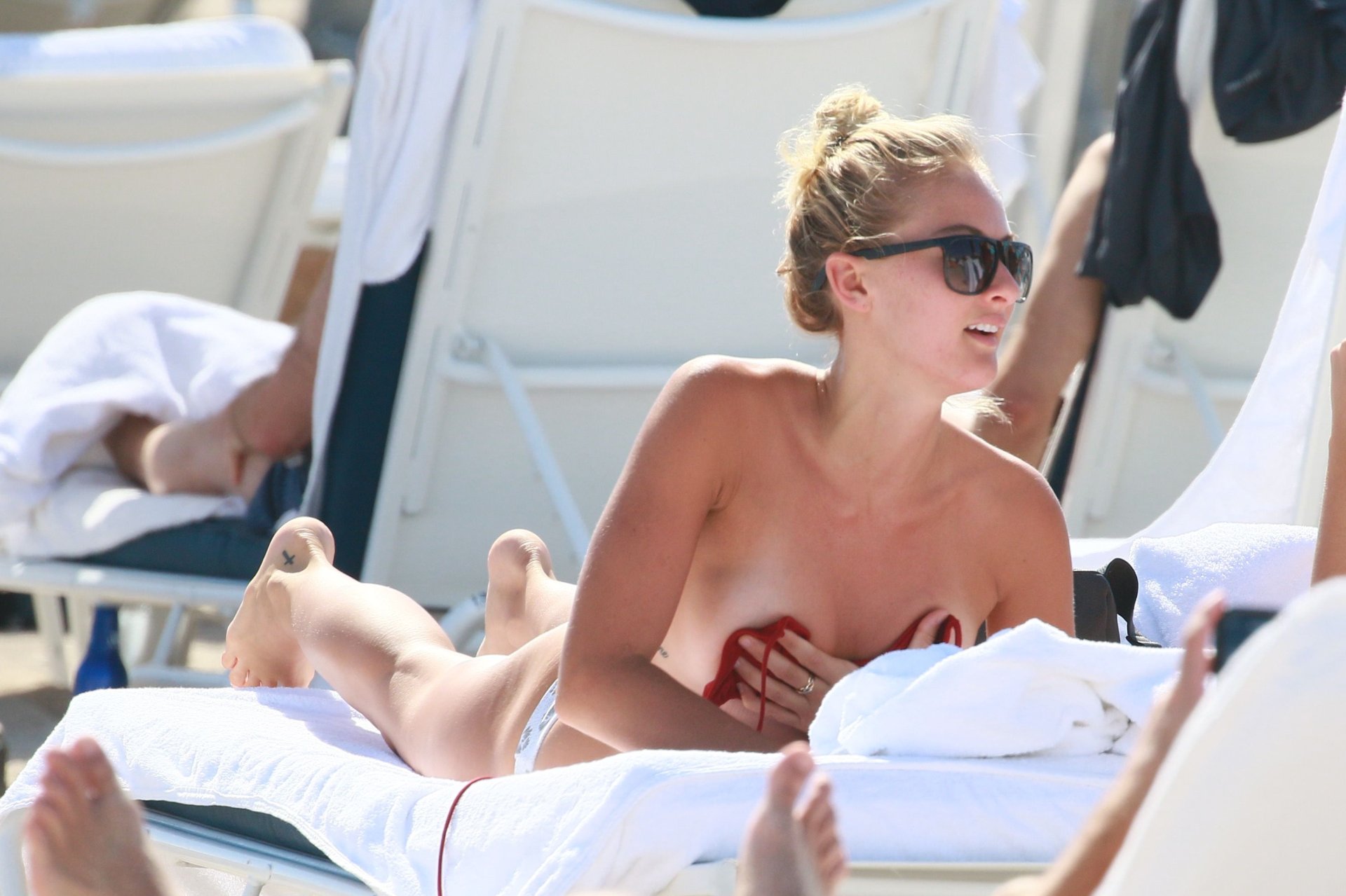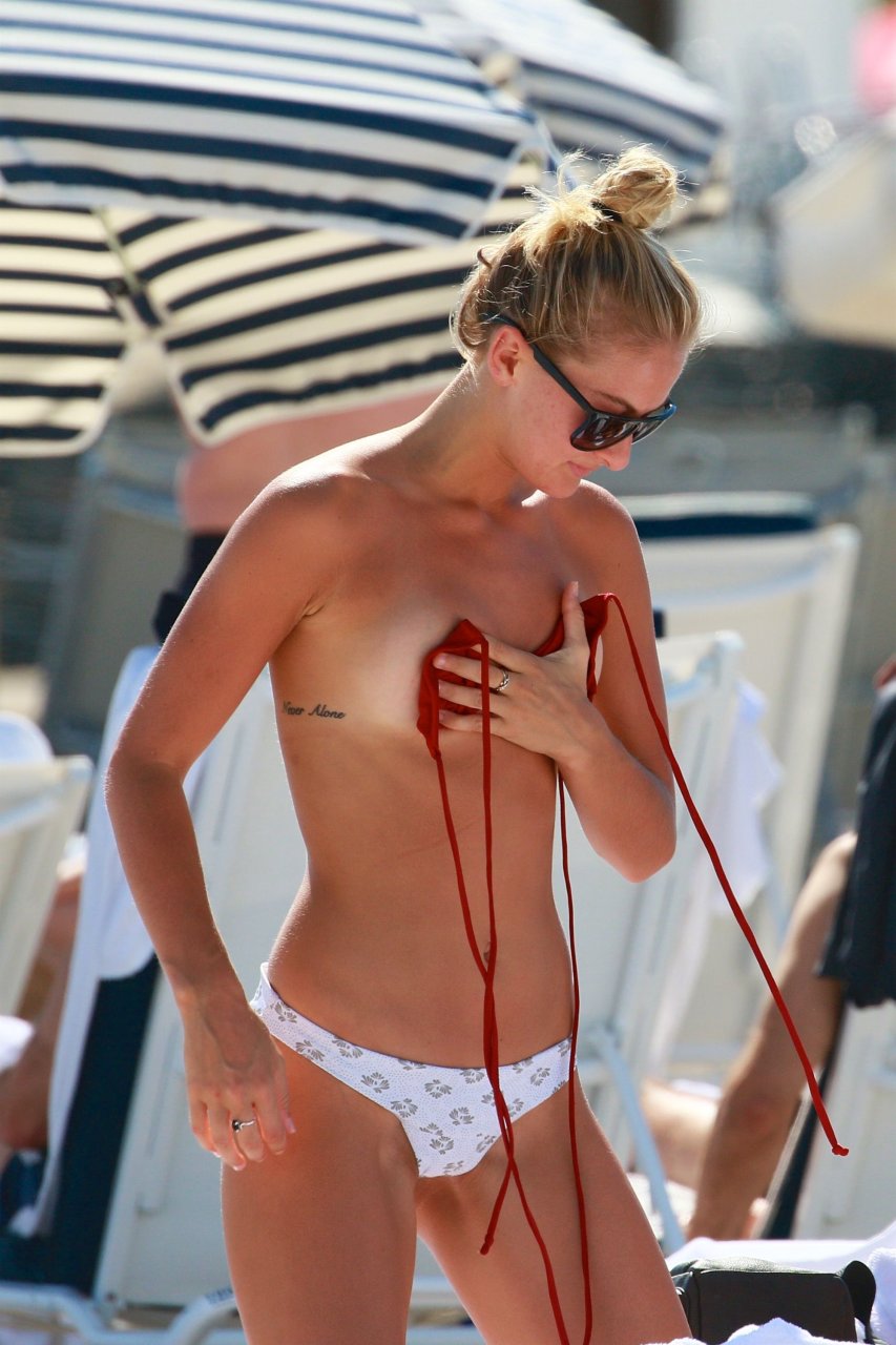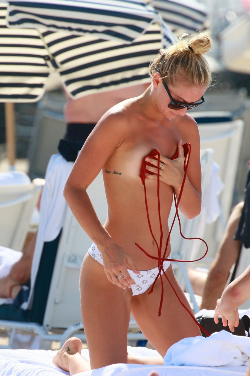 Selena Weber cubre sus pequeños pechos en la playa de Miami, 20/01/2017. Selena Weber es una modelo estadounidense. Edad: 24