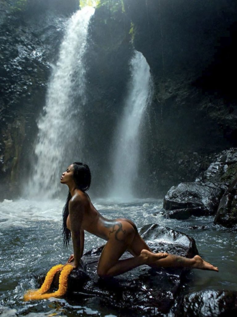 Asiática demasiado bronceada... no está mal aparte de los senos falsos, inyecciones en las nalgas, reconstrucción de muslos, etc... ¿es ella algún tipo de actriz porno? Porque mostrarse en spread eagle... no es muy propio de una modelo...