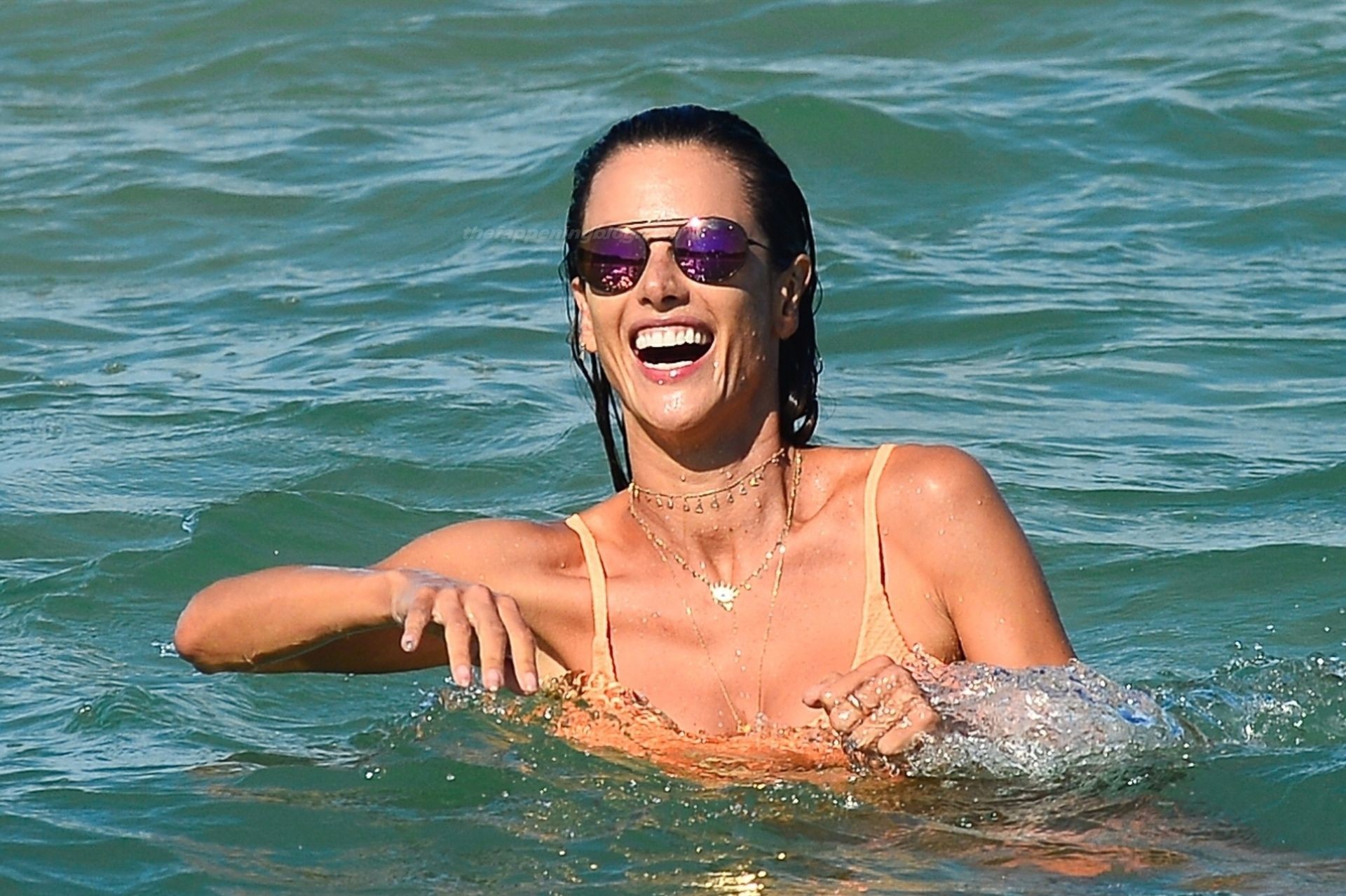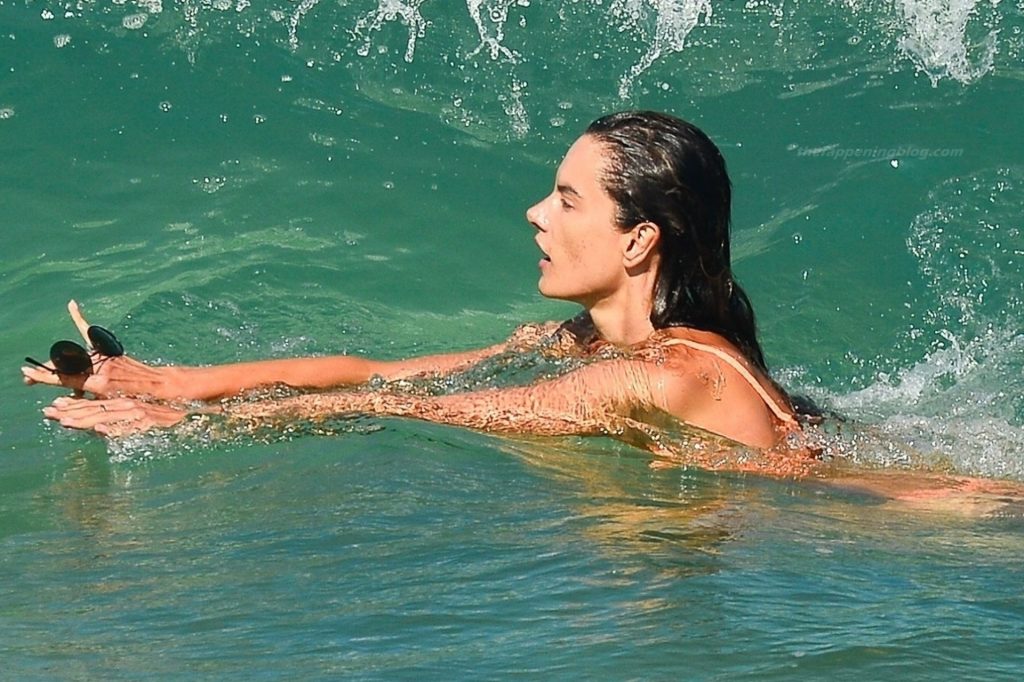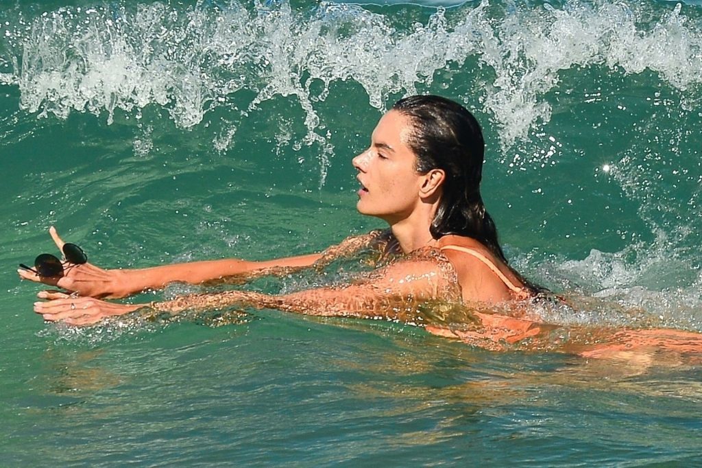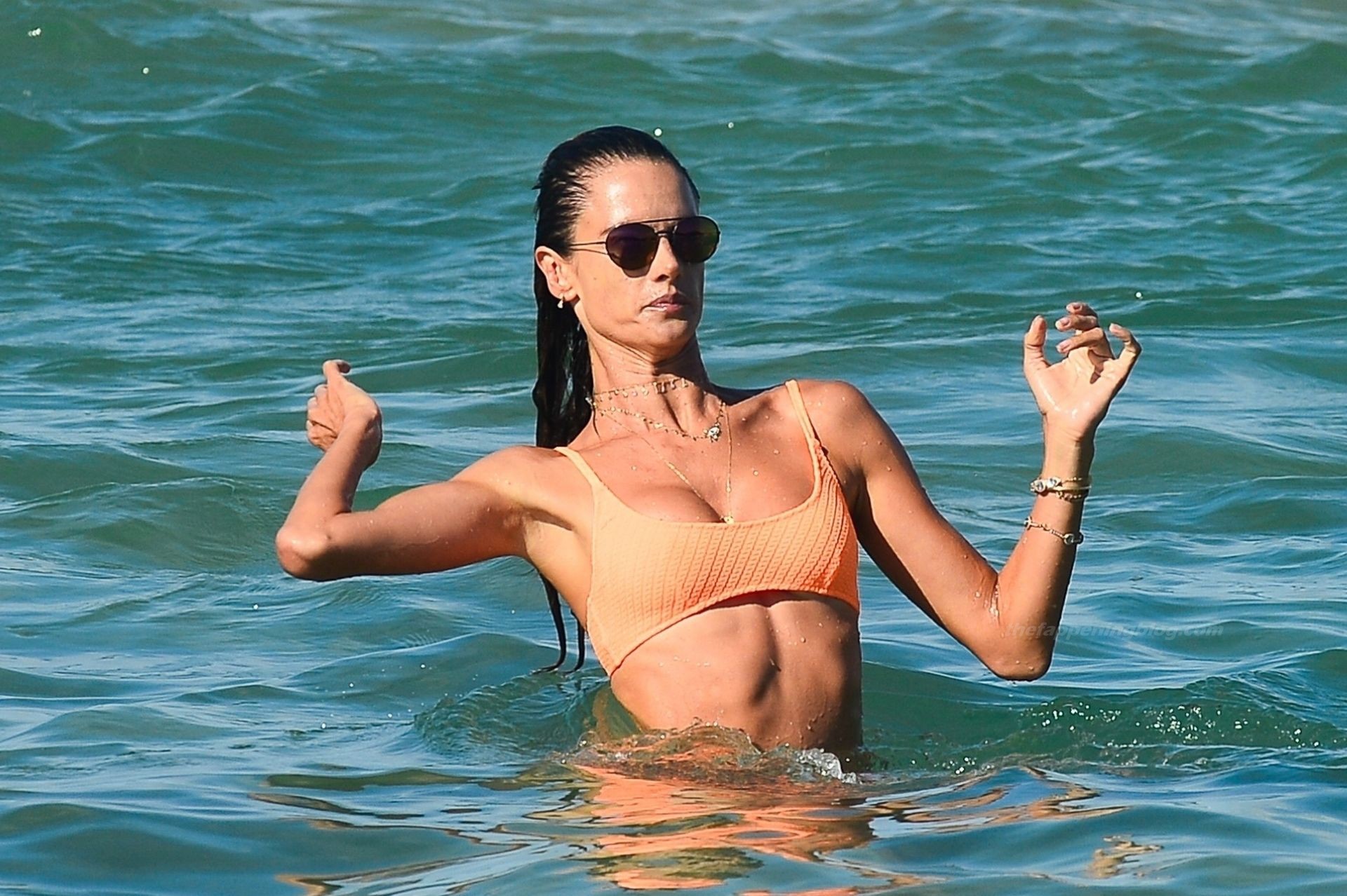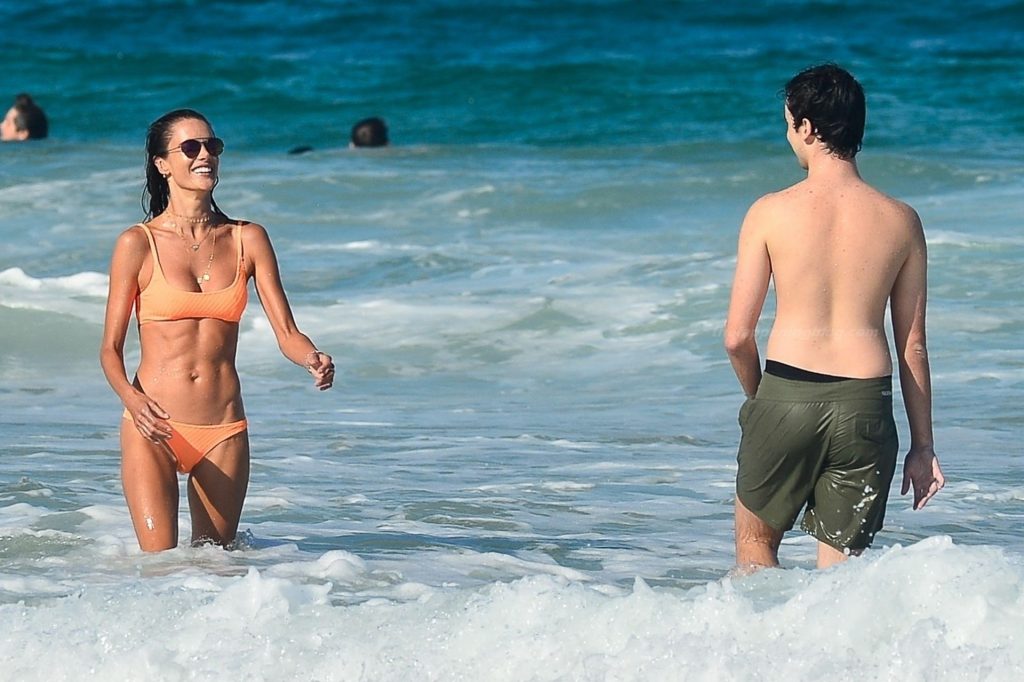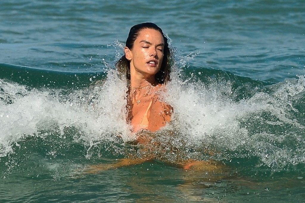 Alessandra Ambrosio lució su impresionante figura mientras modelaba los últimos diseños de su línea de trajes de baño, Gal Floripa, el sábado en la playa de Florianópolis.