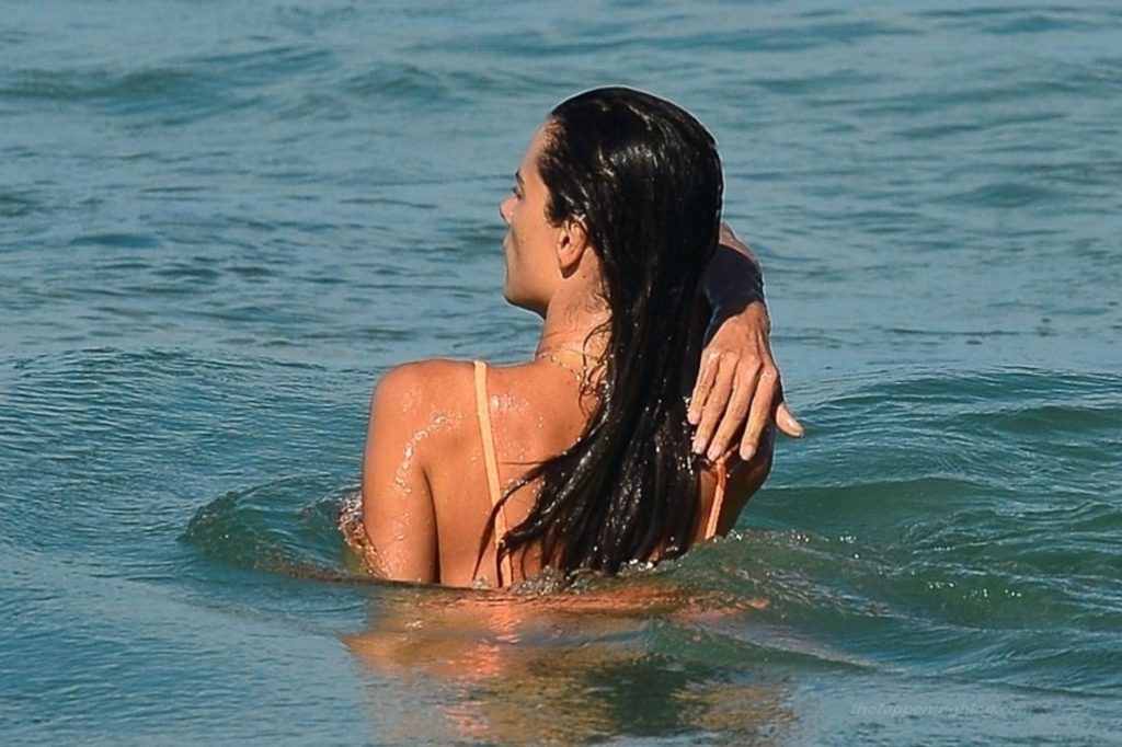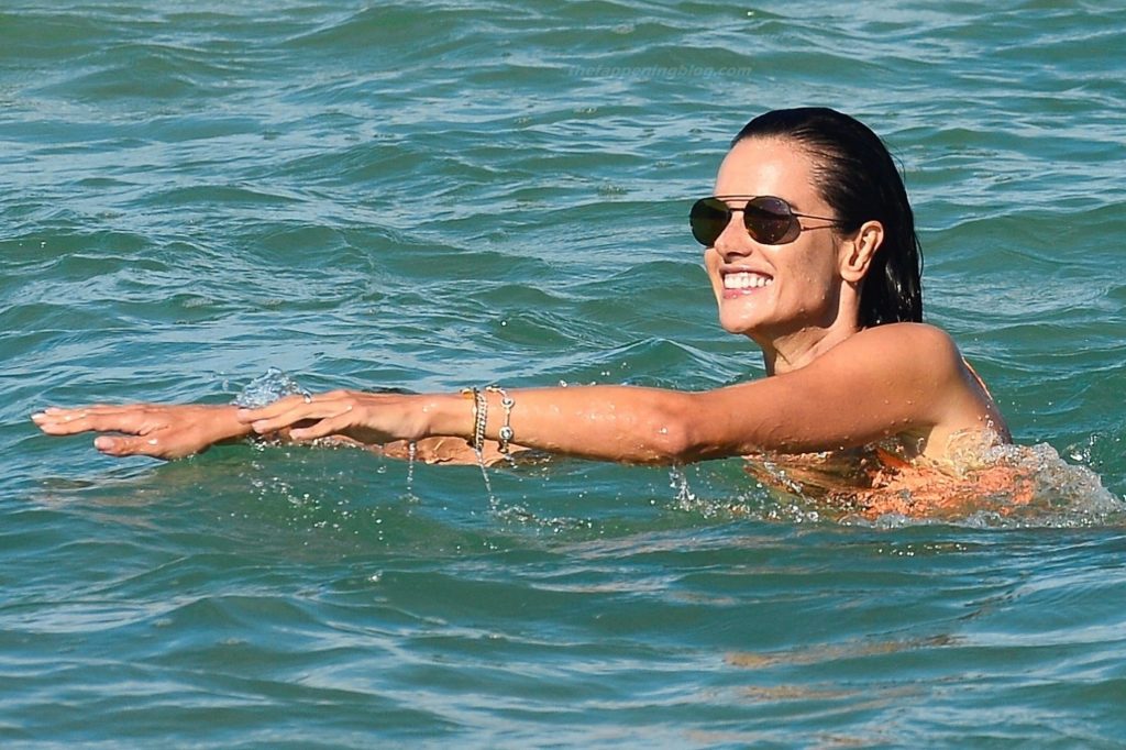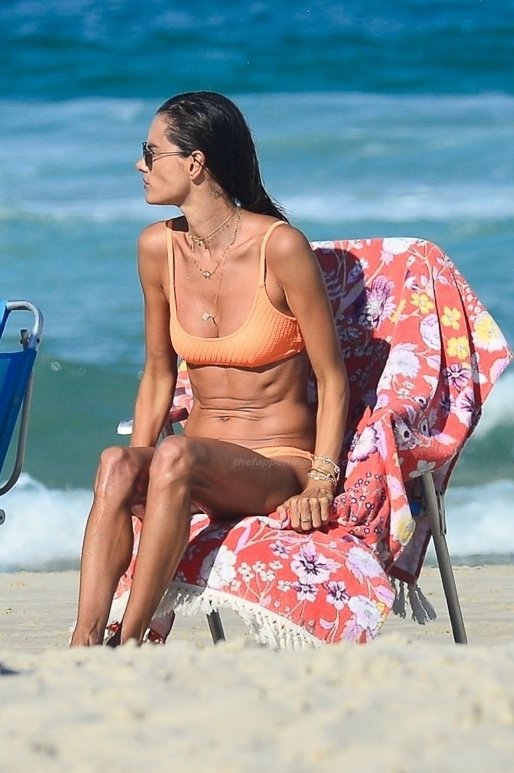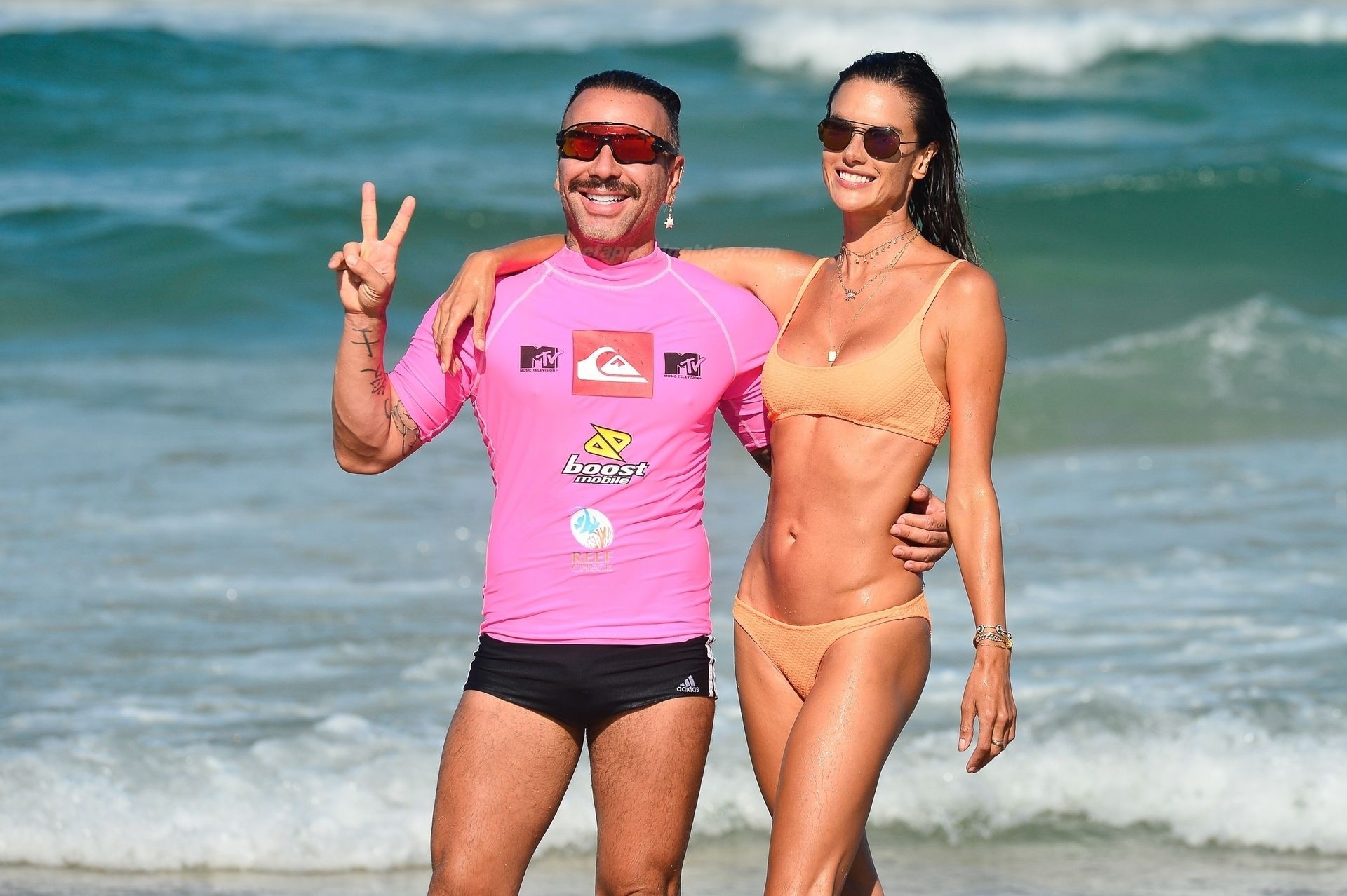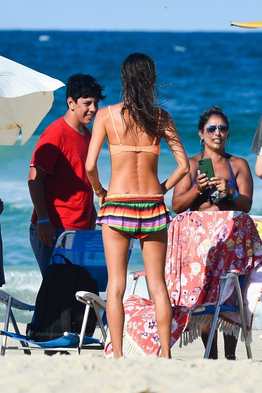 Alessandra Ambrosio lució su impresionante figura mientras modelaba los últimos diseños de su línea de trajes de baño, Gal Floripa, el sábado en la playa de Florianópolis.