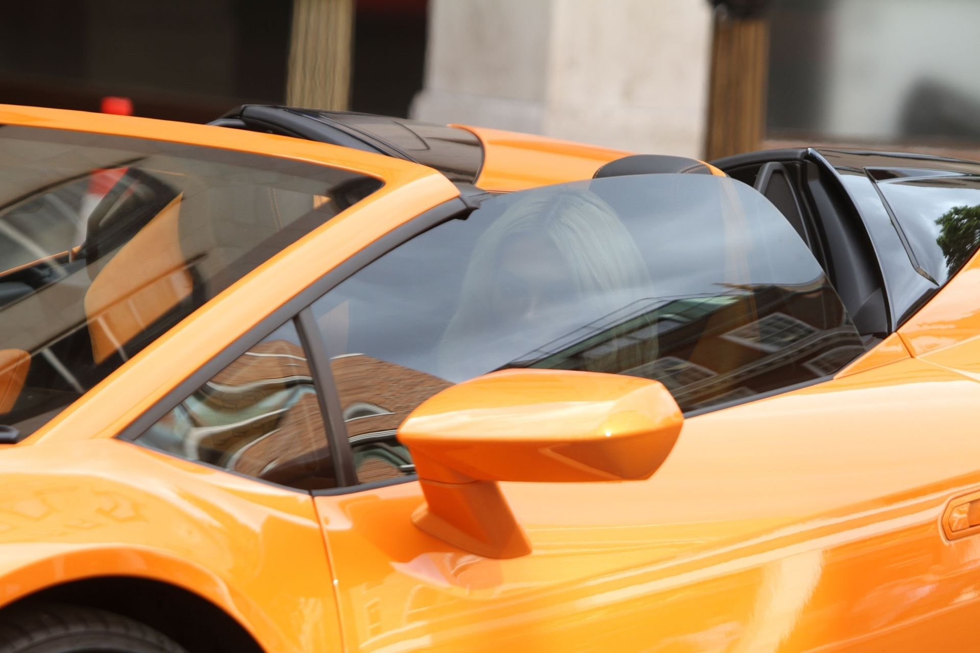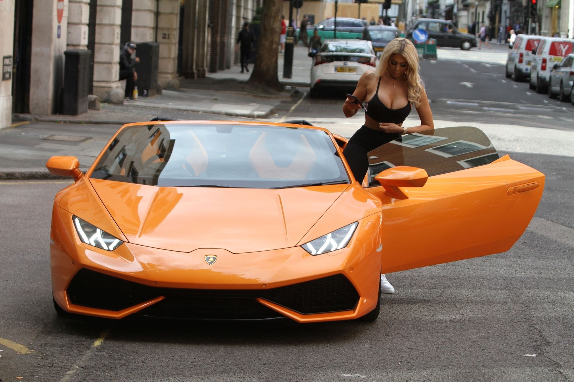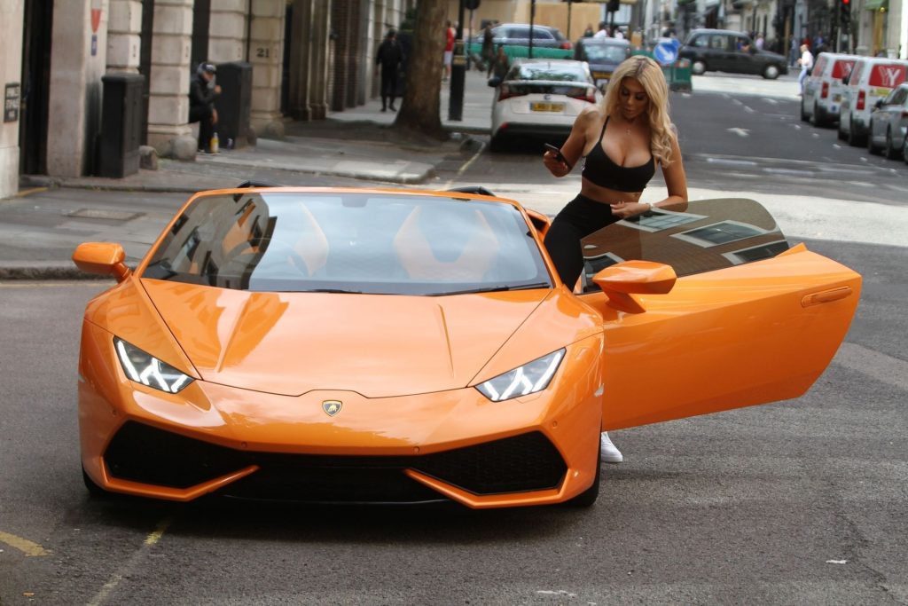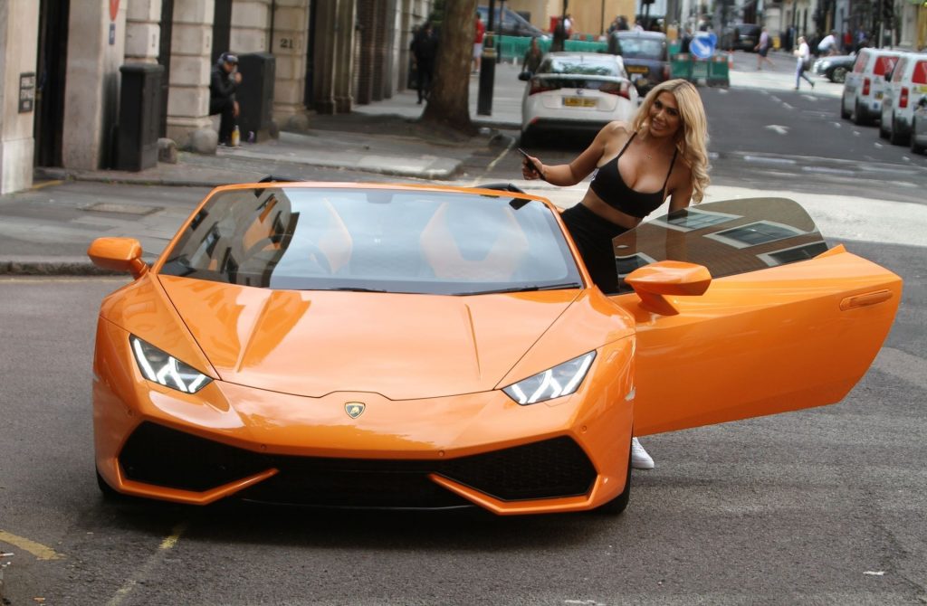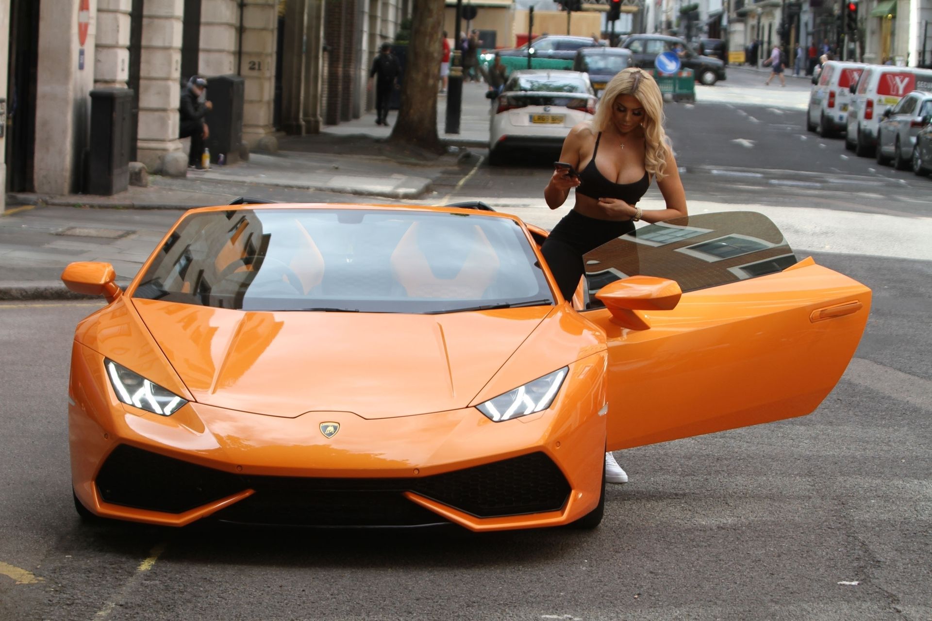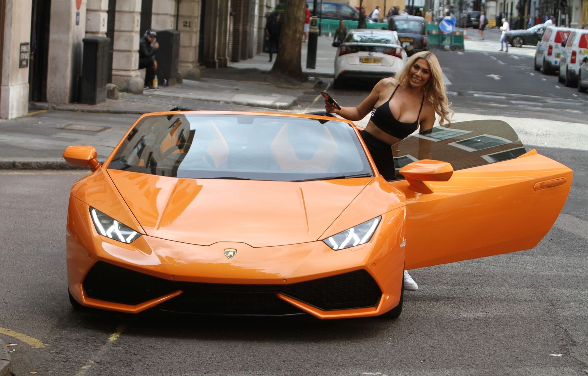 La deportista estrella de Geordie Shore, Chloe Ferry, que busca el amor en la próxima nueva serie de Celebs Go Dating, es vista por la ciudad subiendo a un brillante Lamborghini Gallardo naranja valorado en aproximadamente £200k – Londres, 16/07/2020.