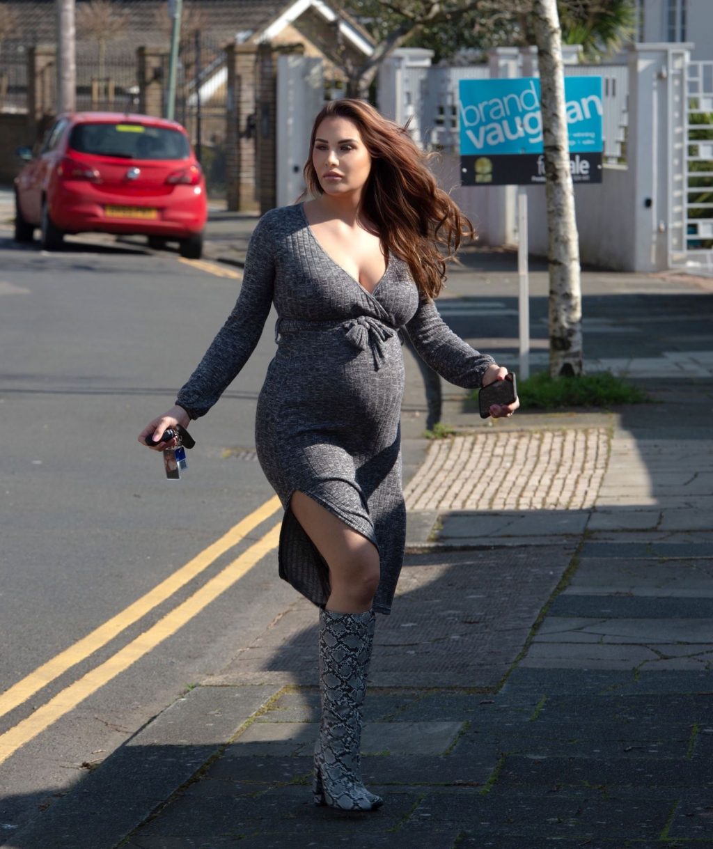 La estrella de reality Chloe Goodman es vista saliendo de su casa en Londres para dirigirse a su última revisión hospitalaria antes de que llegue su hija, 22/04/2020.