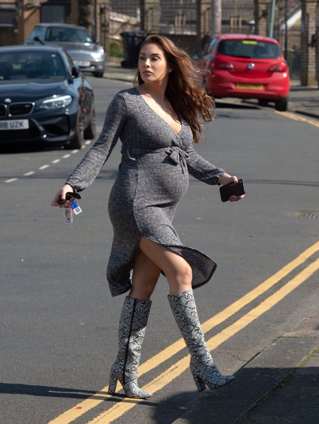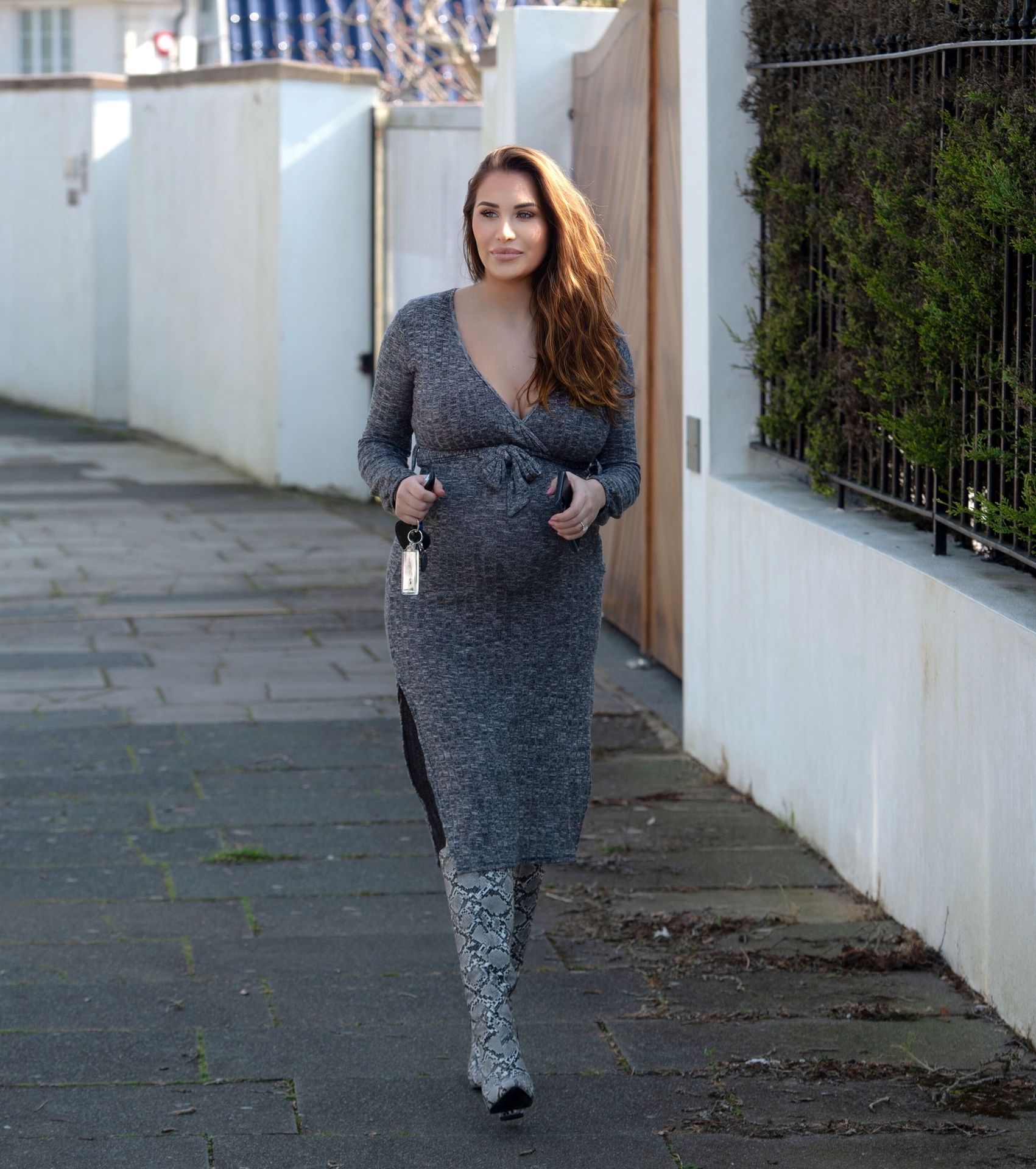 Chloe publicó en Instagram “Hoy me he vestido, cansada de sentirme y verme desaliñada… última revisión antes de que llegue la pequeña princesa.” Chloe, que espera a su primera hija con el futbolista Grant Hall, está a punto de dar a luz y luce radiante con un vestido gris y botas hasta la rodilla.
