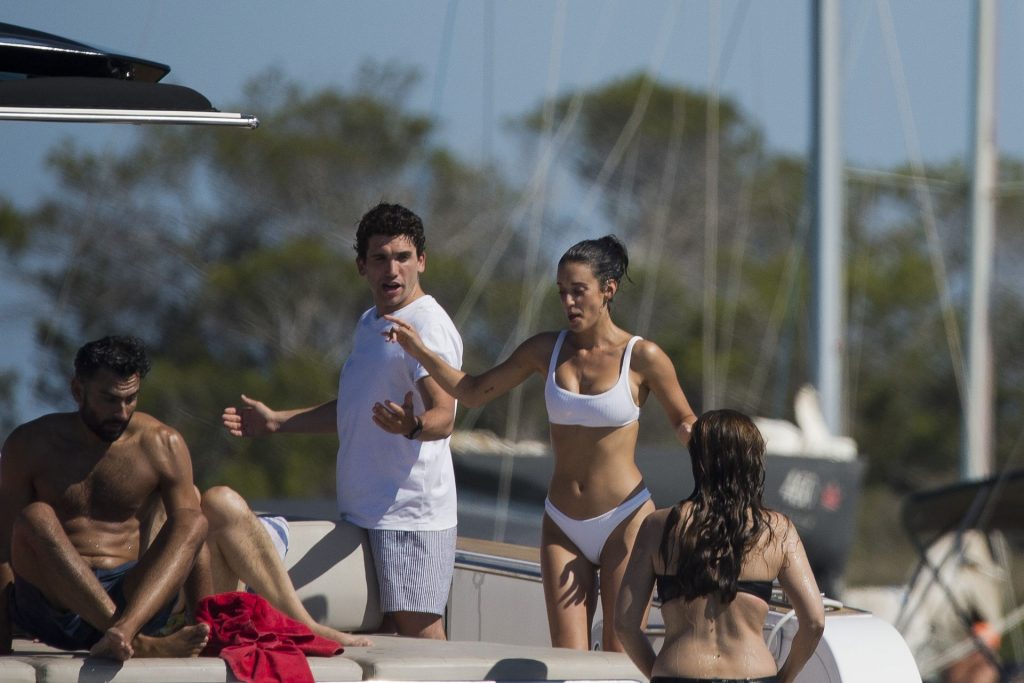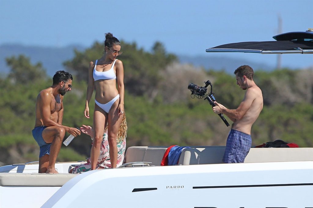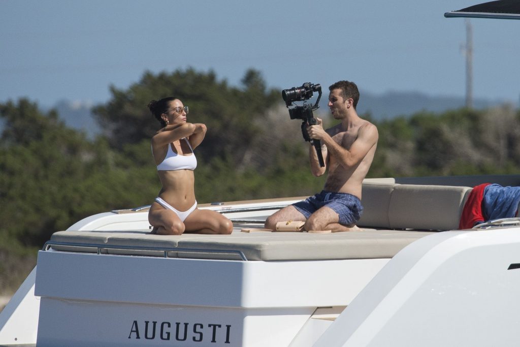 Maria Pedraza de las series de Netflix “La Casa de Papel” y “Élite” es vista mientras realiza una sesión de fotos en Formentera antes de unirse a su compañero de reparto y actual novio Jaime Lorente, 19/07/2020.