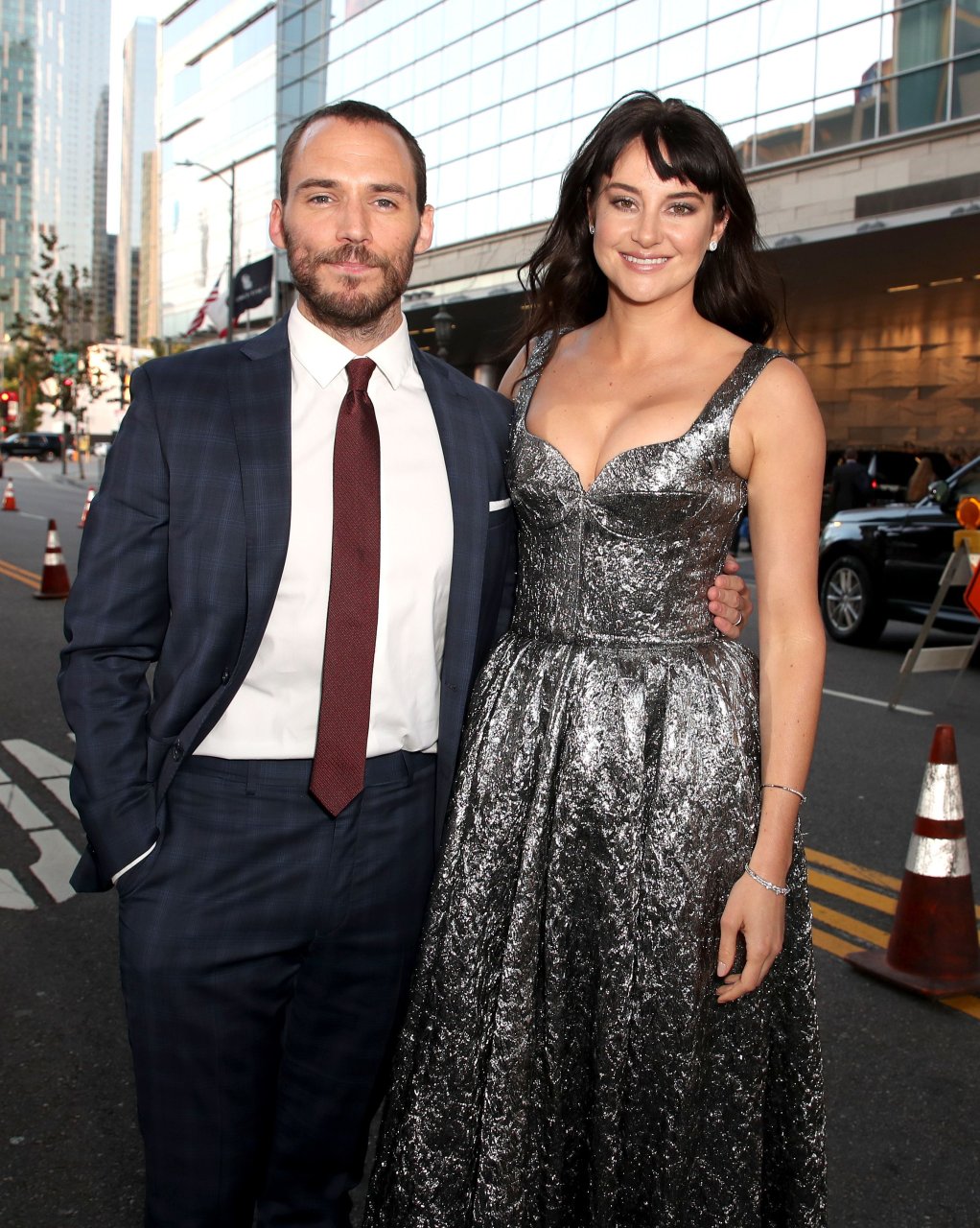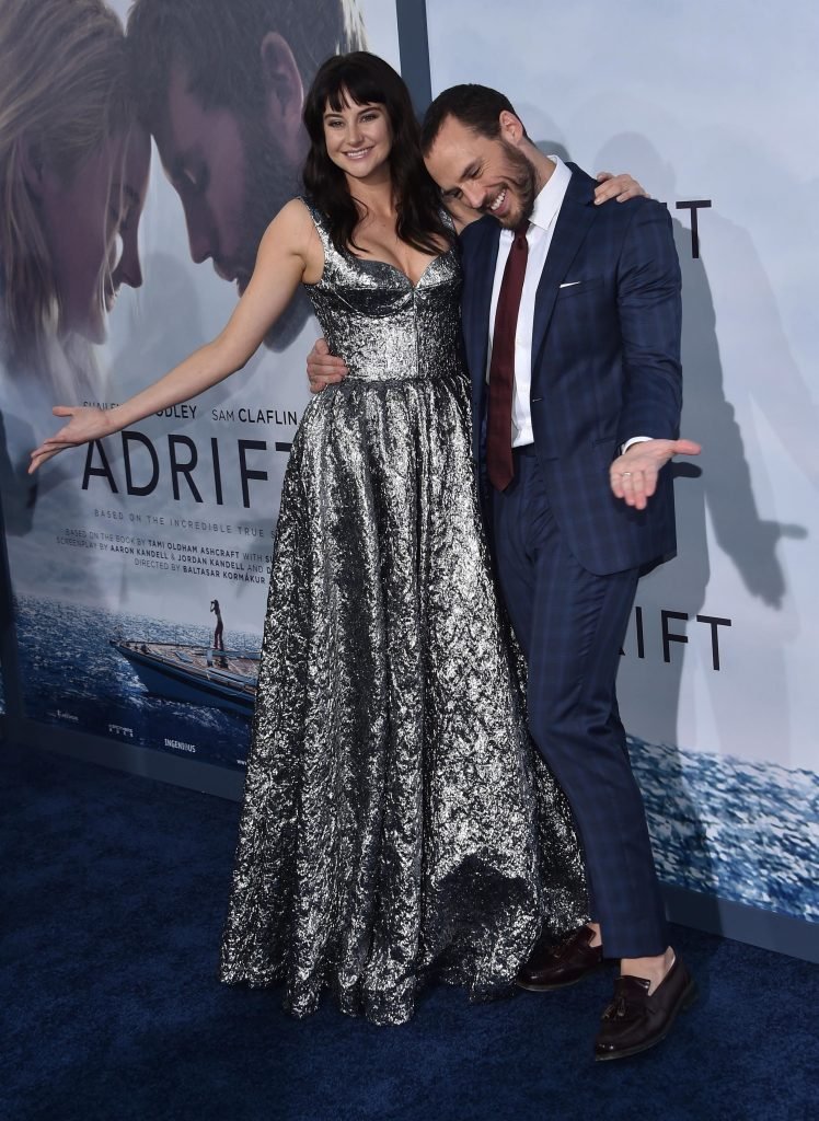 La pareja apareció en el estreno de “Adrift” en Los Ángeles, 24/05/2018. La actriz eligió un vestido plateado con escote, y su novio un elegante traje azul oscuro.