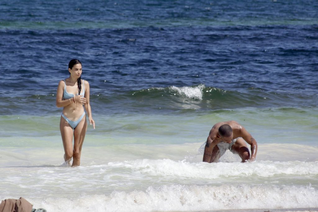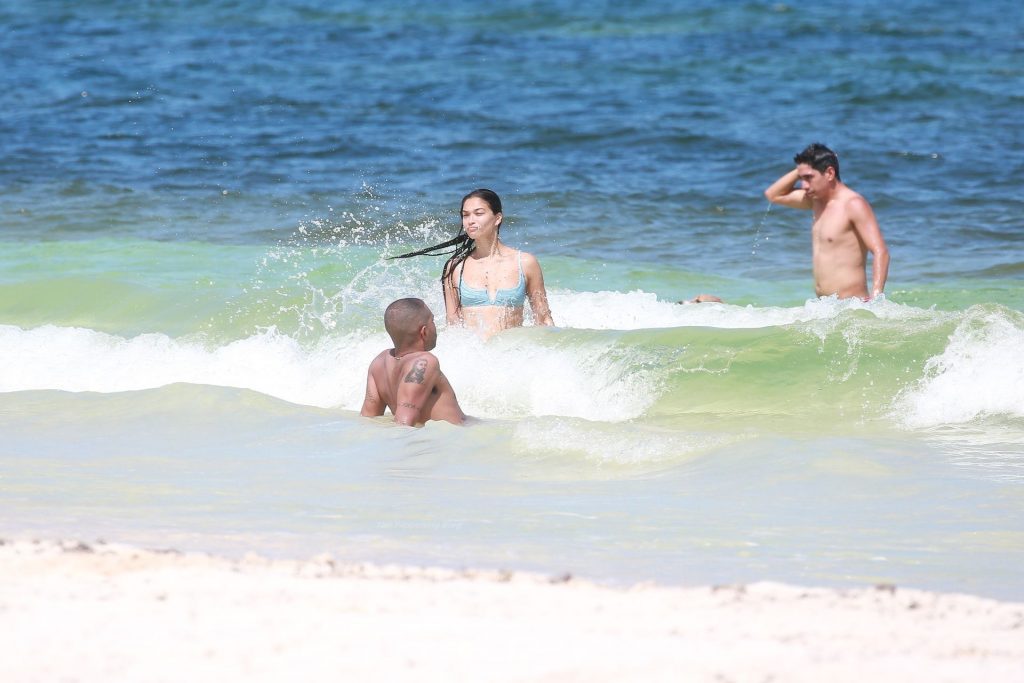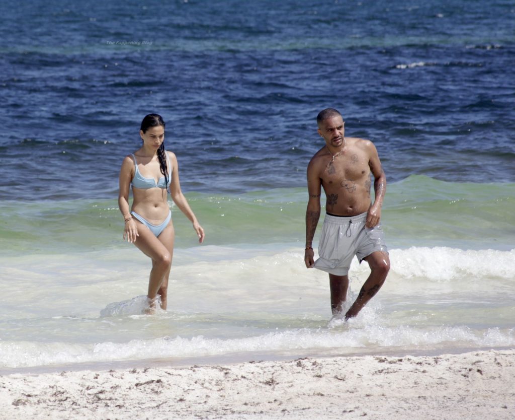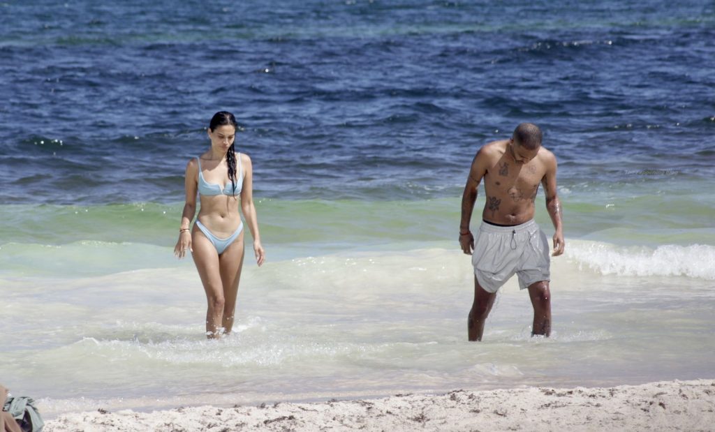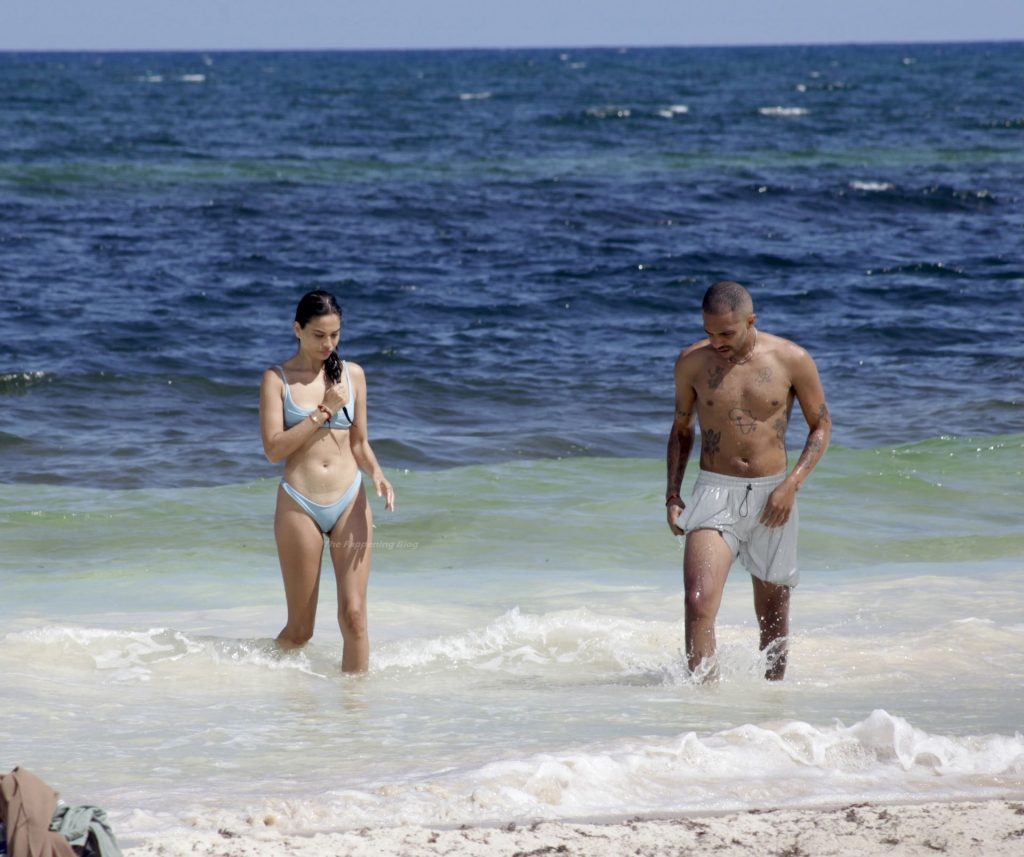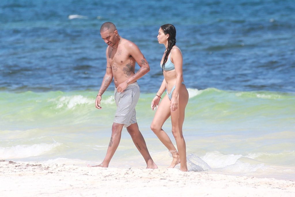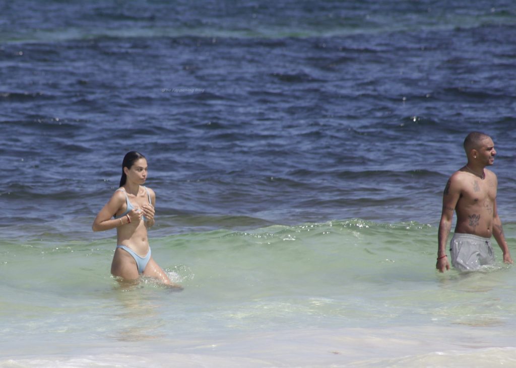 Model Shanina Shaik y su novio Matthew Adesuyan se acercan y se muestran cariñosos mientras disfrutan de un baño en las aguas de Tulum, 14/08/2021.