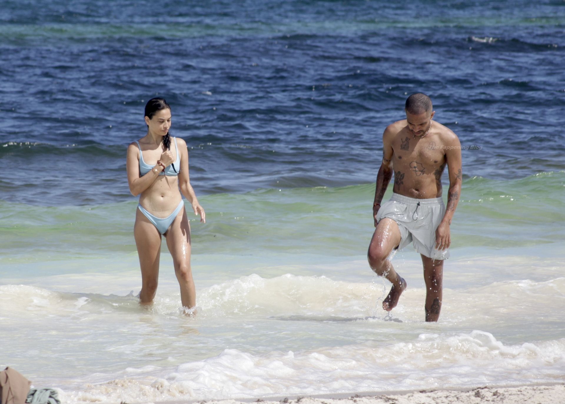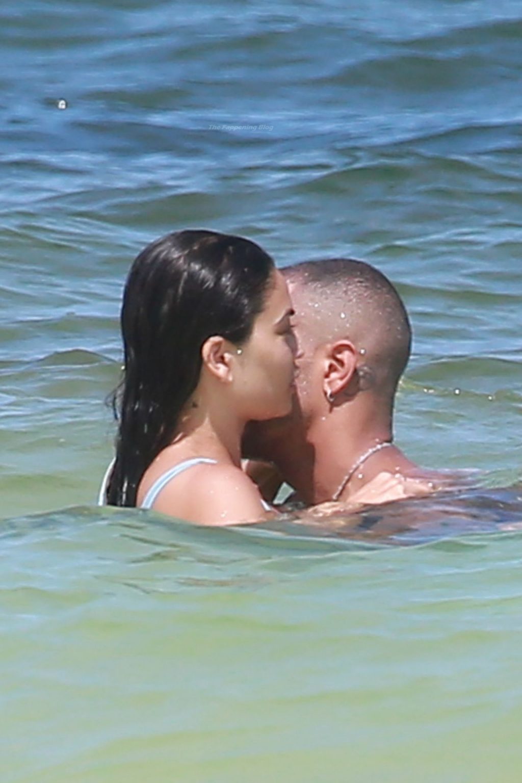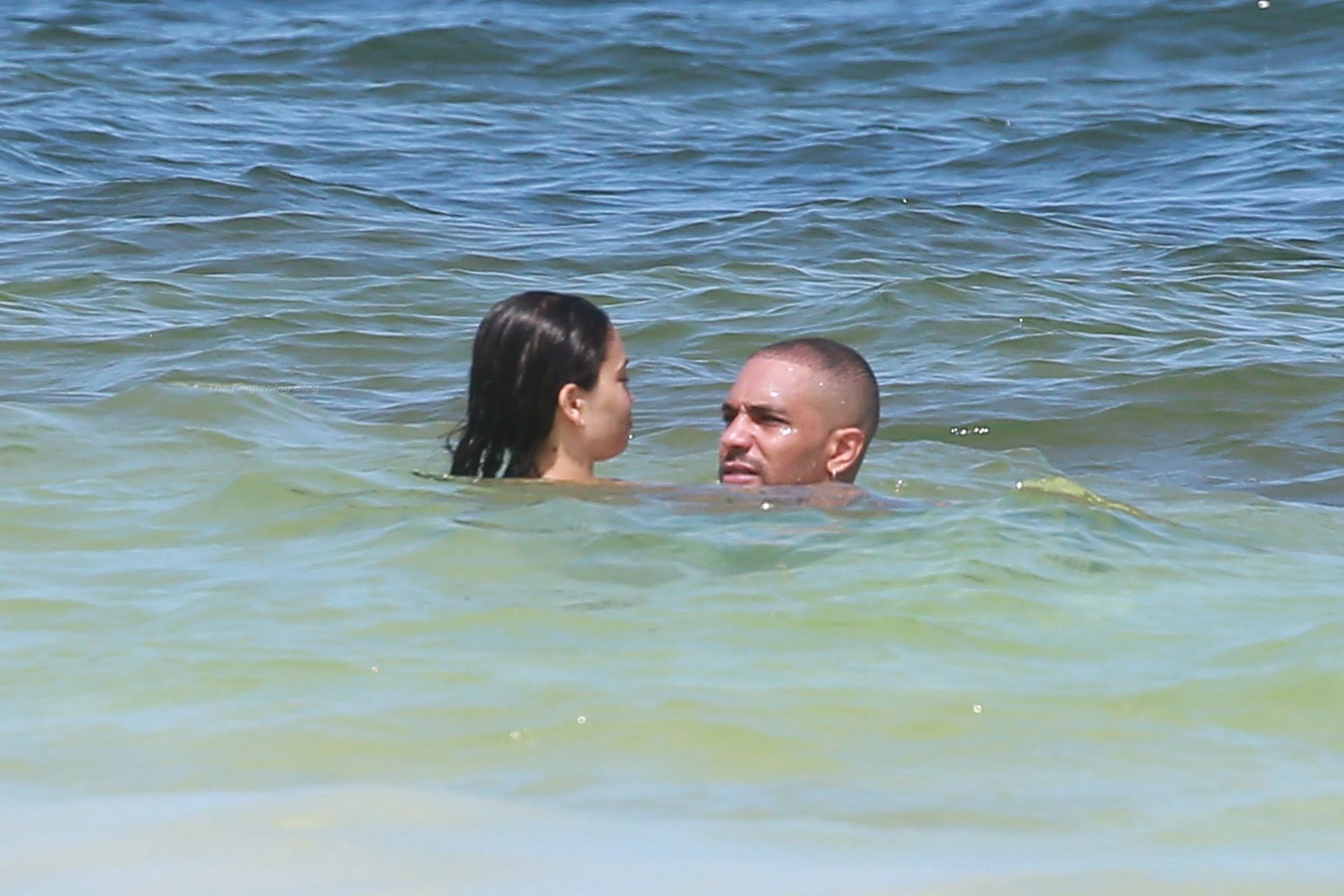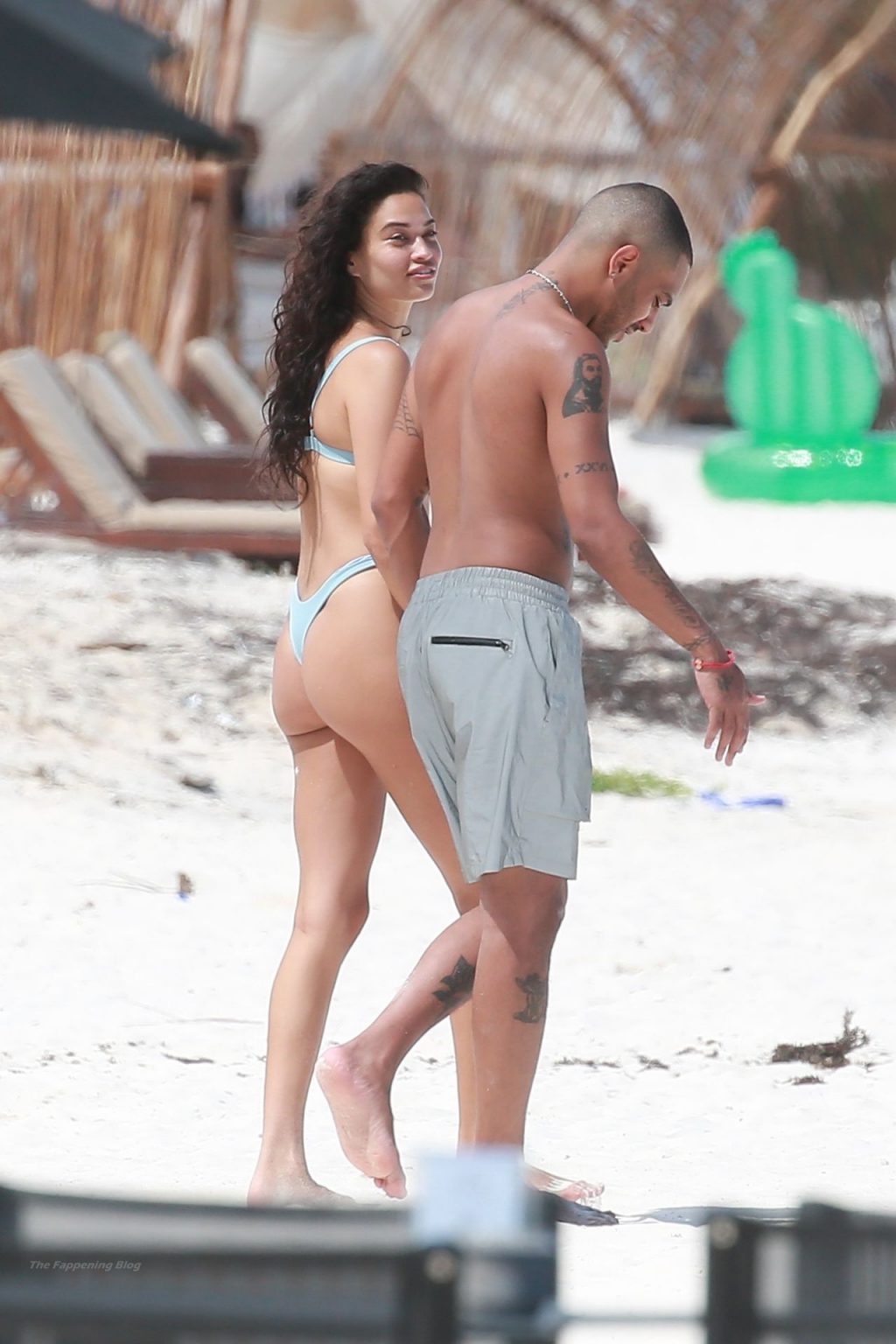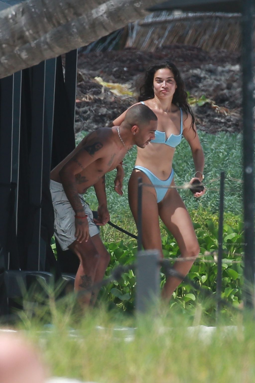 Model Shanina Shaik y su novio Matthew Adesuyan se acercan y se muestran cariñosos mientras disfrutan de un baño en las aguas de Tulum, 14/08/2021.