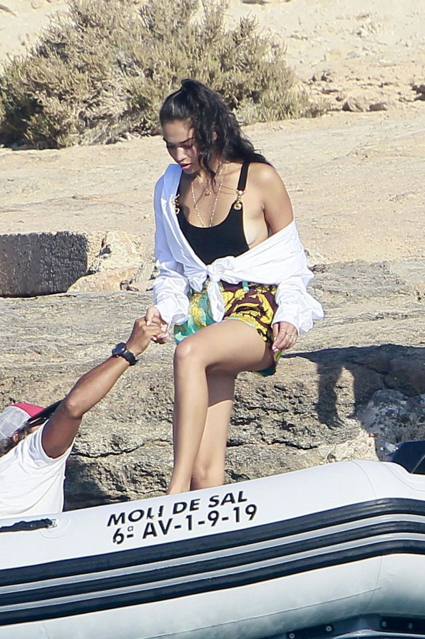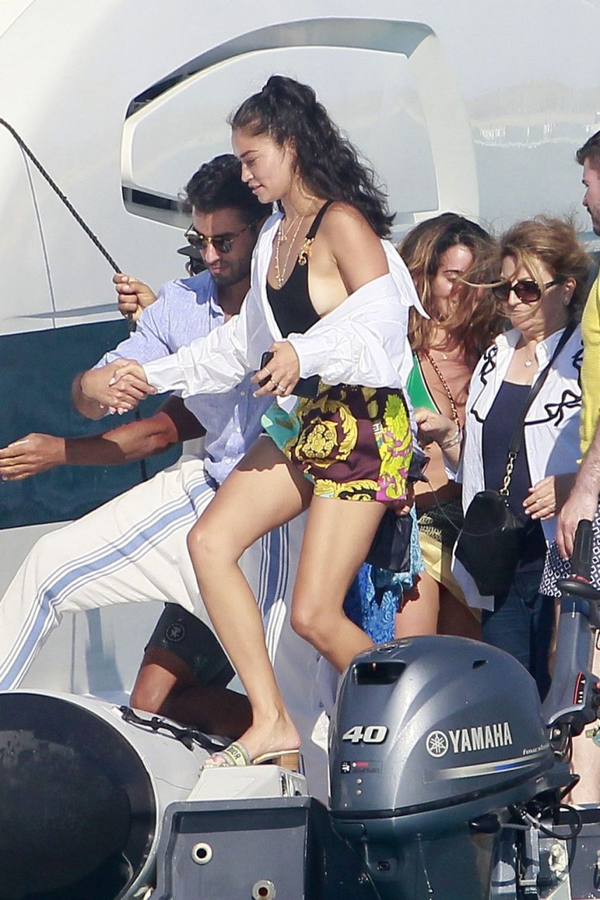 La modelo Shanina Shaik disfruta otro día a bordo de un yate con amigos y un hombre desconocido en Formentera, España, 16/08/2019.
