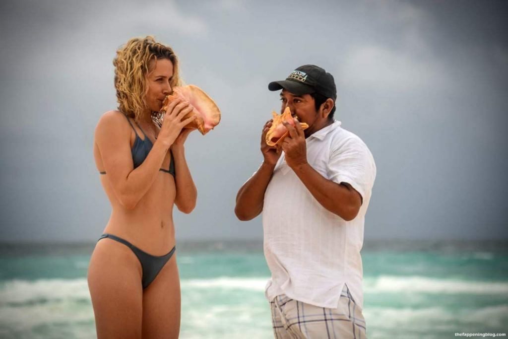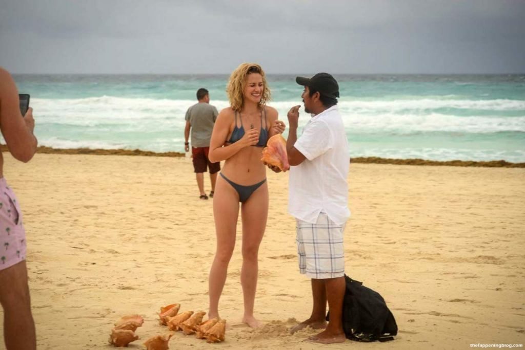 Here are Shantel VanSanten’s hot bikini candid pics, taken while she was filming the commercial. She tried to spend a romantic weekend in Mexico with her boyfriend. The man is 46 years old American actor Victor Webster, and he looks great indeed. Shantel wore a gray bikini until her man covered her with a towel. Unfortunately, we can’t see her tits or pussy here, but good ass cheeks are here!