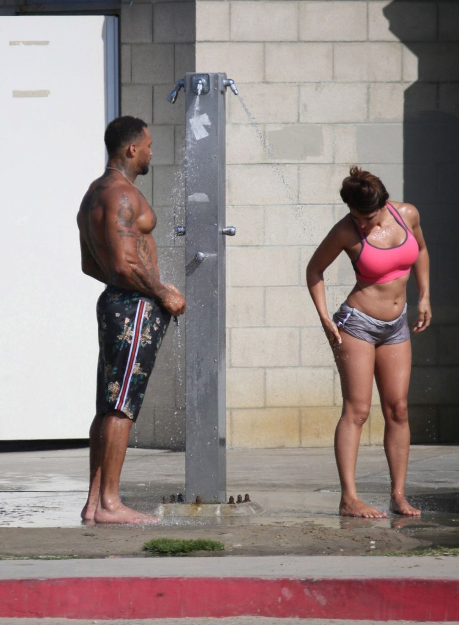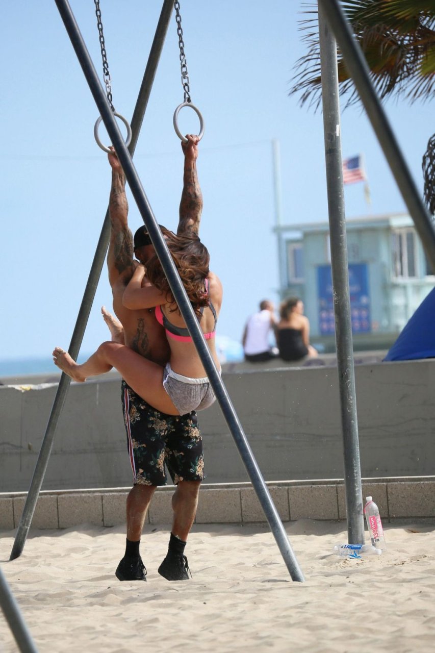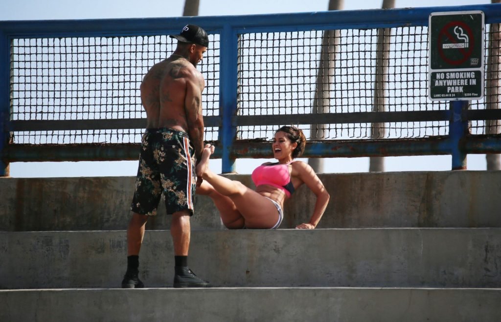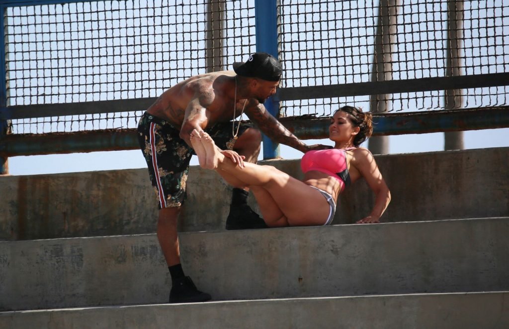 La ex esposa de Lorenzo Lamas, la actriz y estrella de reality TV de 32 años Shawna Craig, se acerca peligrosamente al ex de Kelly Brook, David McIntosh, durante un entrenamiento atrevido en Muscle Beach en Venice Beach, 13/06/2018.