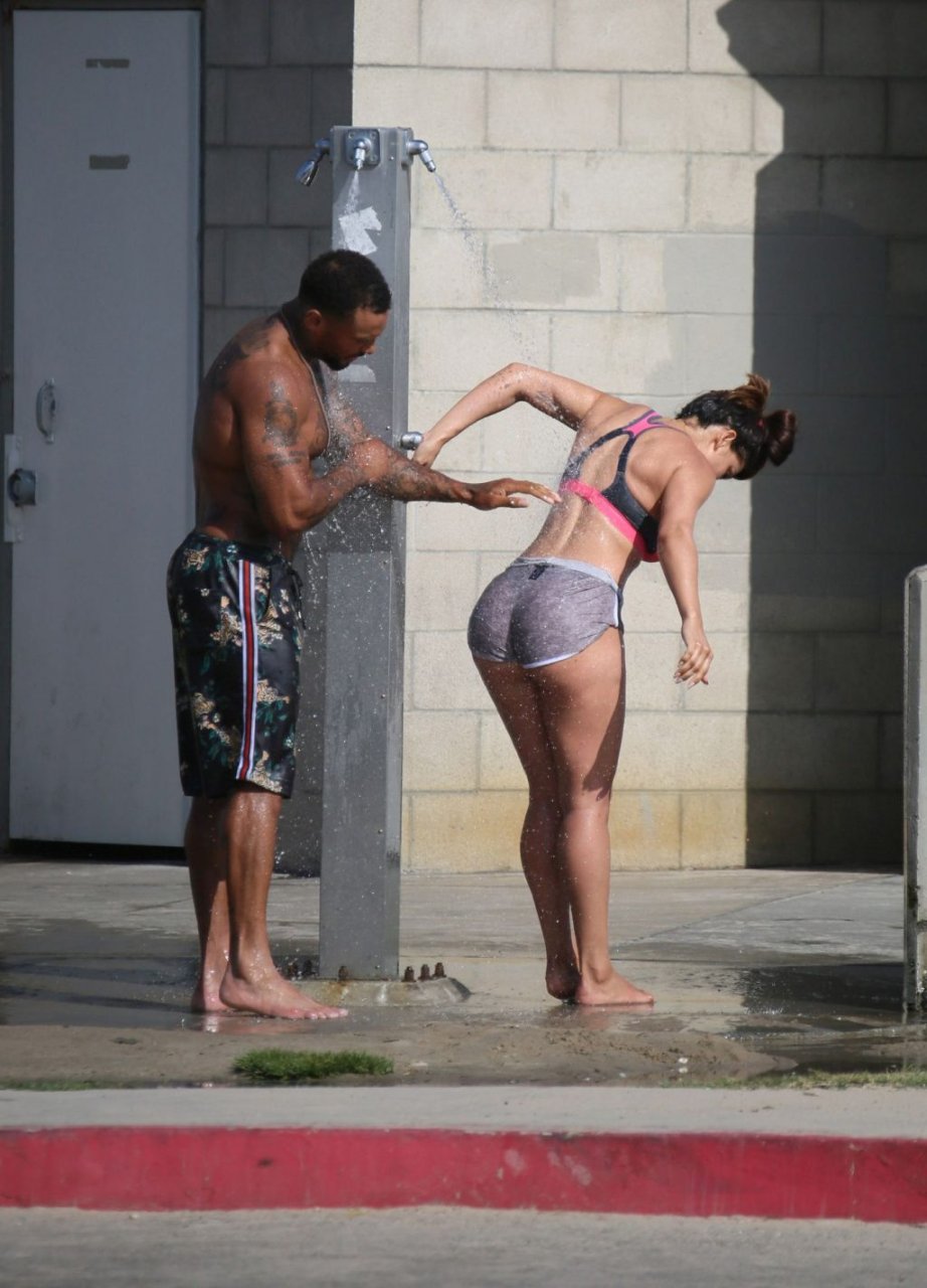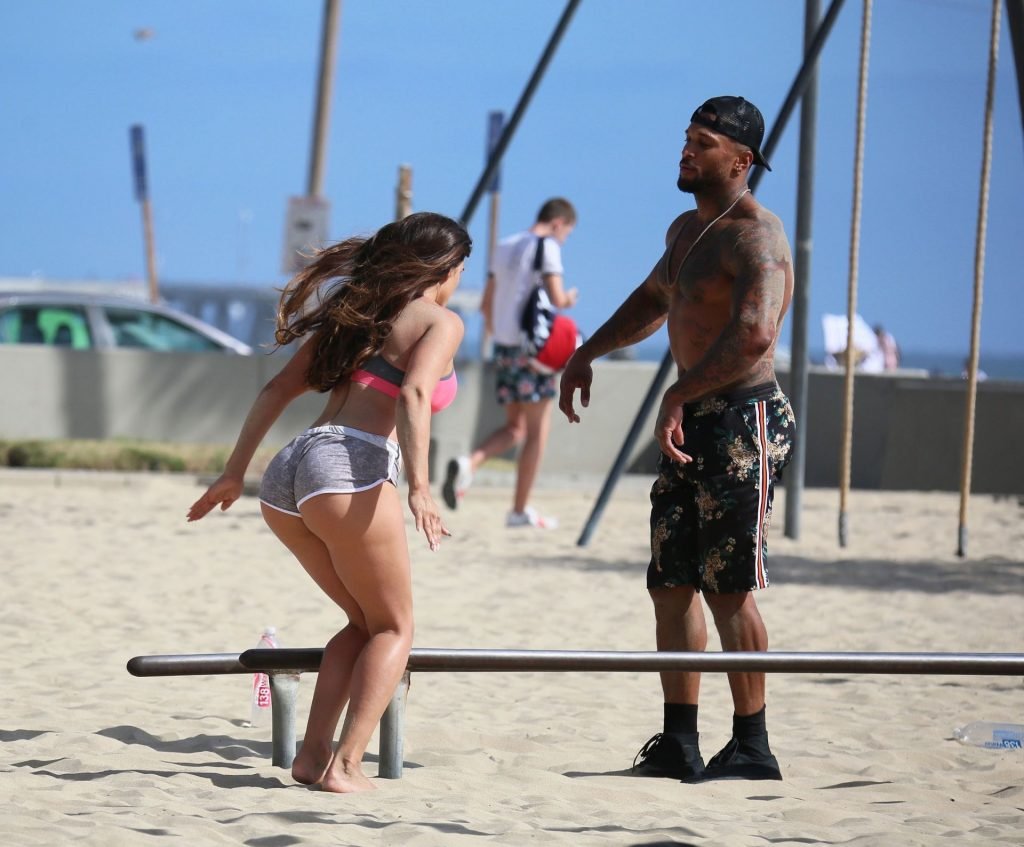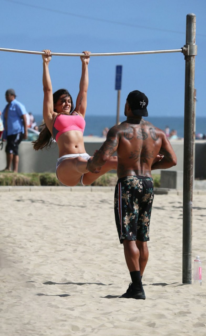 La ex esposa de Lorenzo Lamas, la actriz y estrella de reality TV de 32 años Shawna Craig, se acerca peligrosamente al ex de Kelly Brook, David McIntosh, durante un entrenamiento atrevido en Muscle Beach en Venice Beach, 13/06/2018.