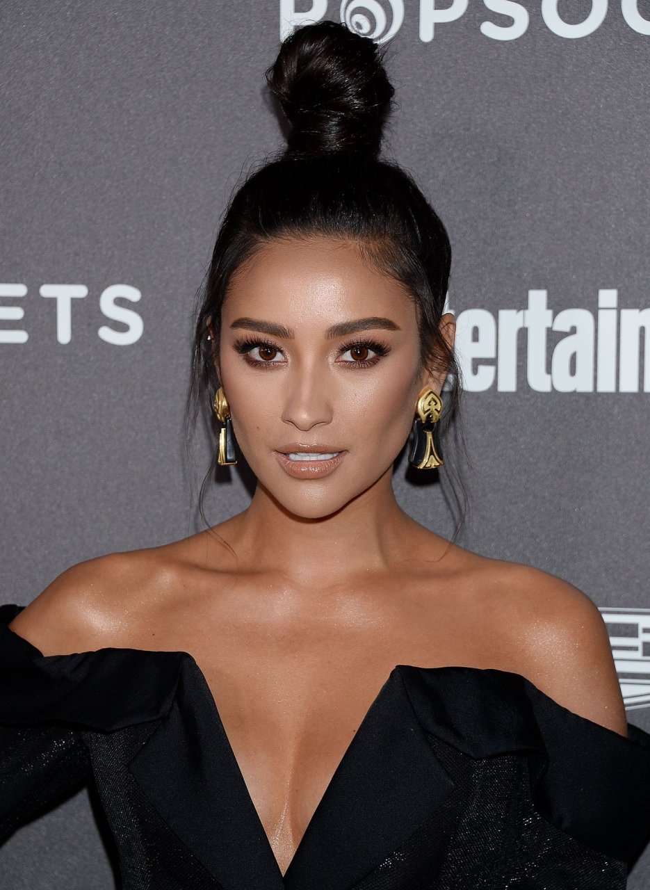 La actriz/modelo canadiense Shay Mitchell luce sus piernas sexys, escote y ropa interior en la fiesta previa al SAG de Entertainment Weekly 2019 en Hollywood, 26/01/2019.