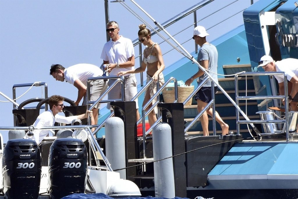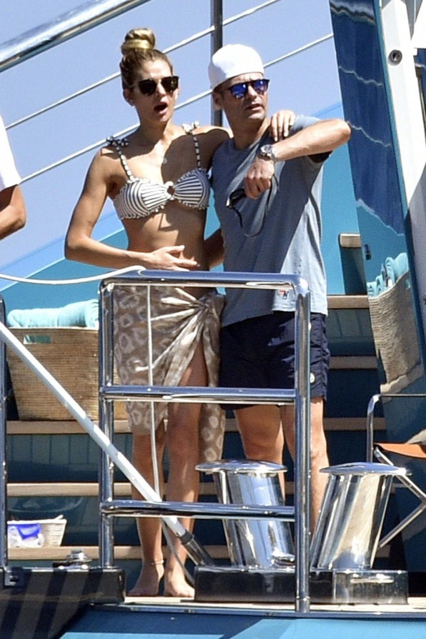 Ryan Seacrest y su novia Shayna Taylor fueron fotografiados disfrutando de sus vacaciones de verano en Positano, Italia con amigos, 21/08/2019. La pareja se separó a principios de este año después de tres años juntos y parece que han retomado justo donde lo dejaron.