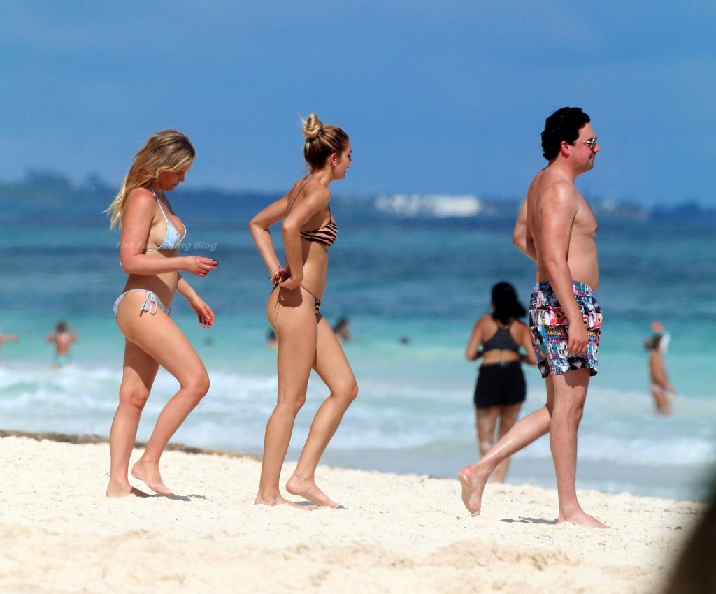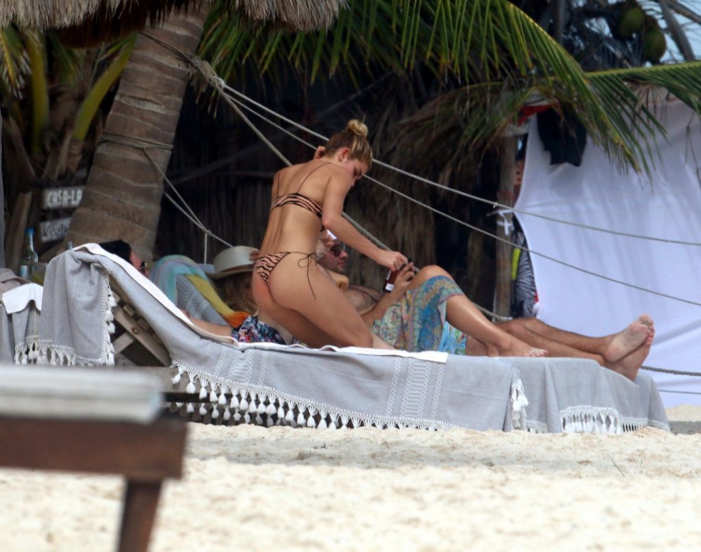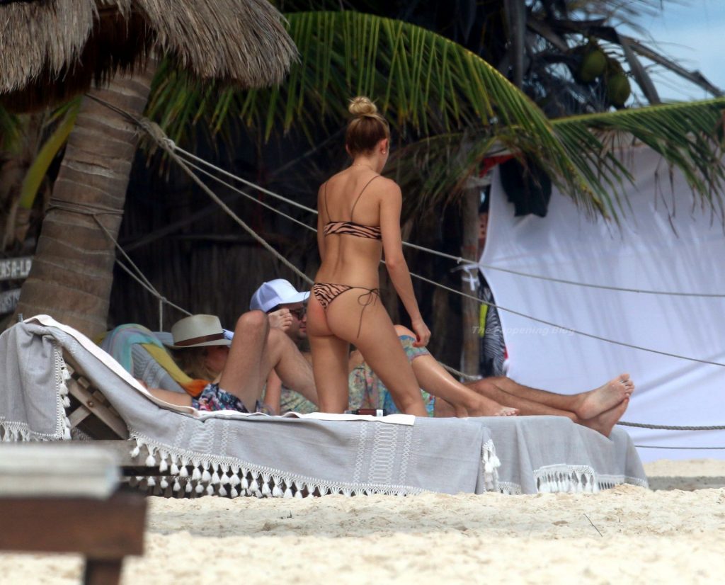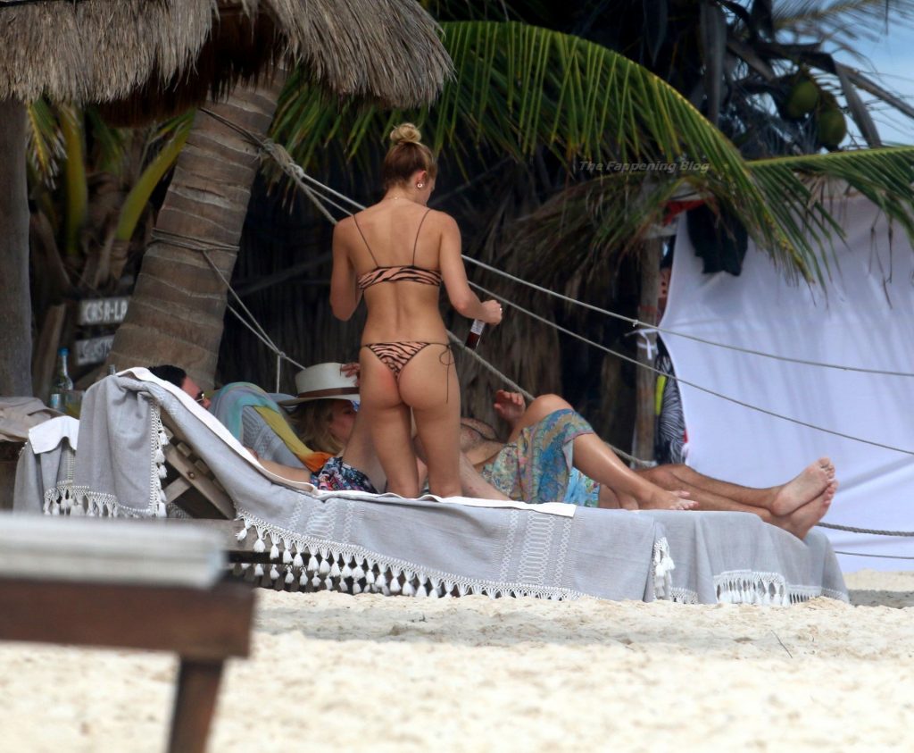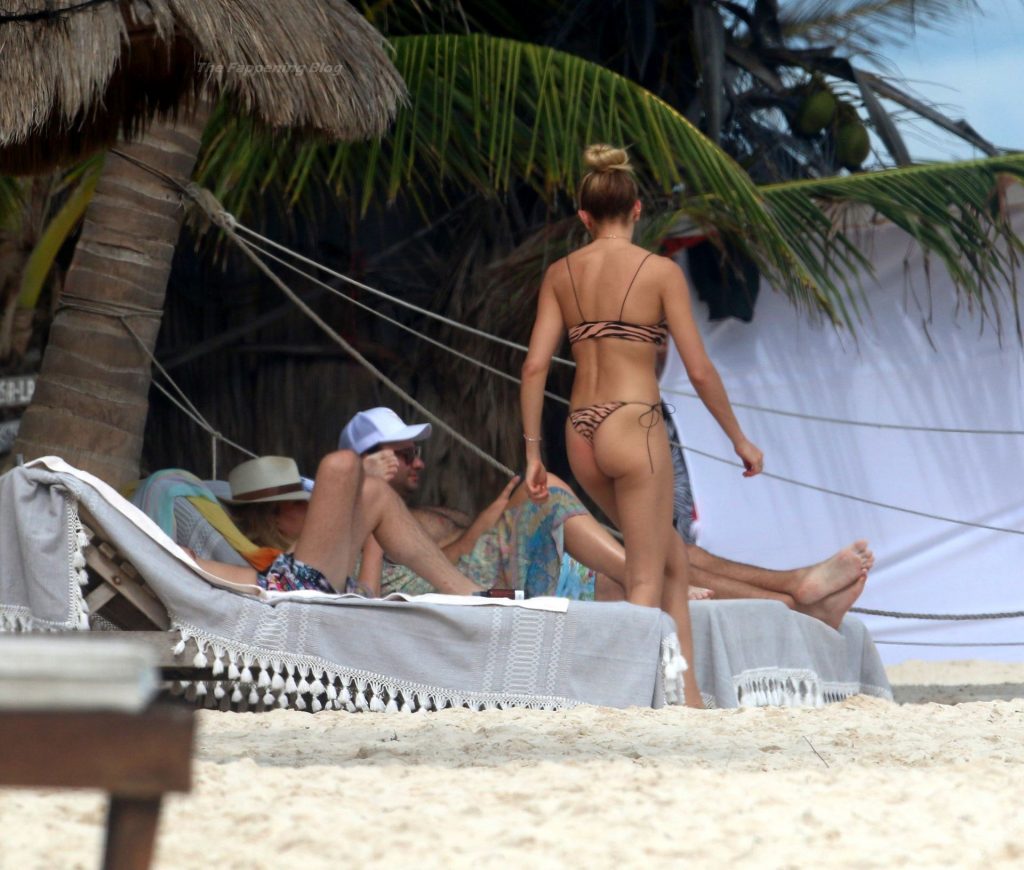 La impresionante modelo rubia se lanzó al océano con amigos el jueves durante su descanso en Tulum, luciendo su figura impecable con un diminuto bikini tanga de estampado animal. La influencer de bienestar, bronceada y tonificada de 28 años, se separó de su novio de mucho tiempo, el magnate de la televisión Seacrest, el verano pasado tras un romance intermitente que duró seis años.