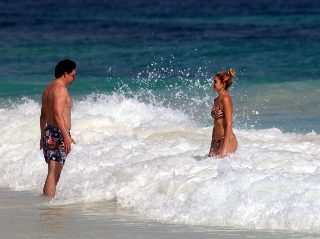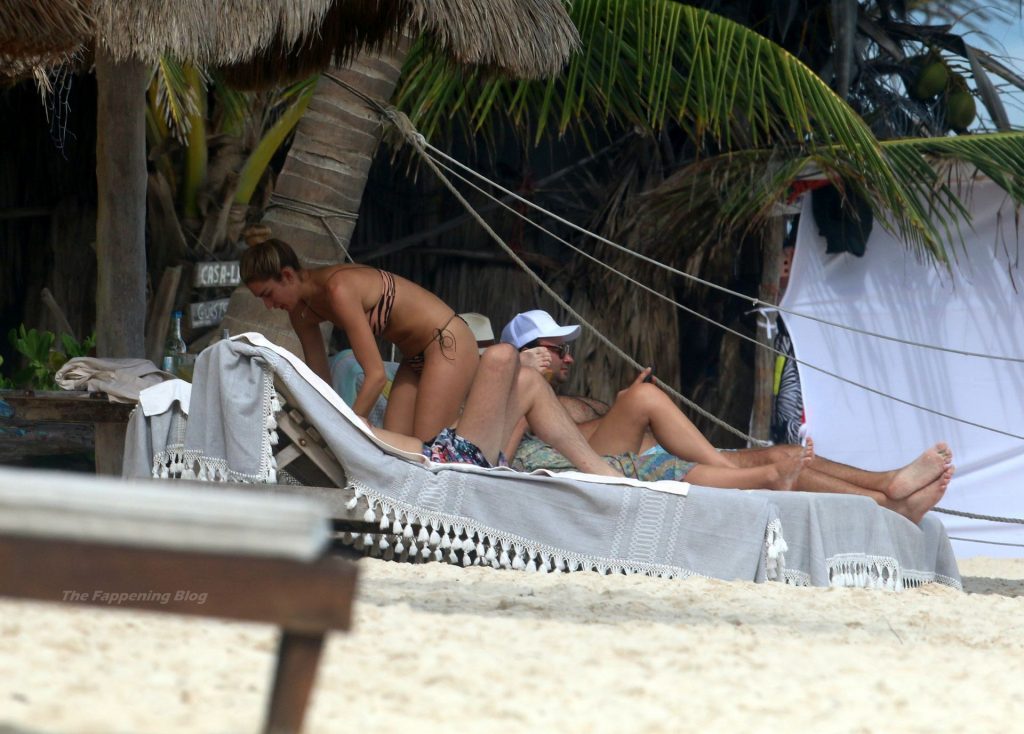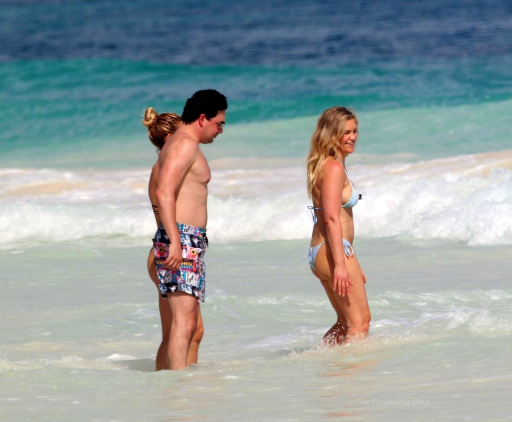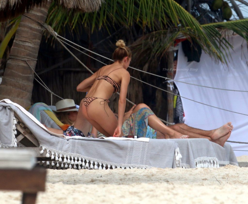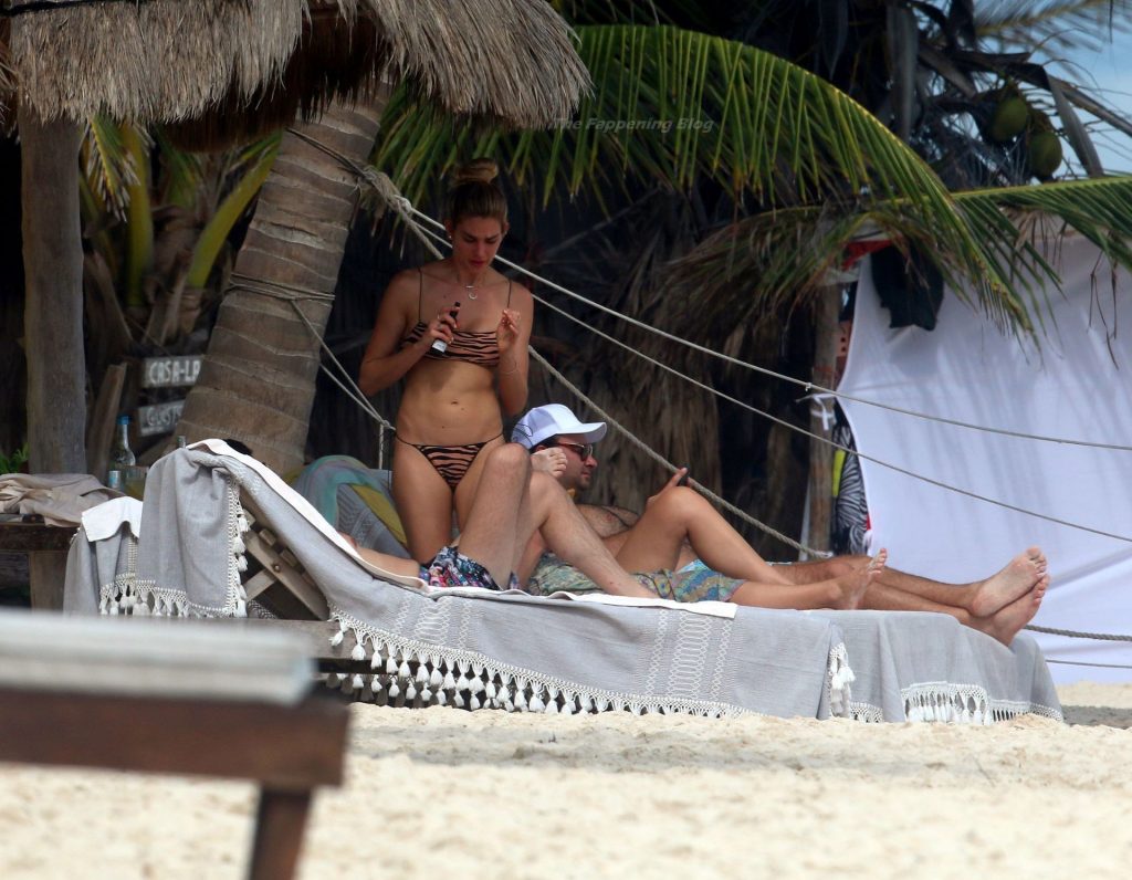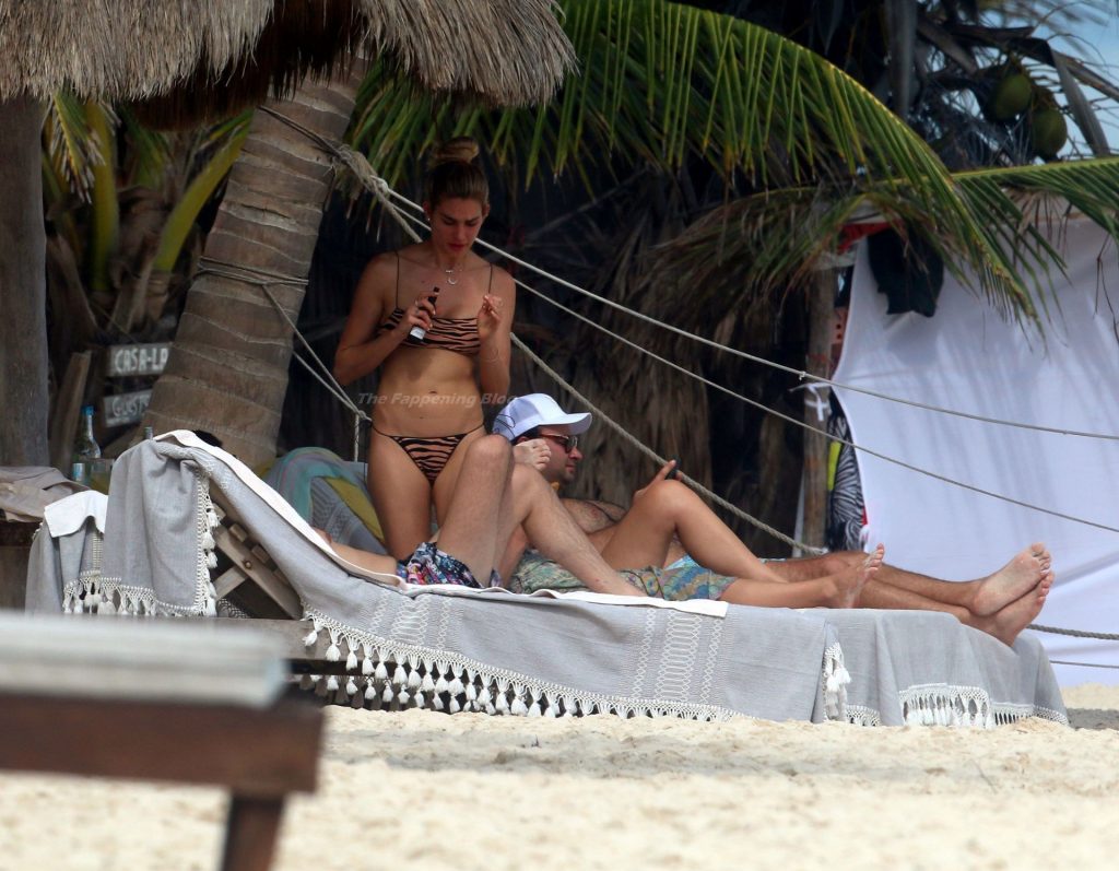 La impresionante modelo rubia se lanzó al océano con amigos el jueves durante su descanso en Tulum, luciendo su figura impecable con un diminuto bikini tanga de estampado animal. La influencer de bienestar, bronceada y tonificada de 28 años, se separó de su novio de mucho tiempo, el magnate de la televisión Seacrest, el verano pasado tras un romance intermitente que duró seis años.