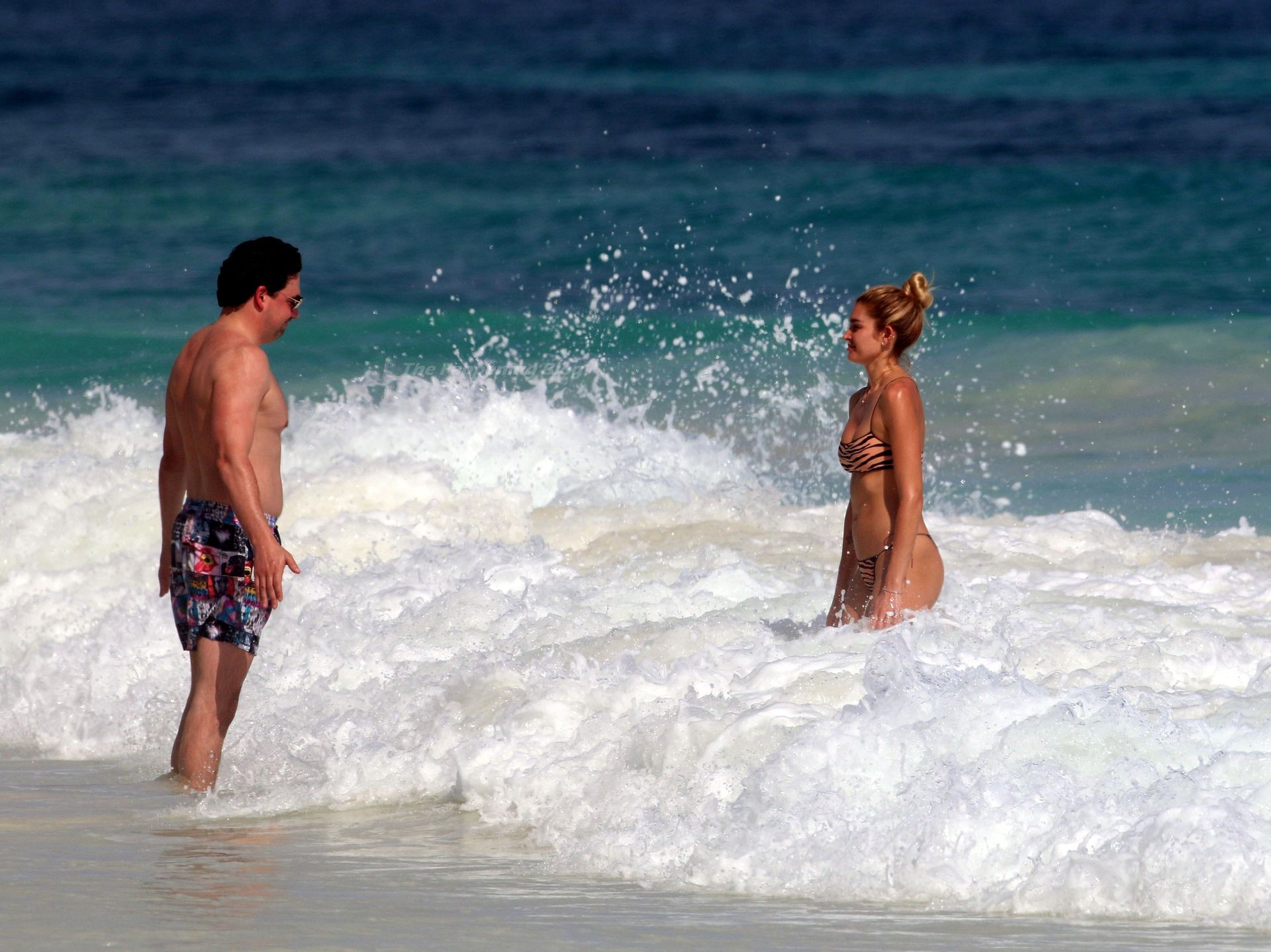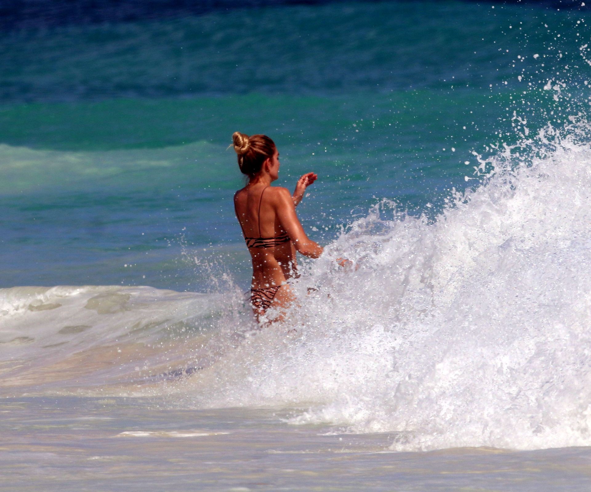 La impresionante modelo rubia se lanzó al océano con amigos el jueves durante su descanso en Tulum, luciendo su figura impecable con un diminuto bikini tanga de estampado animal. La influencer de bienestar, bronceada y tonificada de 28 años, se separó de su novio de mucho tiempo, el magnate de la televisión Seacrest, el verano pasado tras un romance intermitente que duró seis años.