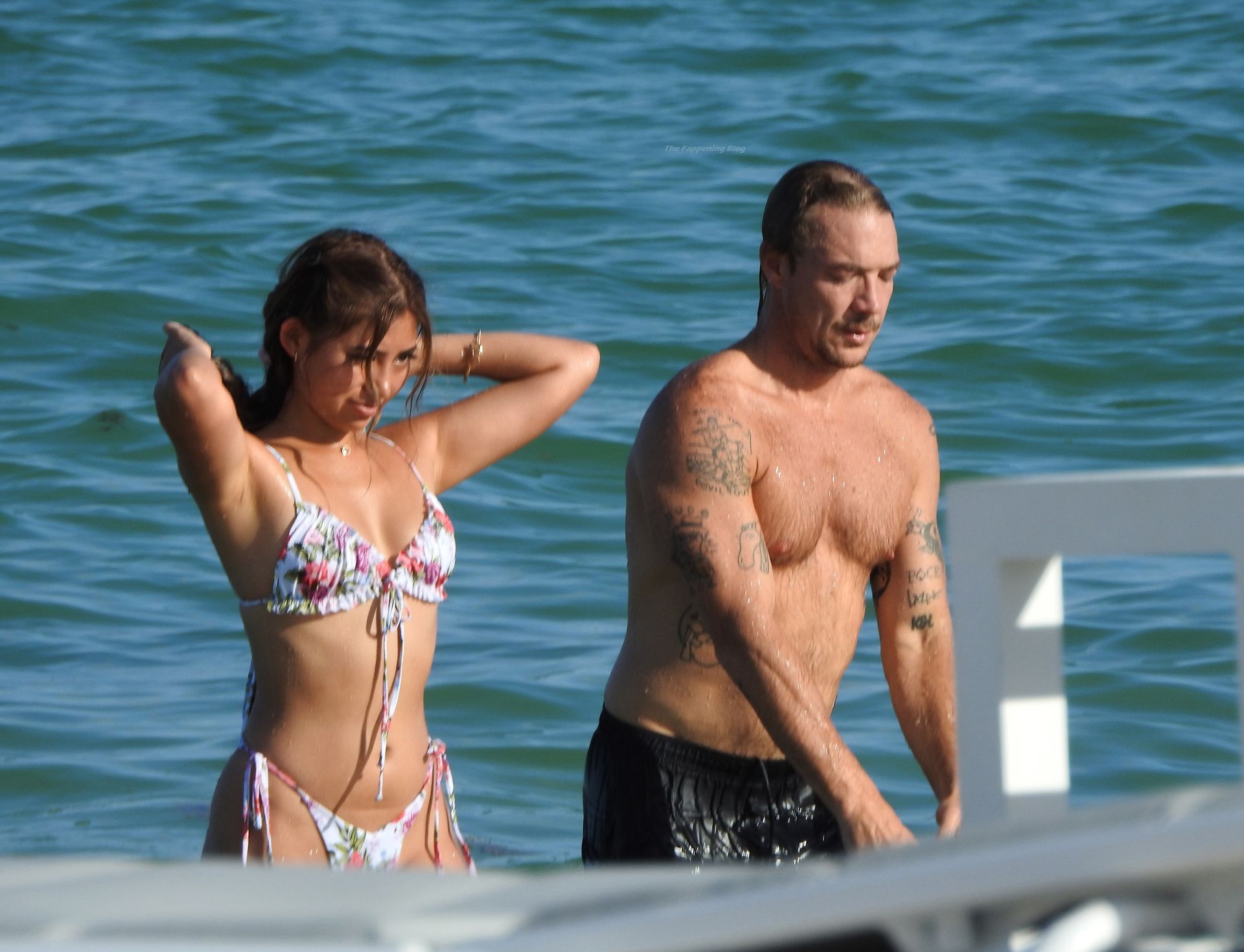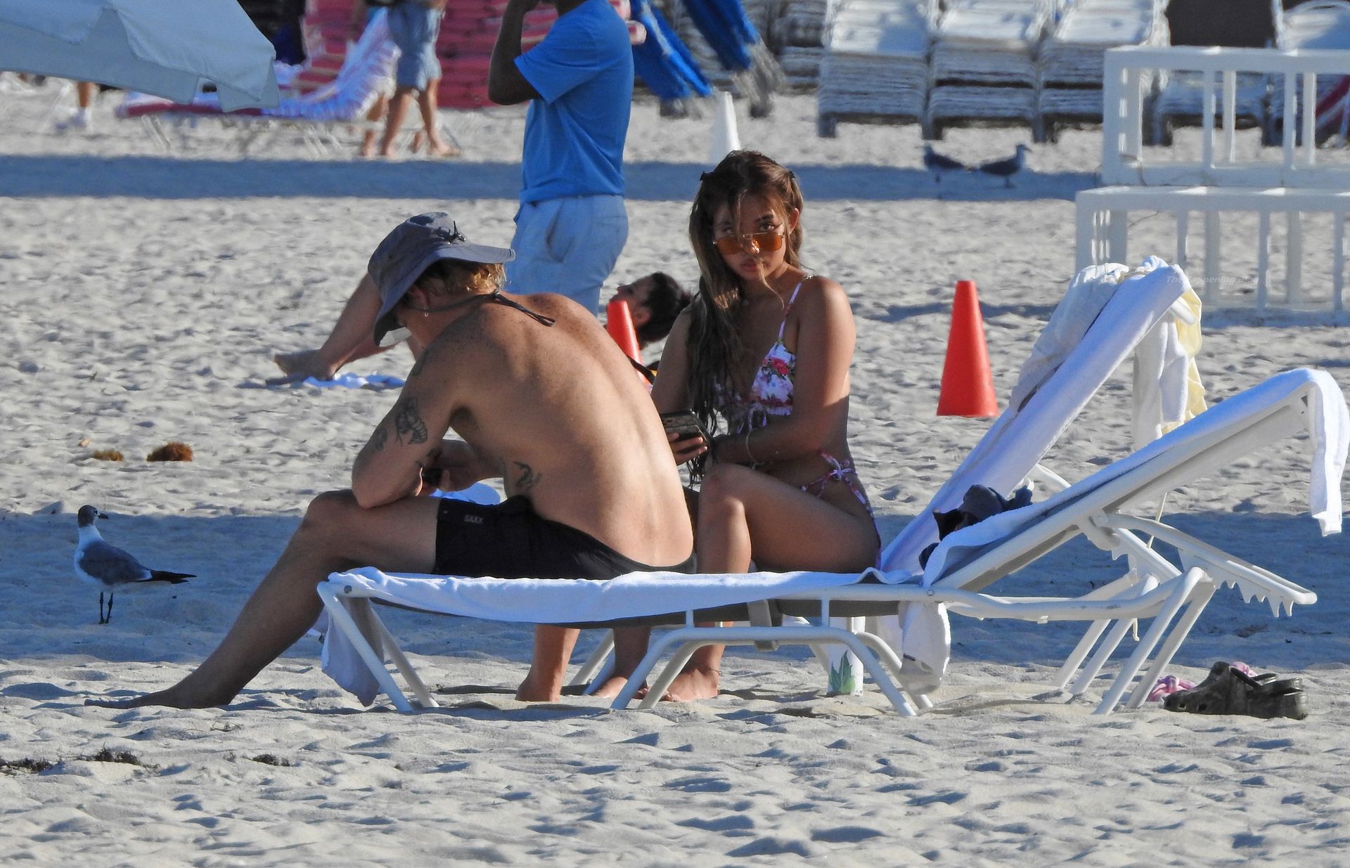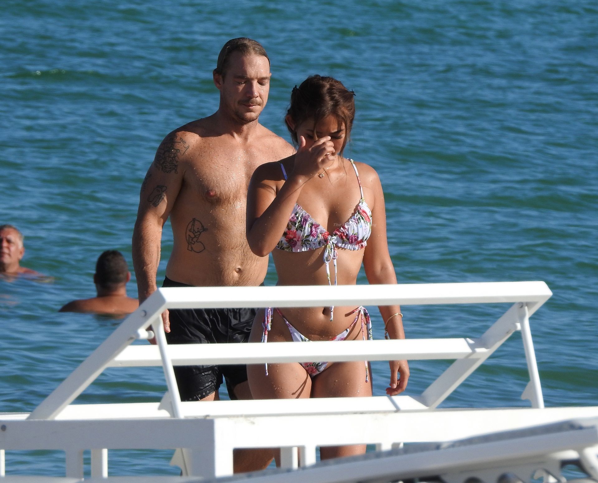 El DJ, músico, modelo y celebridad estadounidense Diplo, cuyo nombre real es Thomas Wesley Pentz, fue fotografiado mostrando su increíble cuerpo mientras pasaba una tarde sin camisa con una misteriosa y sexy mujer en bikini en South Beach, Miami, el 30/08/2021.
