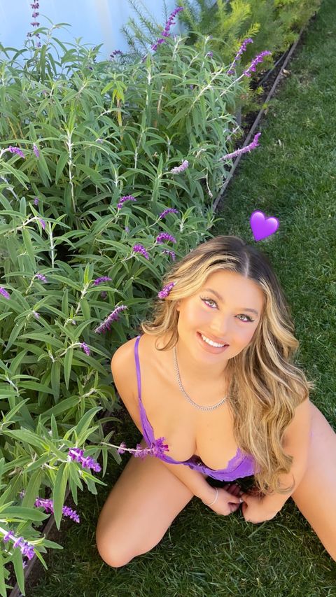La modelo Sofia Jamora muestra sus atributos con lencería morada de una nueva colección de I AM GIA (2021).