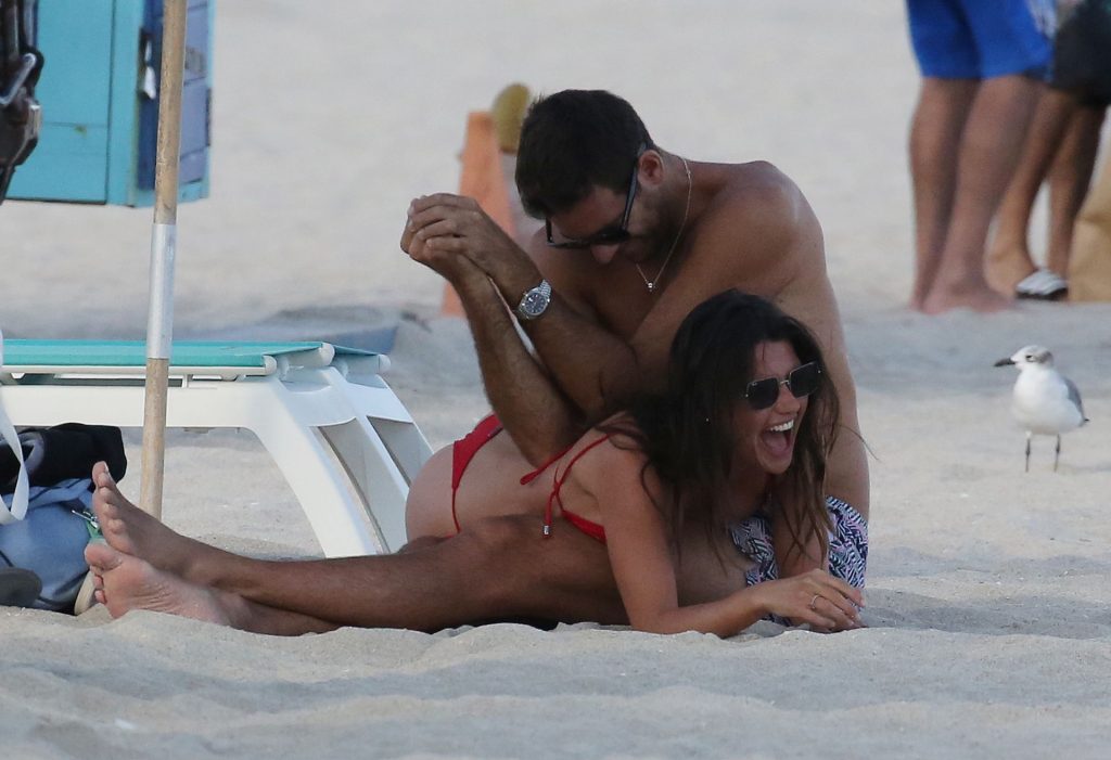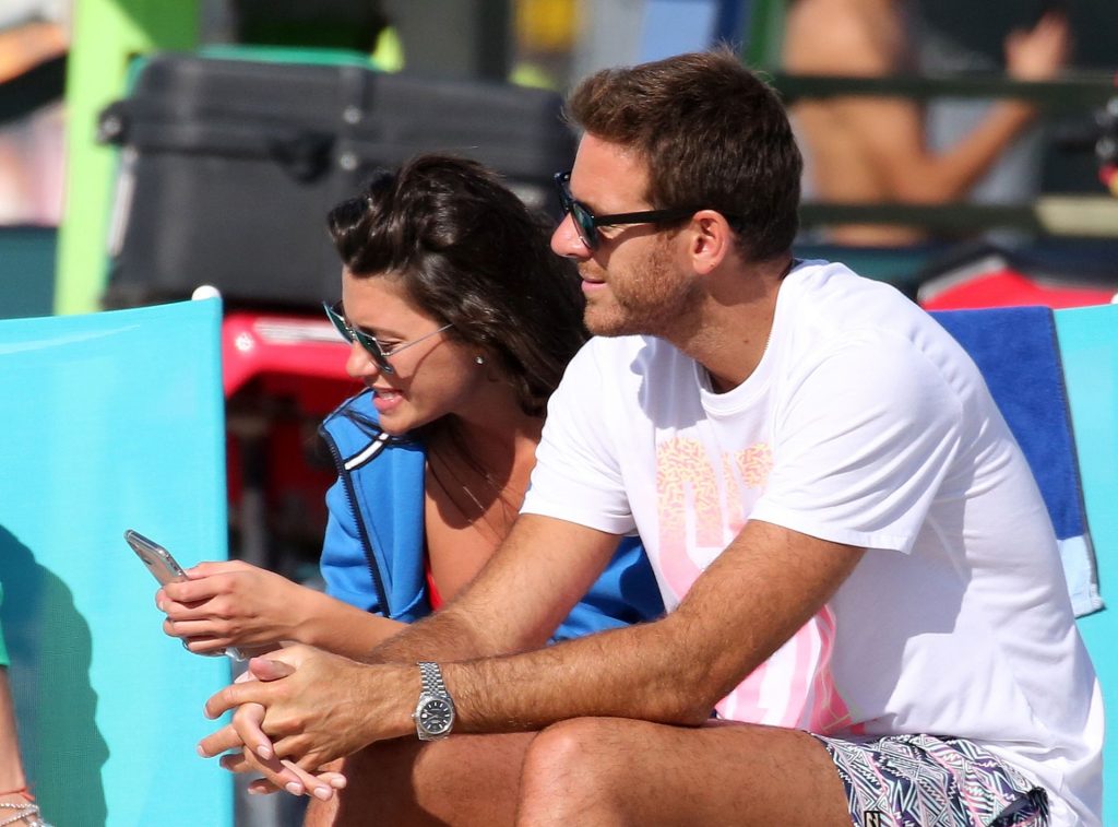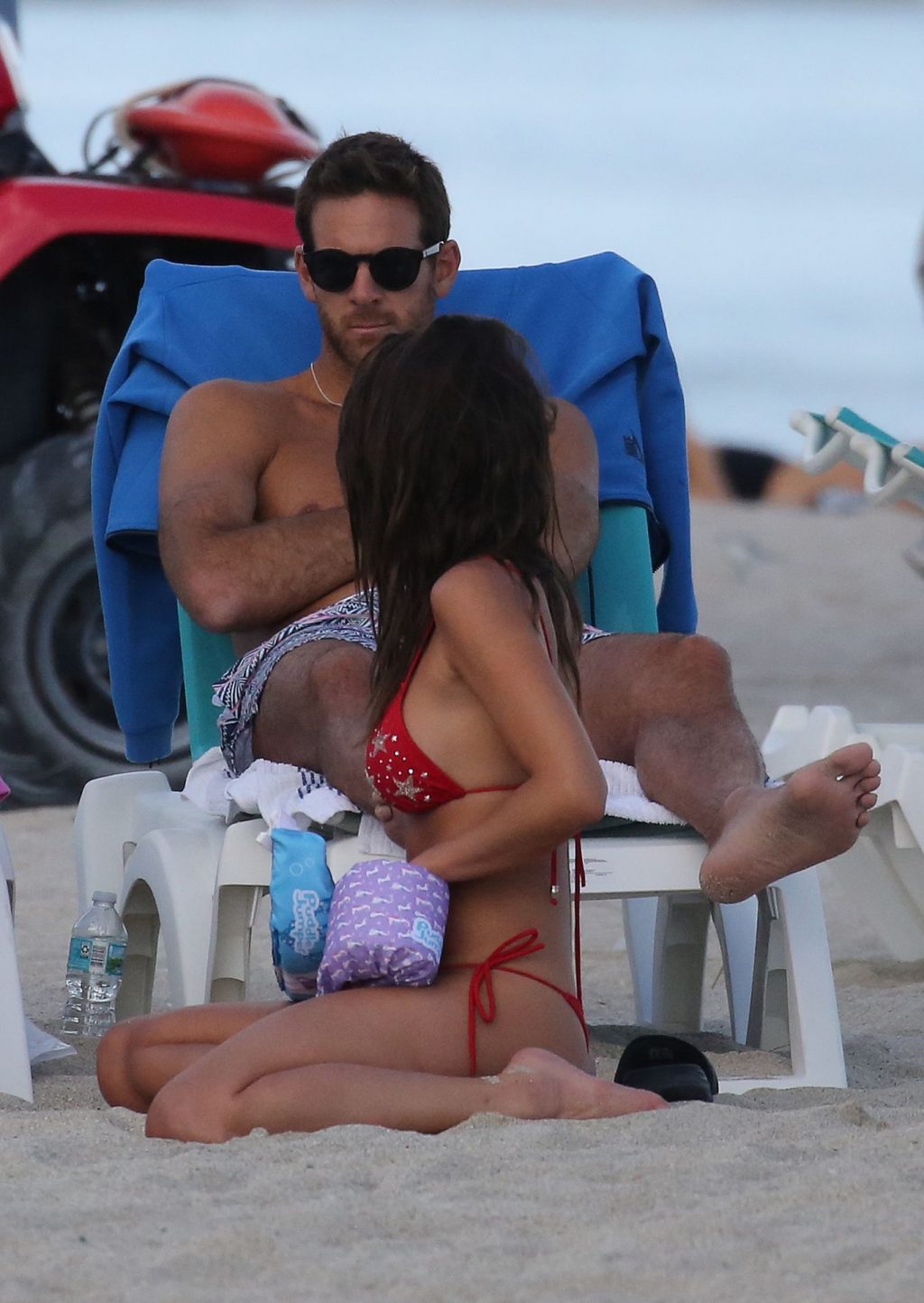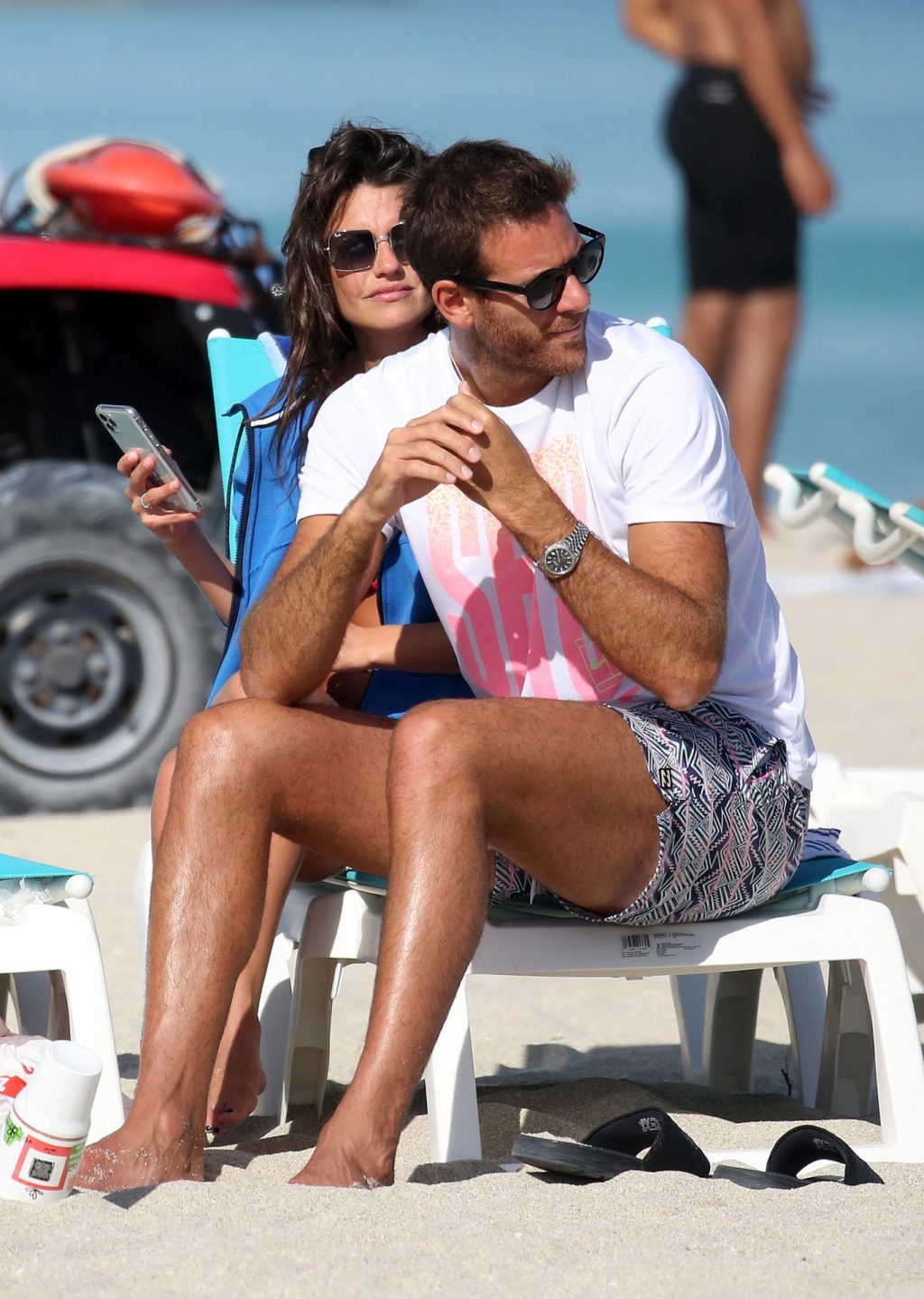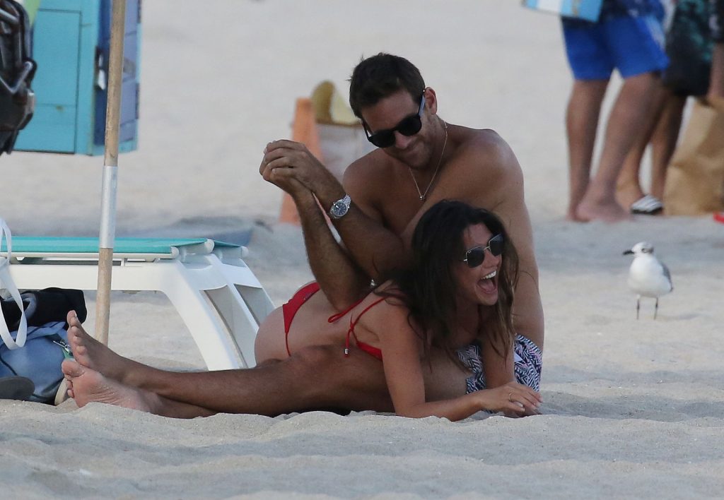La tenista argentina Juan Martin del Potro muestra mucho PDA con su novia Sofia Jimenez, que lleva bikini, en la playa de Miami, 12/05/2019.
