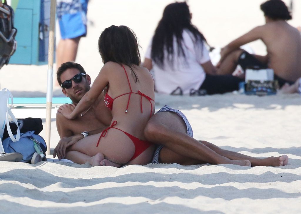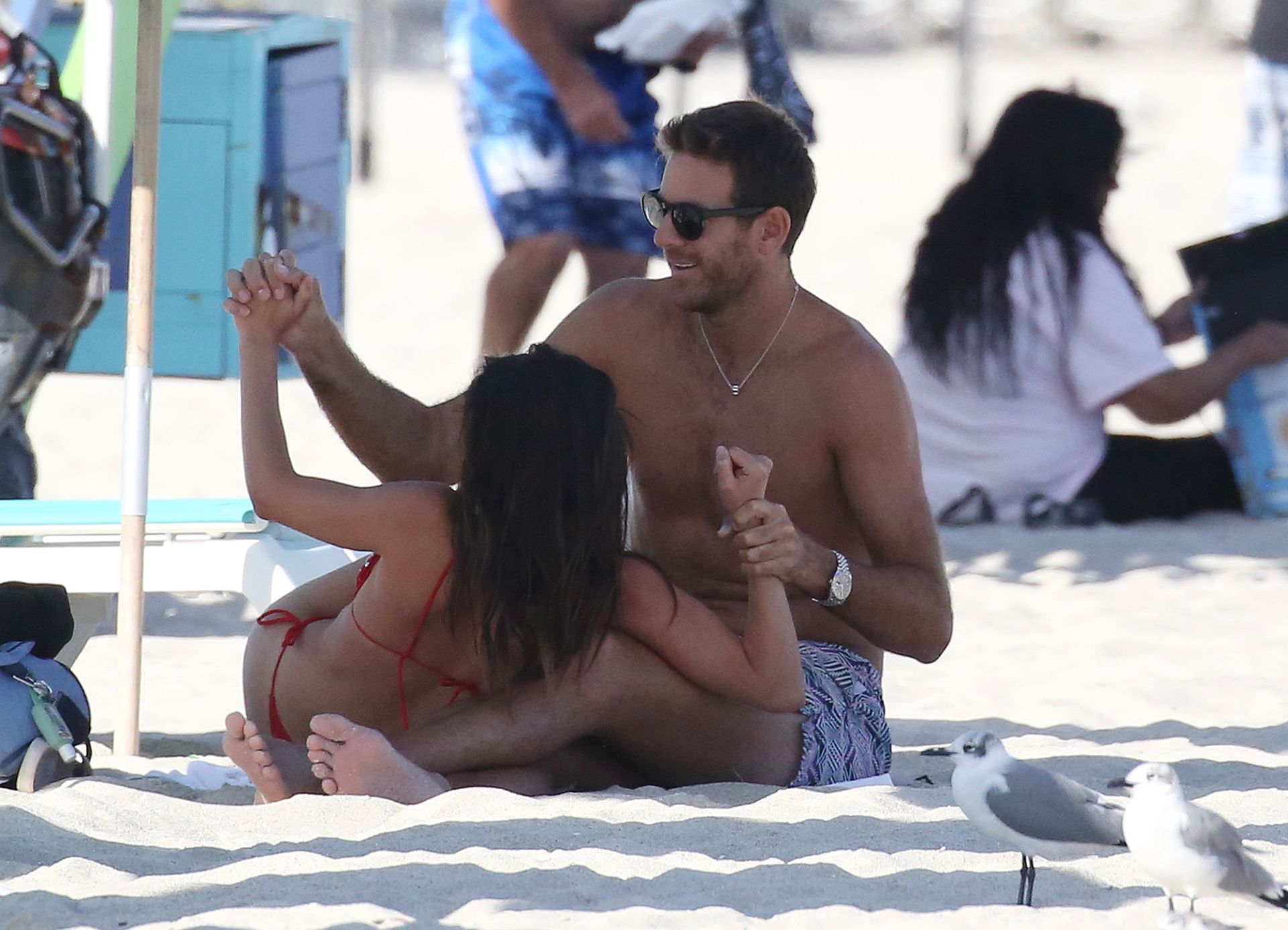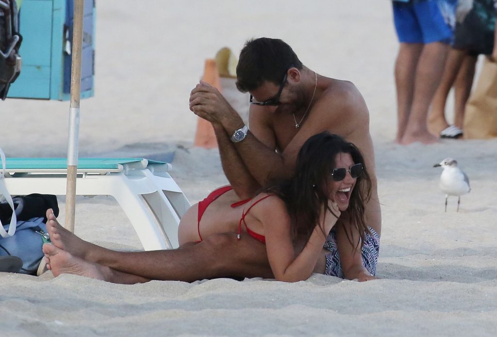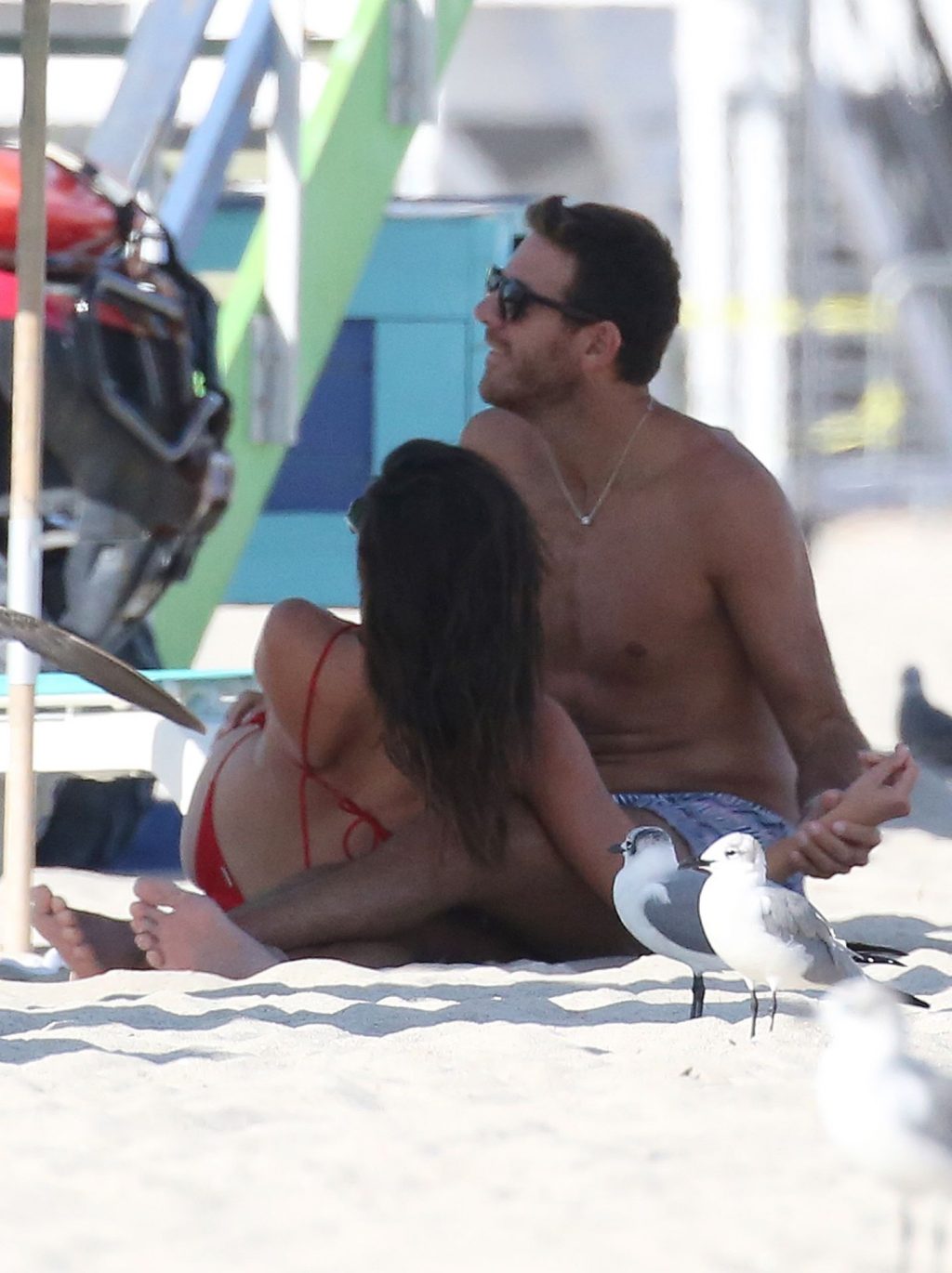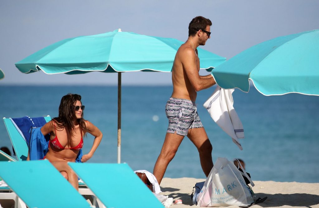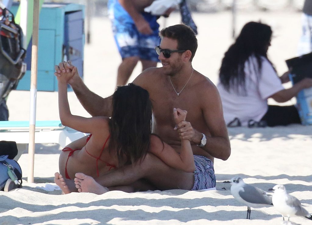 La tenista argentina Juan Martin del Potro muestra mucho PDA con su novia Sofia Jimenez, que lleva bikini, en la playa de Miami, 12/05/2019.