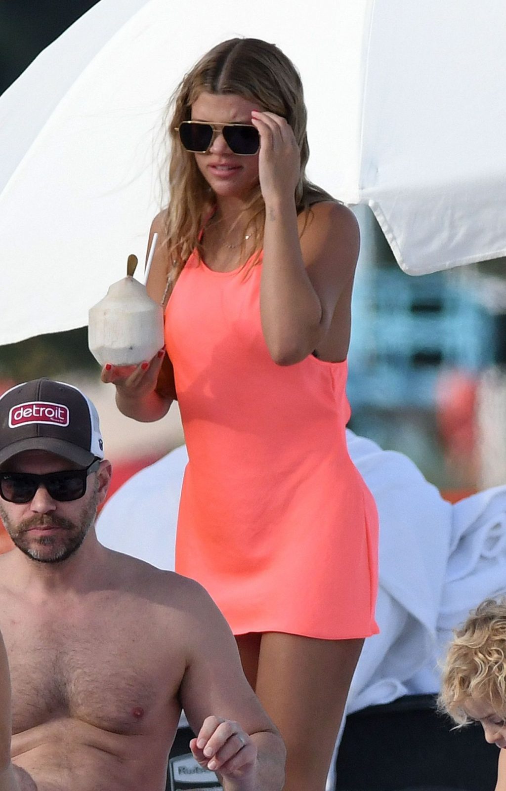 Sofia Richie fue vista usando un vestido neón brillante sobre su bikini mientras disfruta del sol en una playa de Miami con Scott Disick, 26/11/2019. La joven estrella pasó el fin de semana descansando con amigos. Los paparazzi lograron tomar varias fotos exitosas de la rubia.