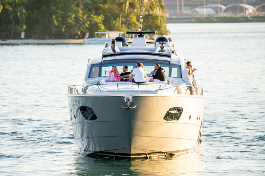 Sofia Richie y Scott Disick se acurrucan en un crucero de lujo en Miami, donde Sofia Richie lleva dos atuendos diferentes. Sofia Richie fue vista primero con una camiseta de manga larga rosa brillante con la frase “cuidado con los tiburones” escrita en la espalda, que forma parte de la colección de merchandising Groot de Dave Grutman. La rubia belleza luego se cambió a una blusa gris sin mangas y se puso su gorra blanca de béisbol. La pareja estaba en el yate de lujo con amigos, incluido Dave Grutman, a quien pertenece el barco.