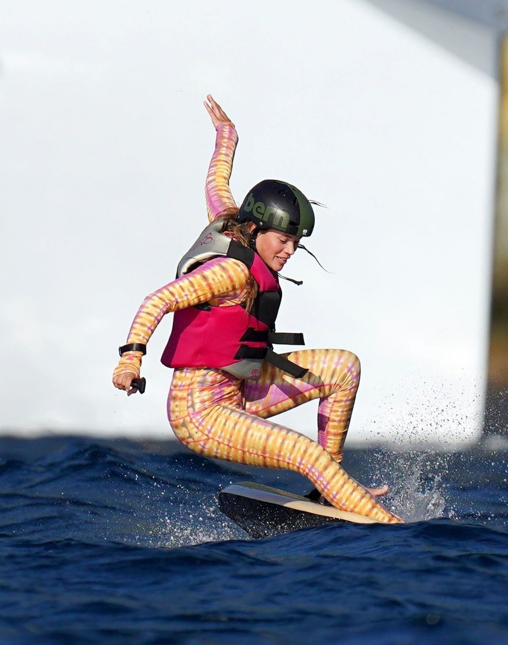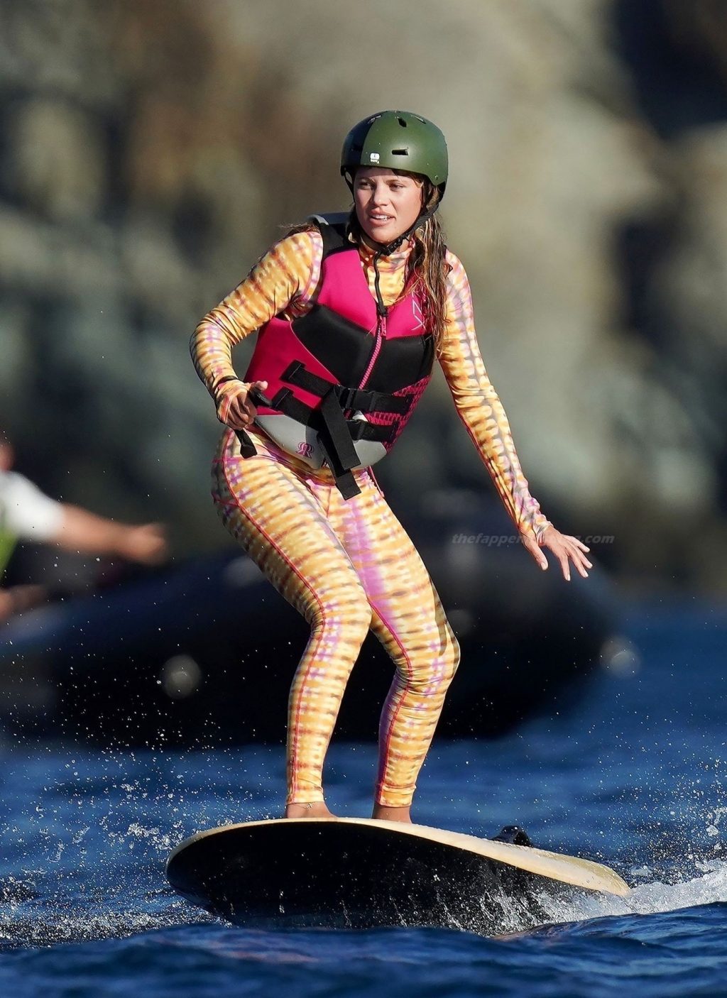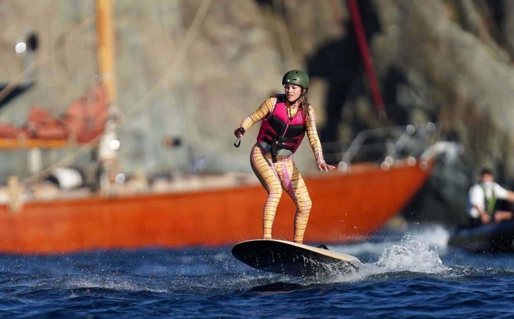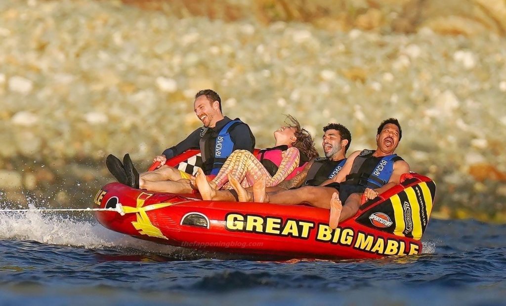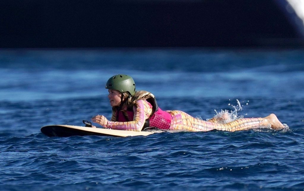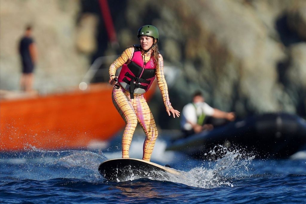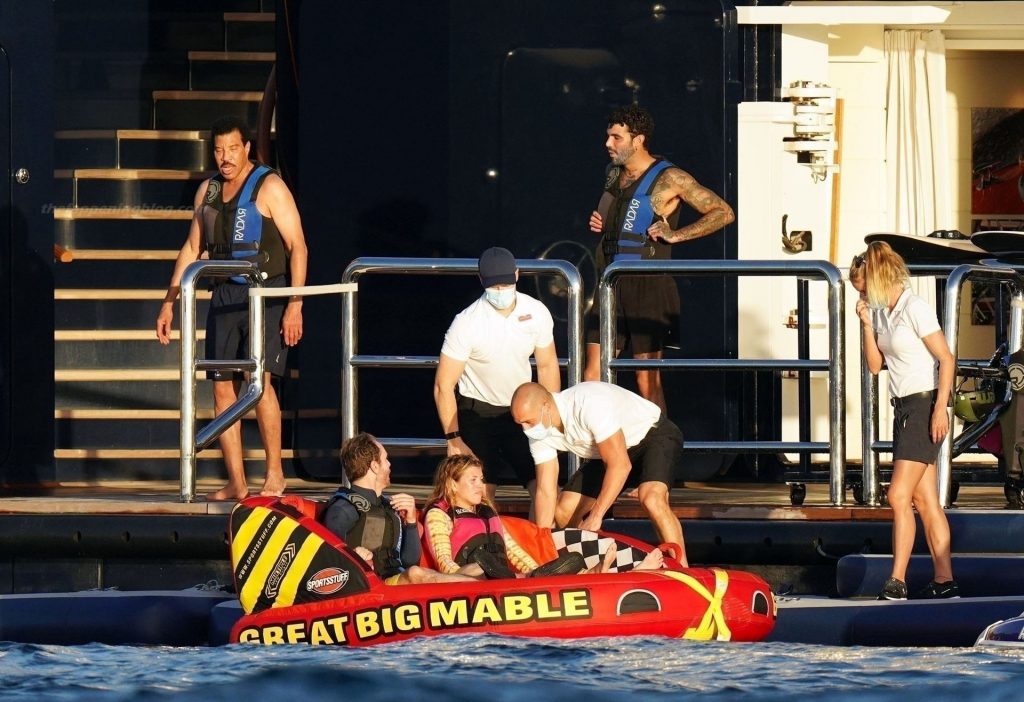 El legendario cantautor estadounidense de 71 años, Lionel, lucía impresionante mientras sonreía mostrando su bronceado físico bajo el intenso sol, mientras Sofia deslumbraba con un top de bikini blanco mientras se ponía su traje de neopreno.