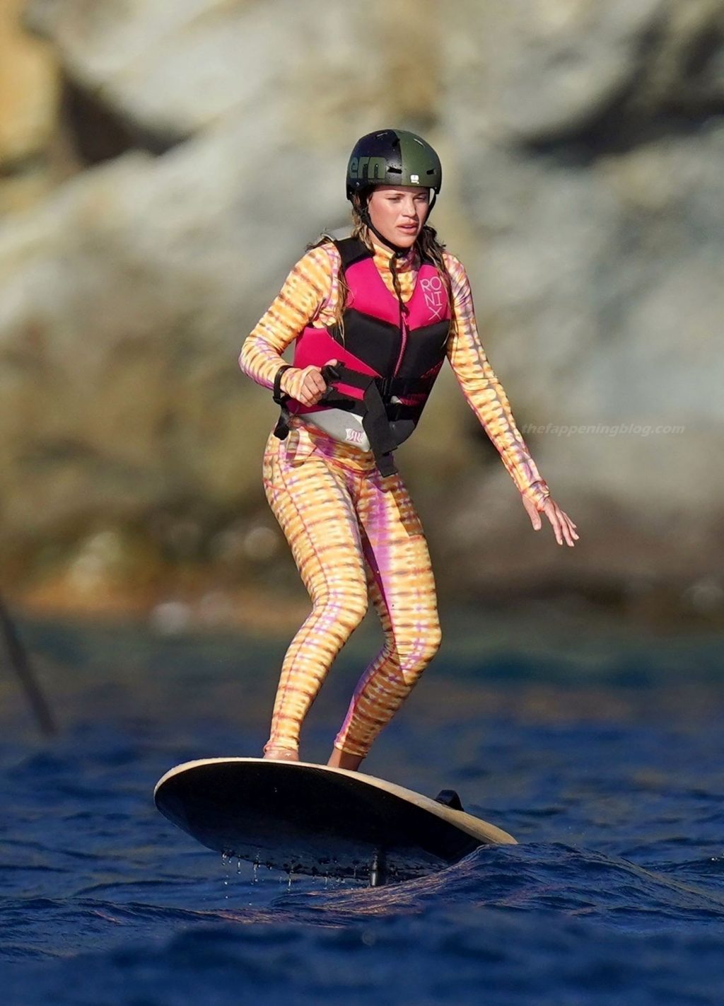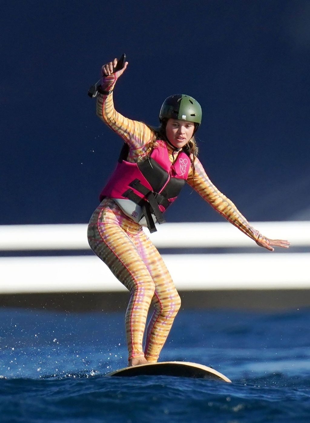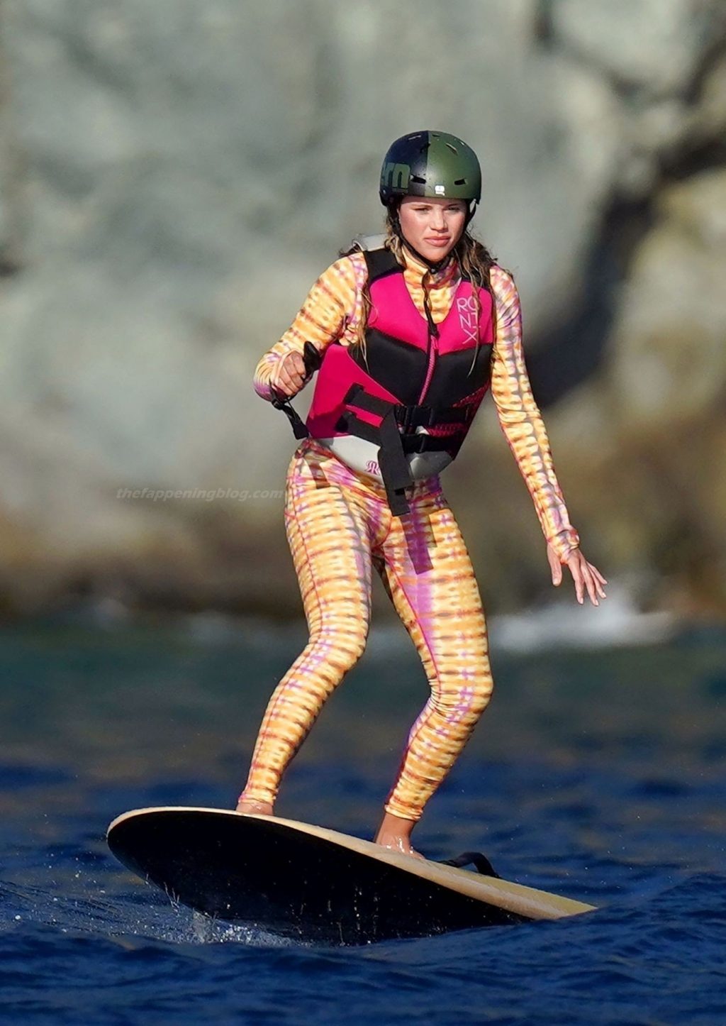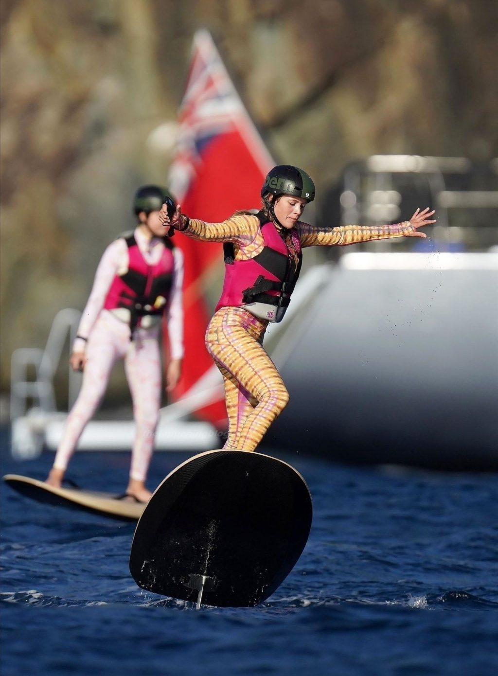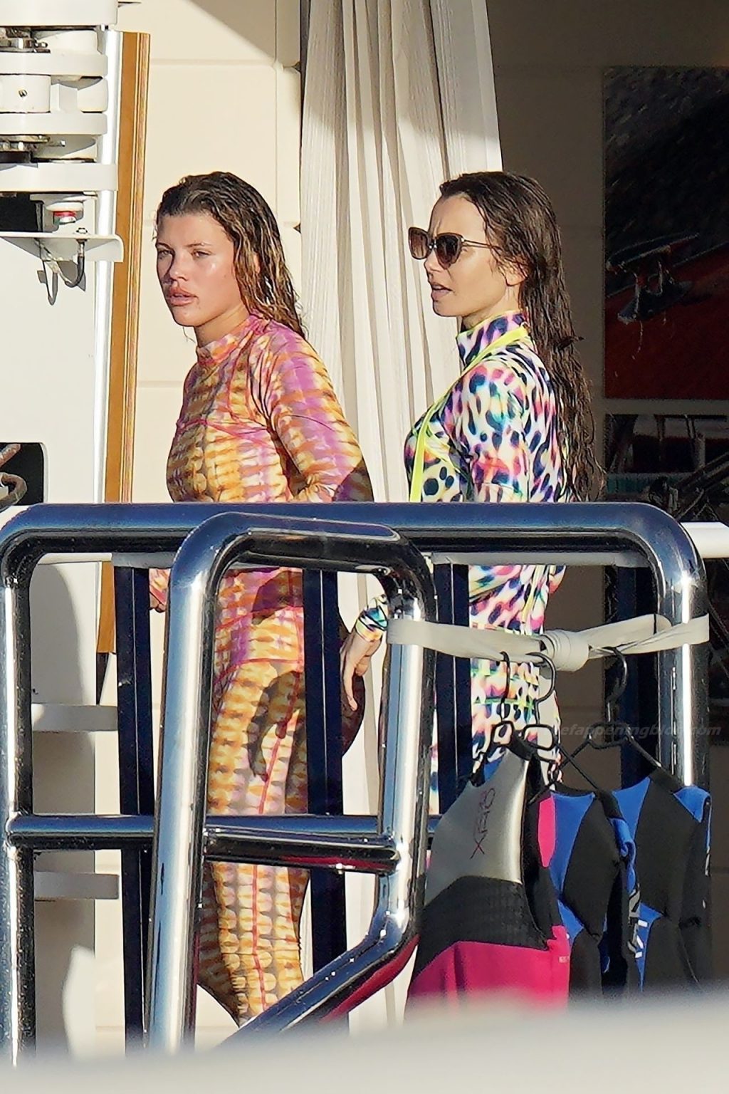 El legendario cantautor estadounidense de 71 años, Lionel, lucía impresionante mientras sonreía mostrando su bronceado físico bajo el intenso sol, mientras Sofia deslumbraba con un top de bikini blanco mientras se ponía su traje de neopreno.