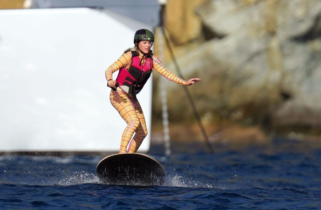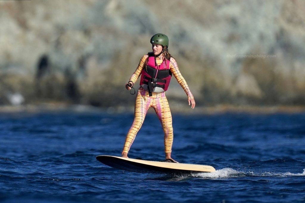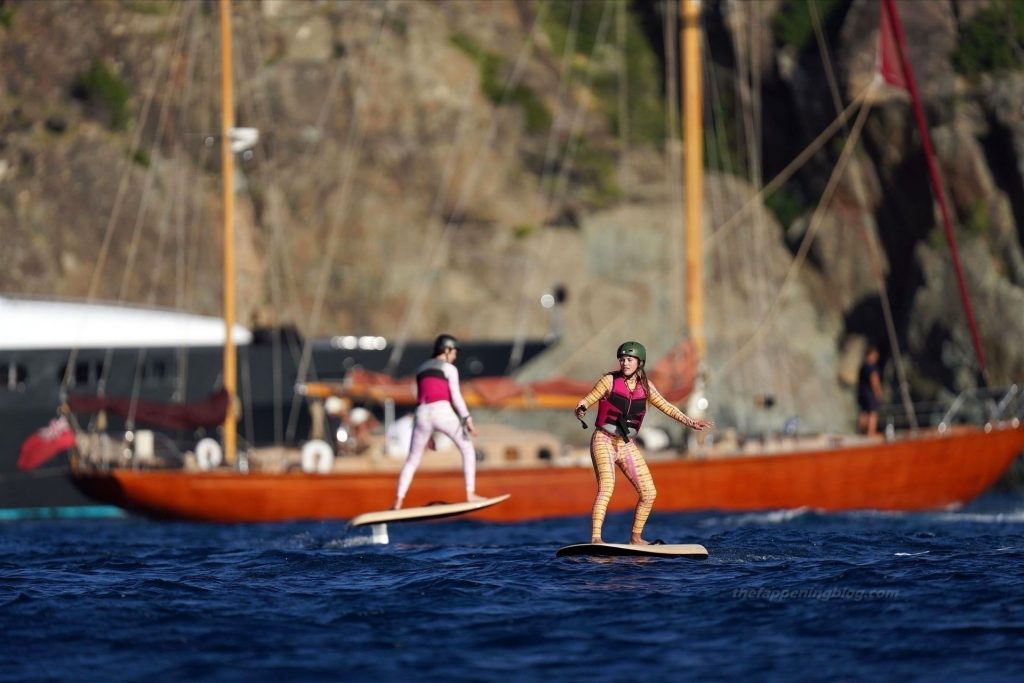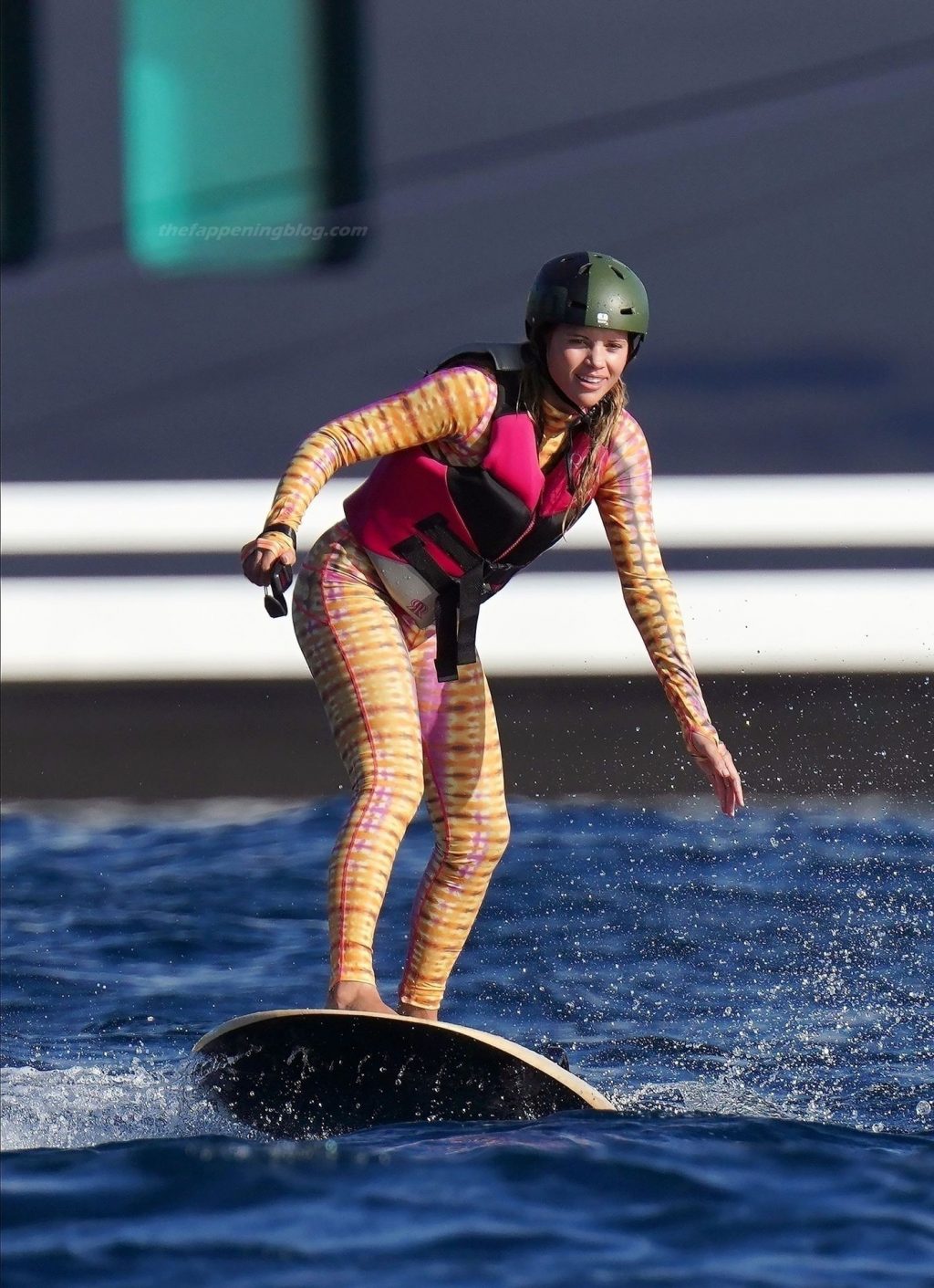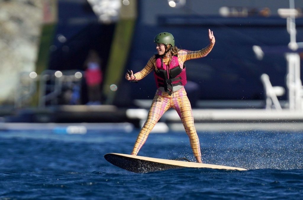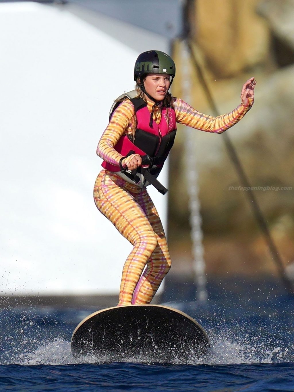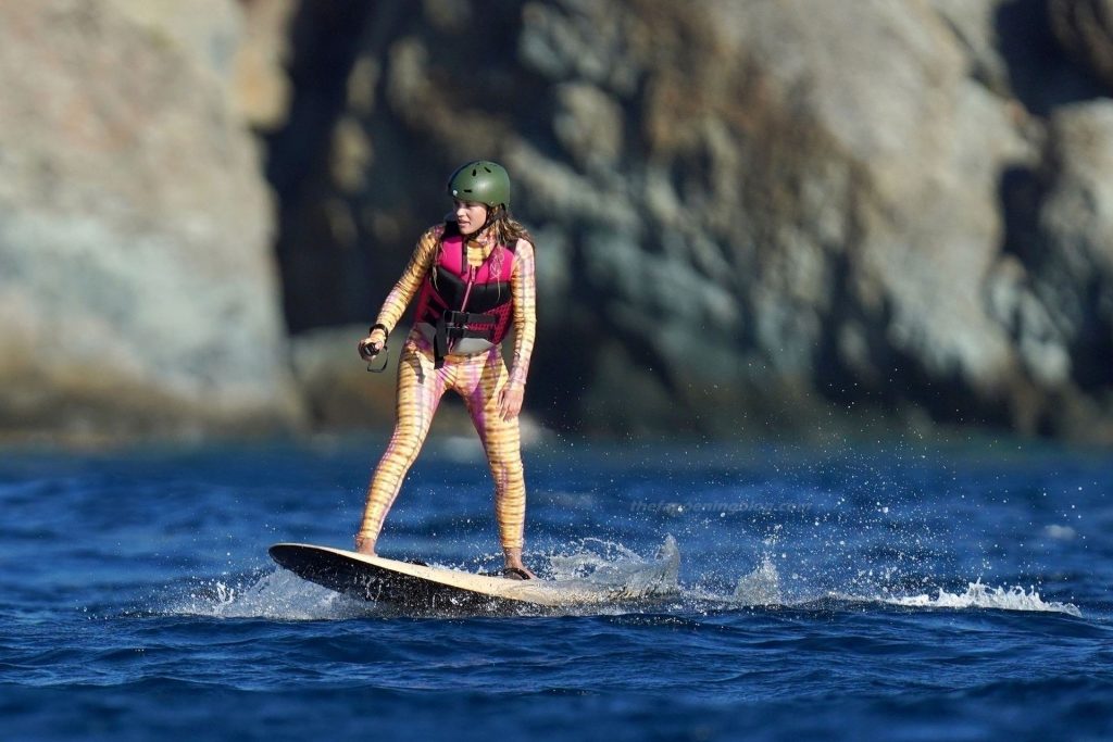 El legendario cantautor estadounidense de 71 años, Lionel, lucía impresionante mientras sonreía mostrando su bronceado físico bajo el intenso sol, mientras Sofia deslumbraba con un top de bikini blanco mientras se ponía su traje de neopreno.