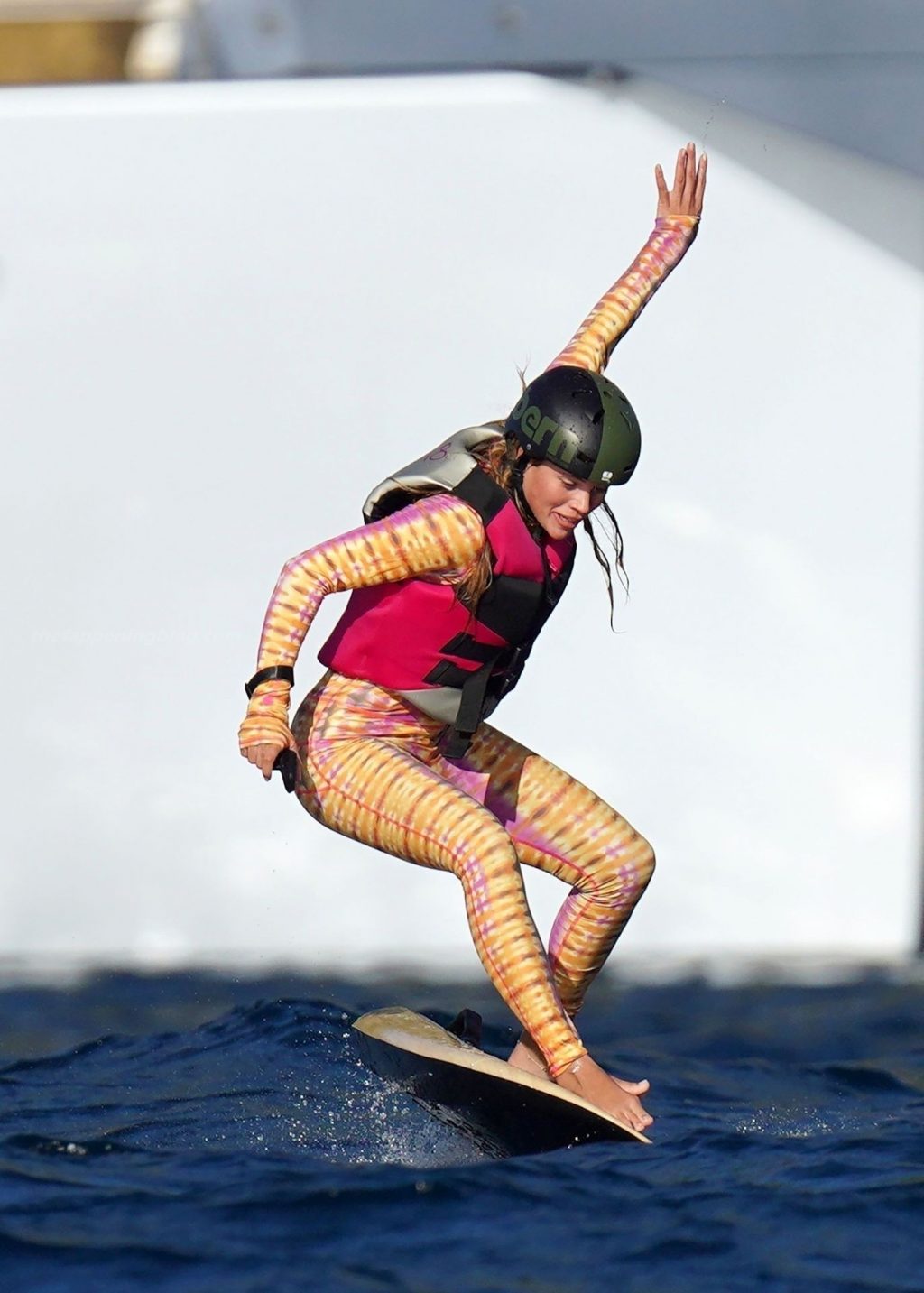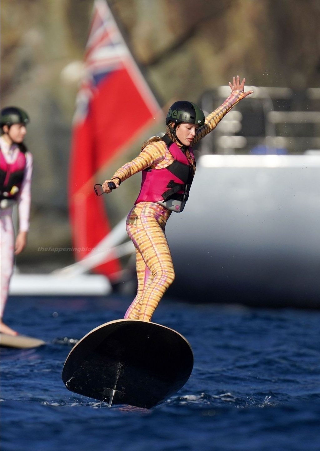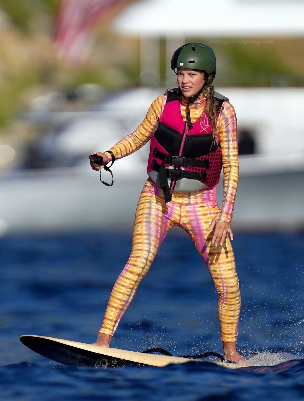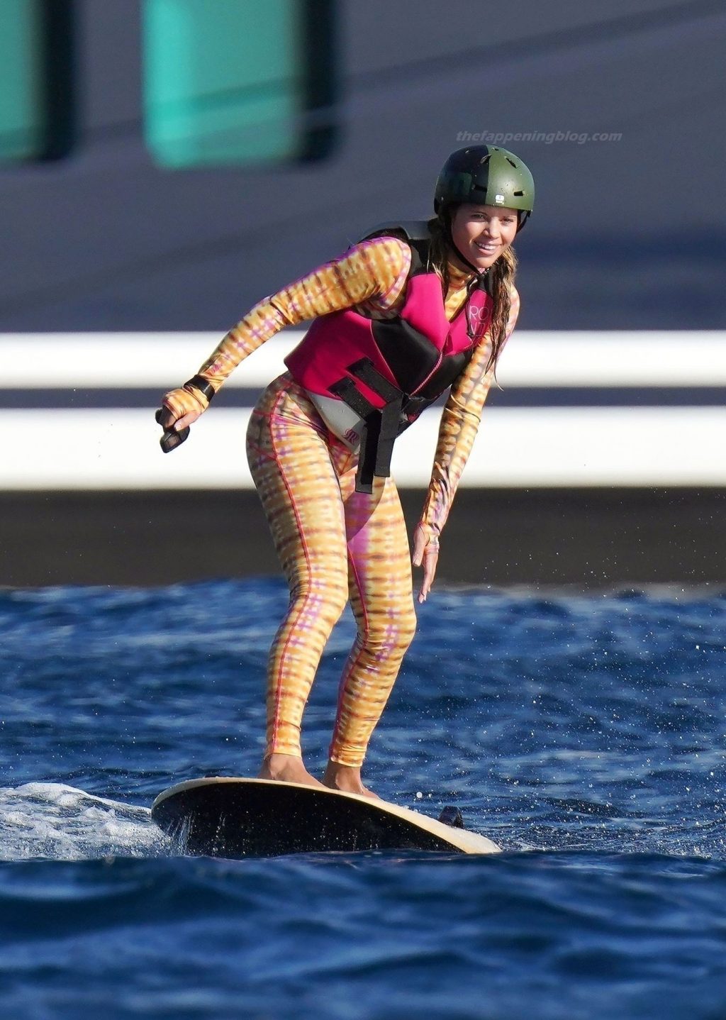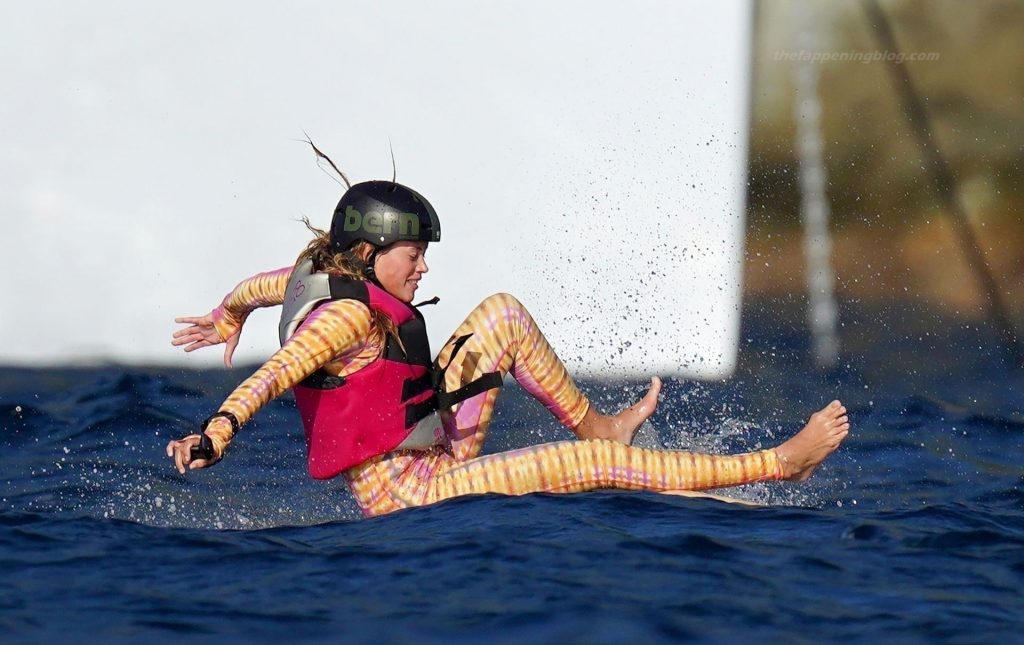 El legendario cantautor estadounidense de 71 años, Lionel, lucía impresionante mientras sonreía mostrando su bronceado físico bajo el intenso sol, mientras Sofia deslumbraba con un top de bikini blanco mientras se ponía su traje de neopreno.