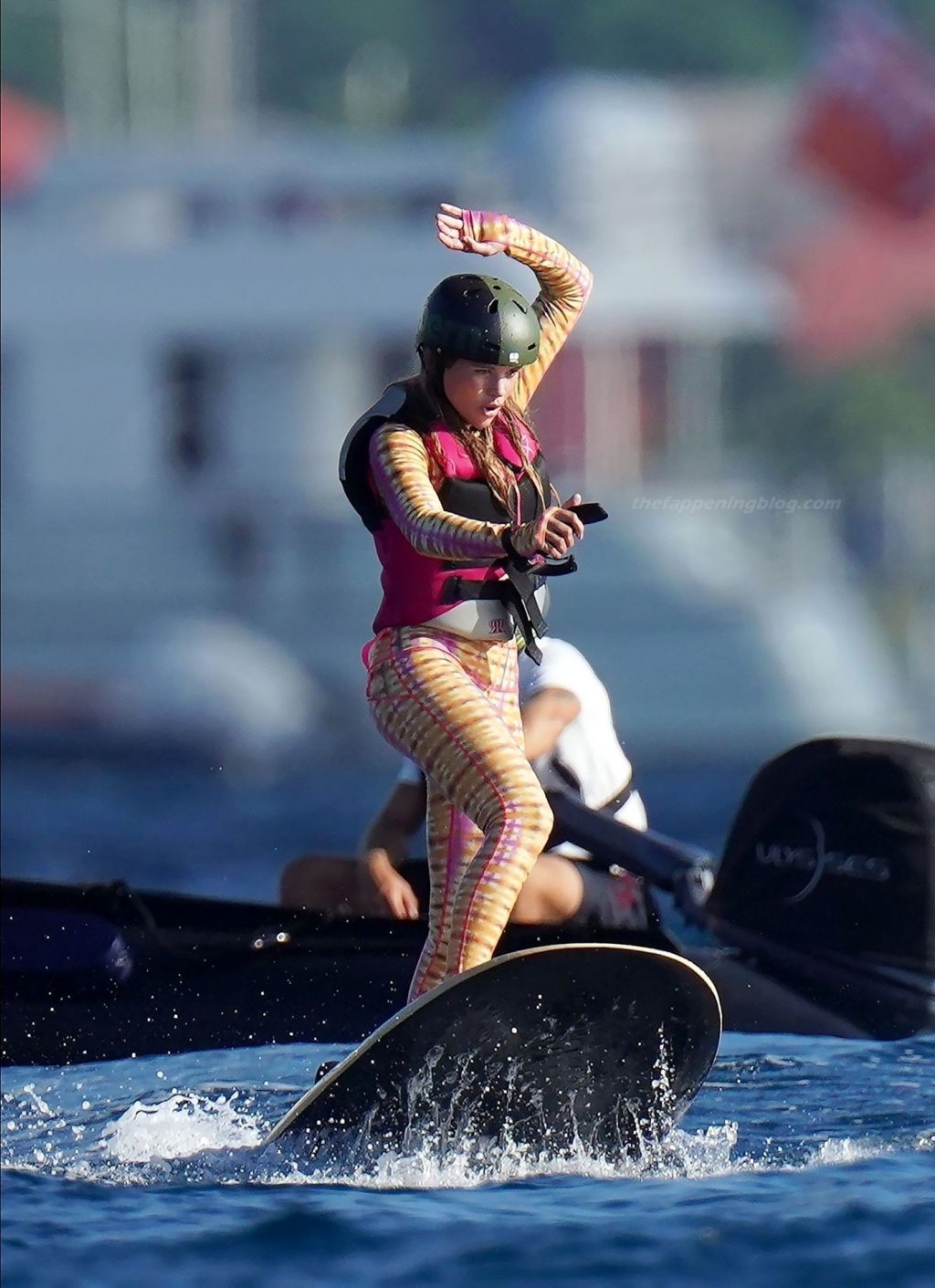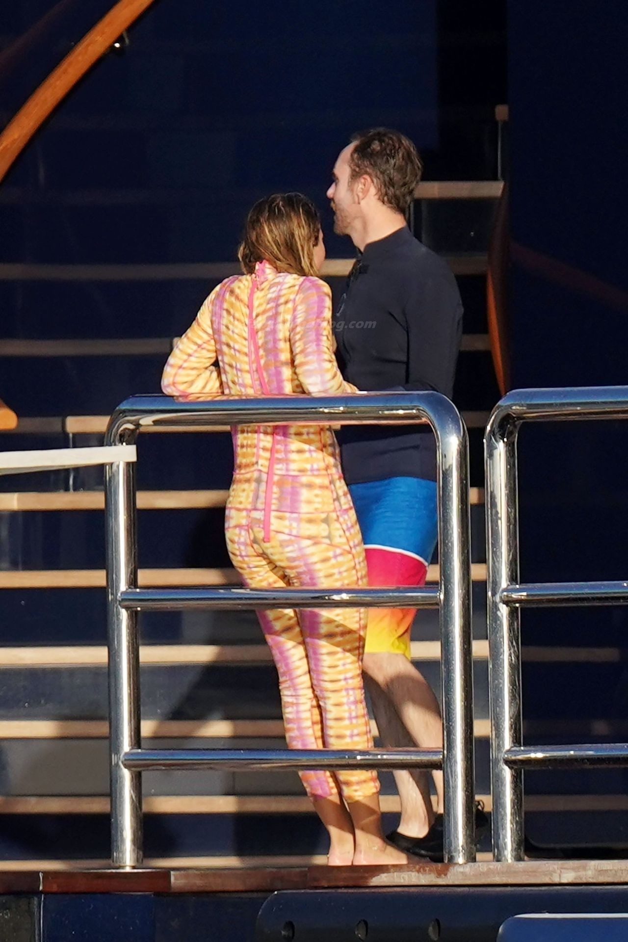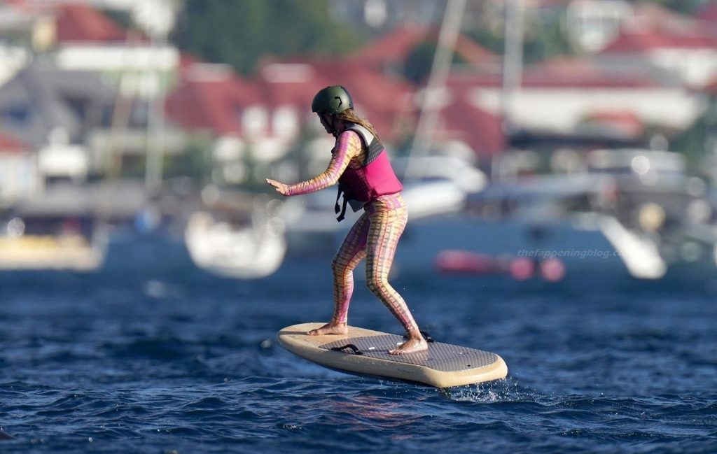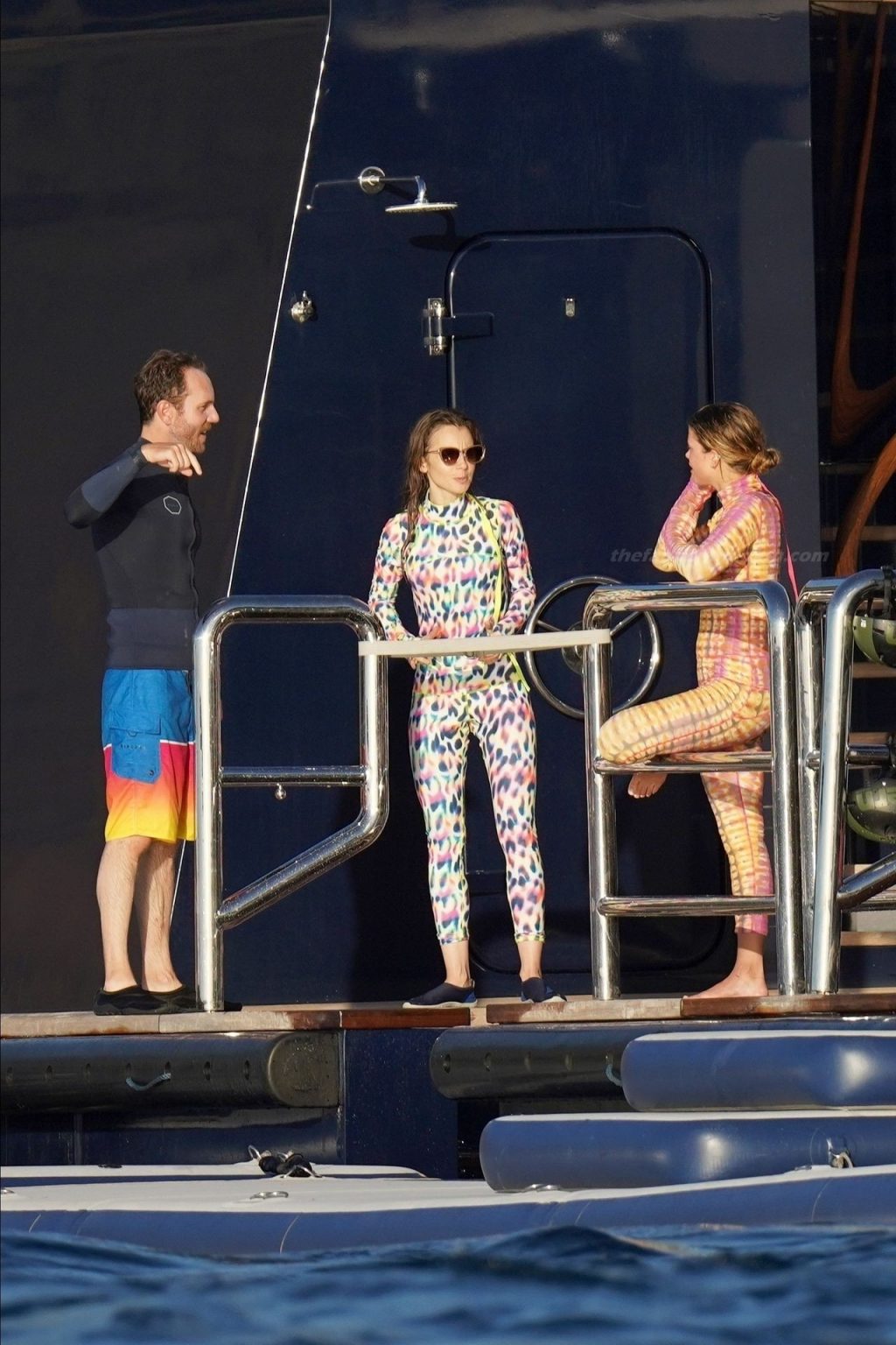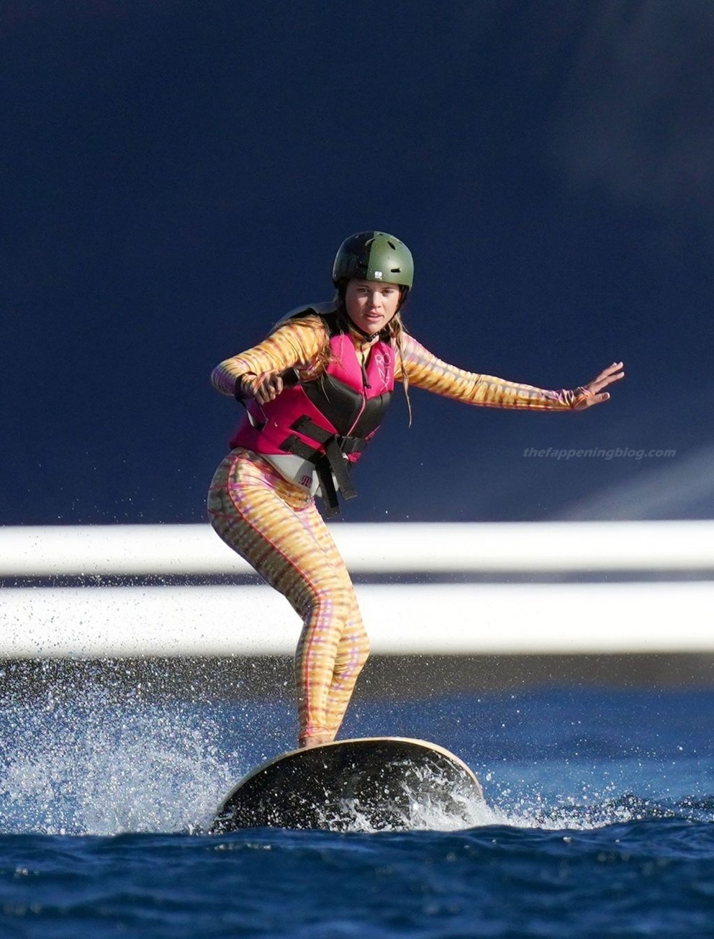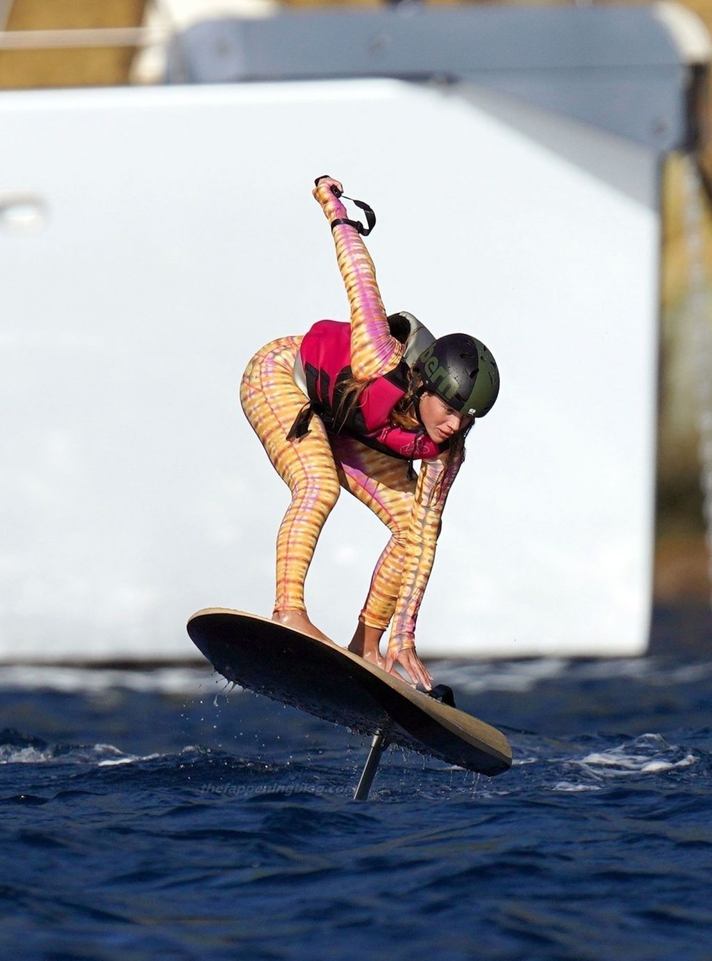 El legendario cantautor estadounidense de 71 años, Lionel, lucía impresionante mientras sonreía mostrando su bronceado físico bajo el intenso sol, mientras Sofia deslumbraba con un top de bikini blanco mientras se ponía su traje de neopreno.