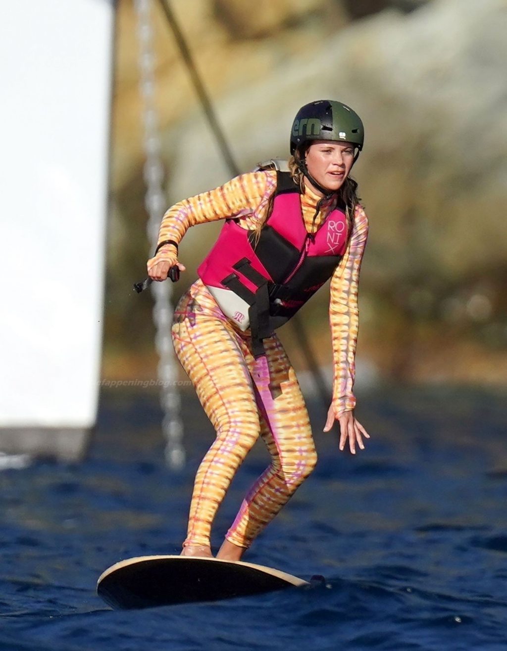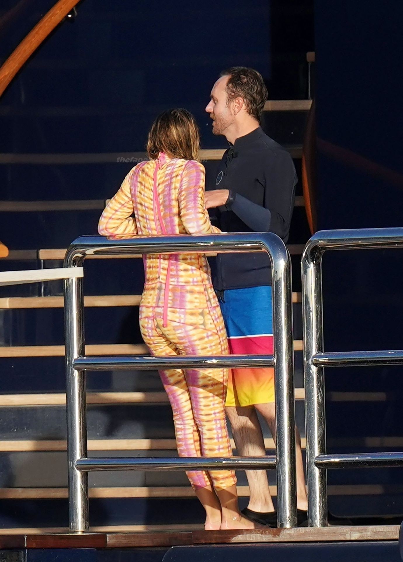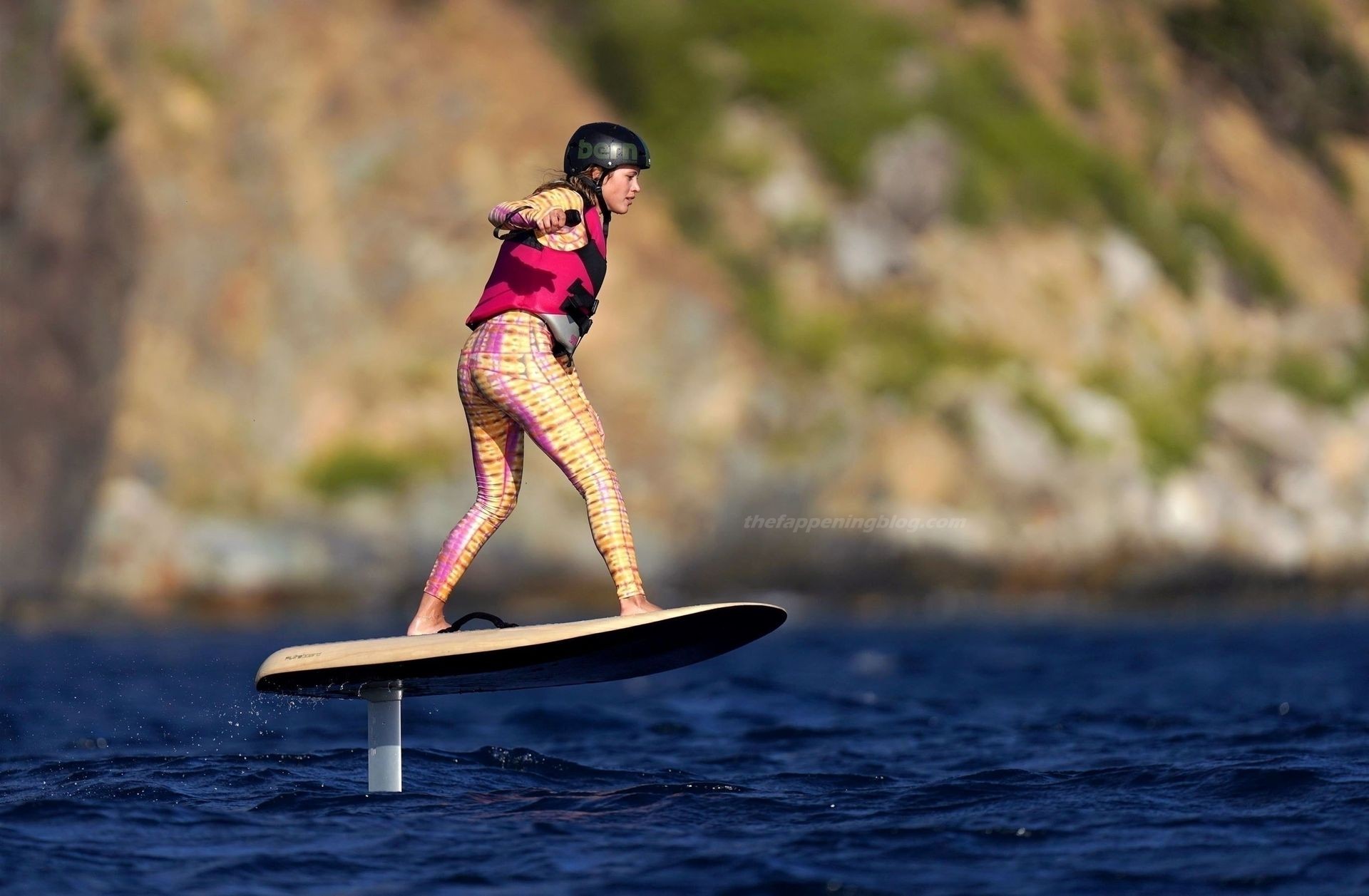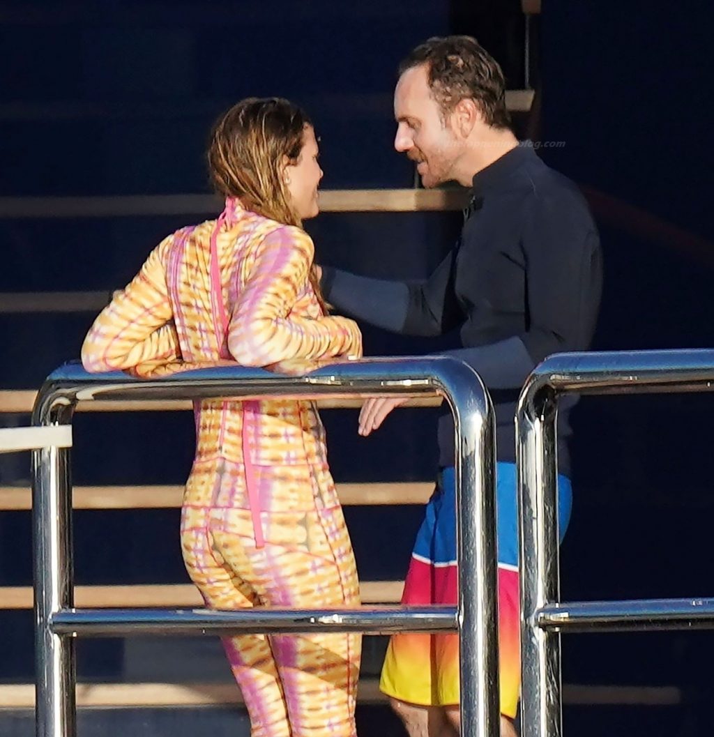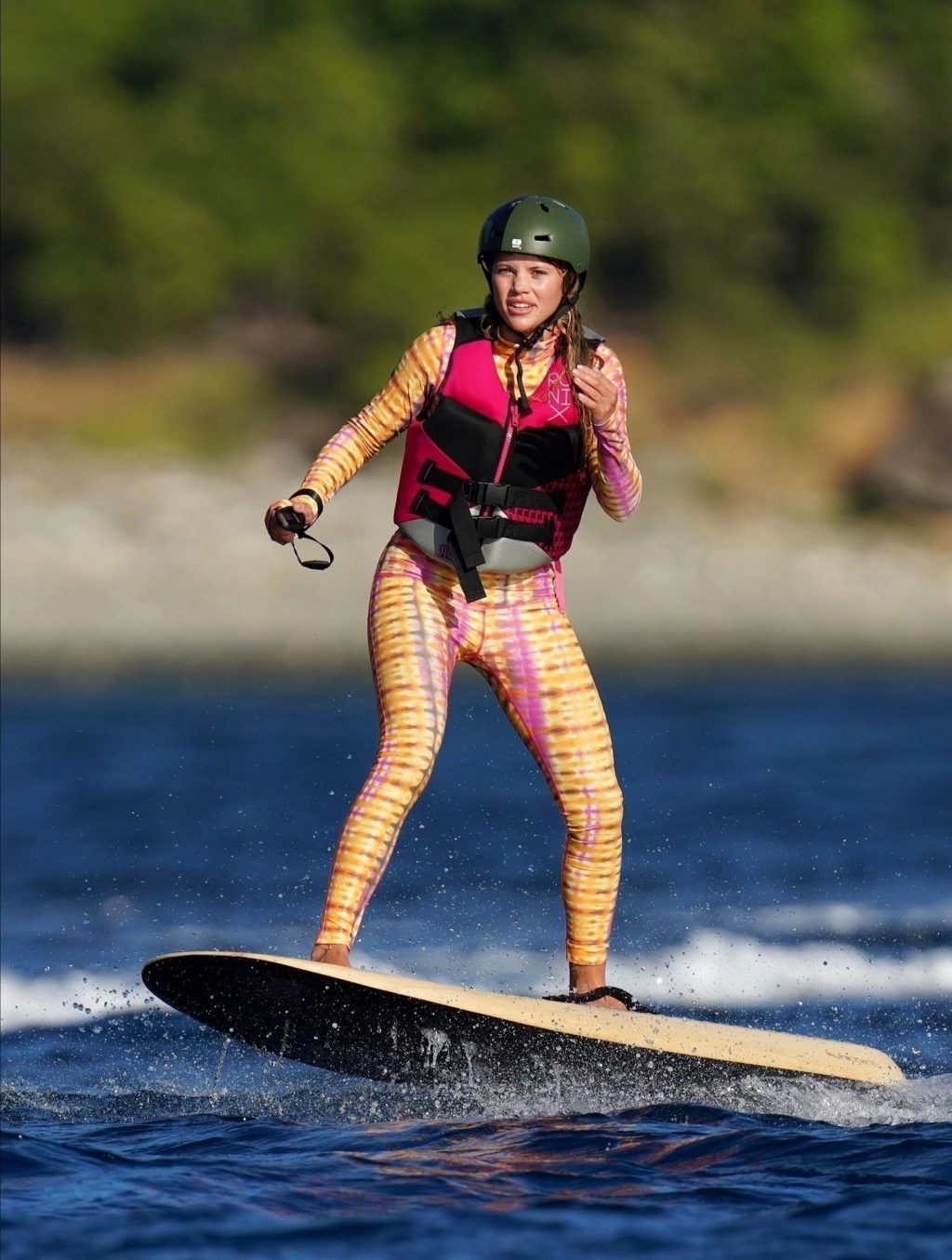 El legendario cantautor estadounidense de 71 años, Lionel, lucía impresionante mientras sonreía mostrando su bronceado físico bajo el intenso sol, mientras Sofia deslumbraba con un top de bikini blanco mientras se ponía su traje de neopreno.